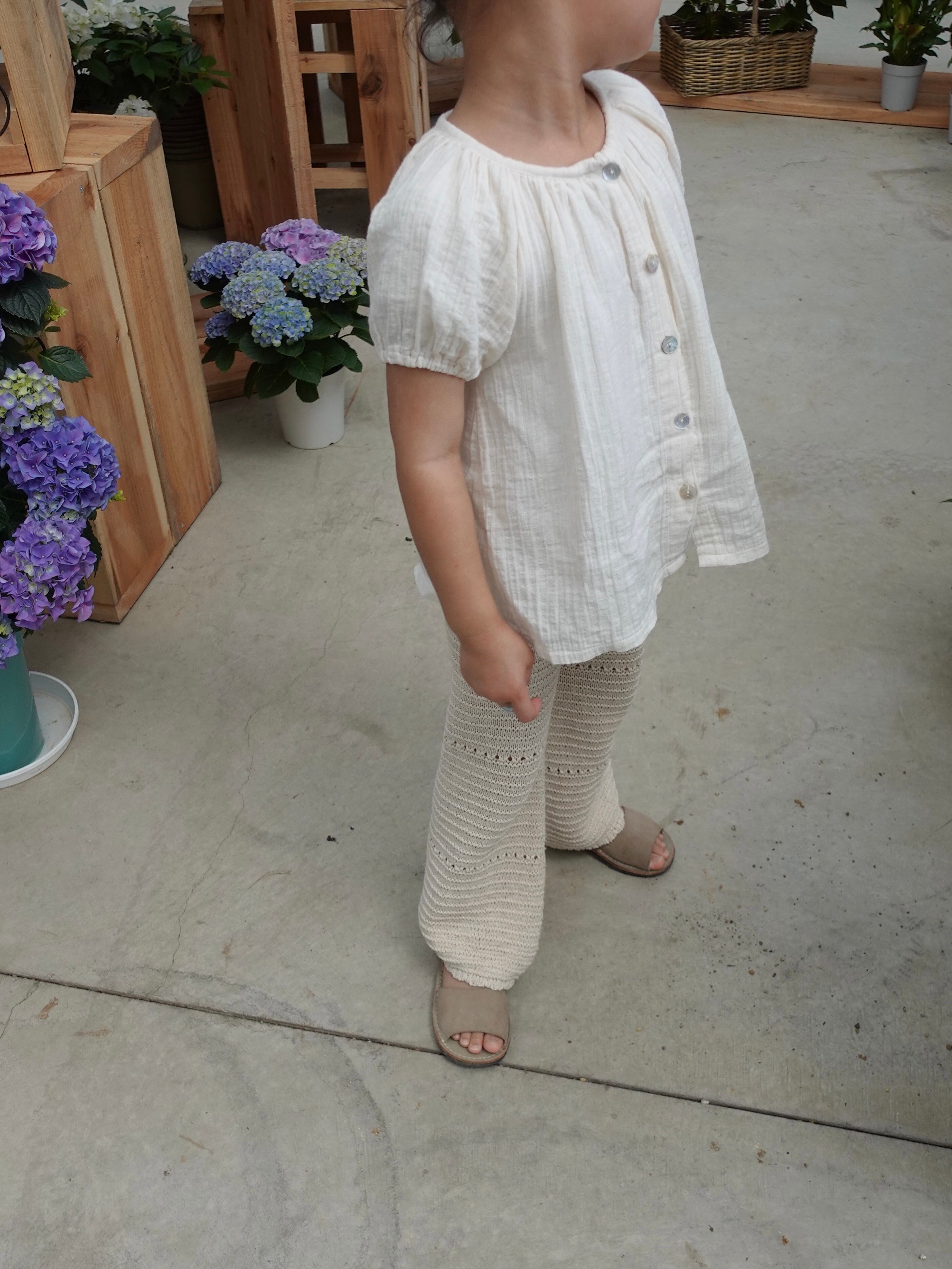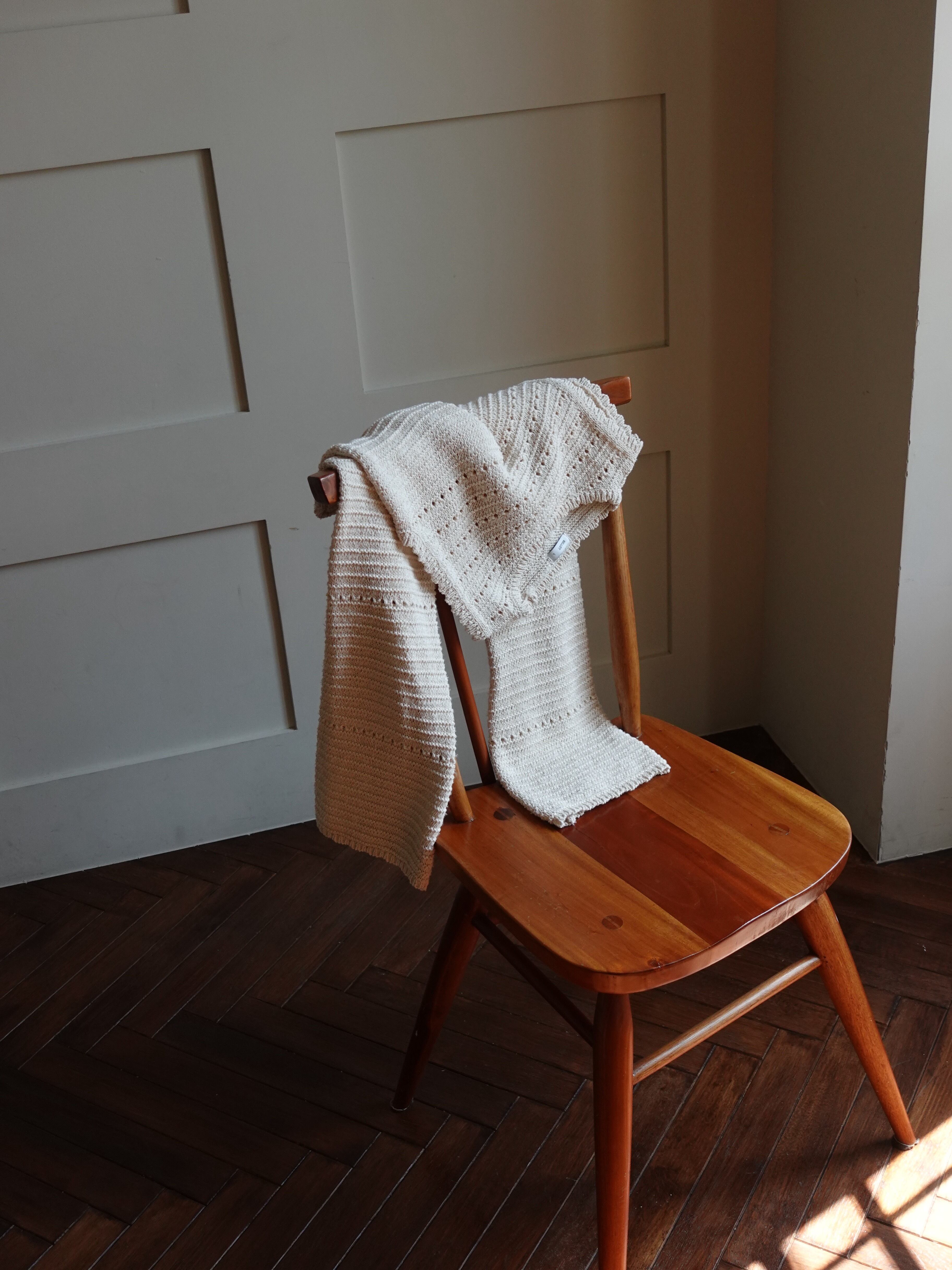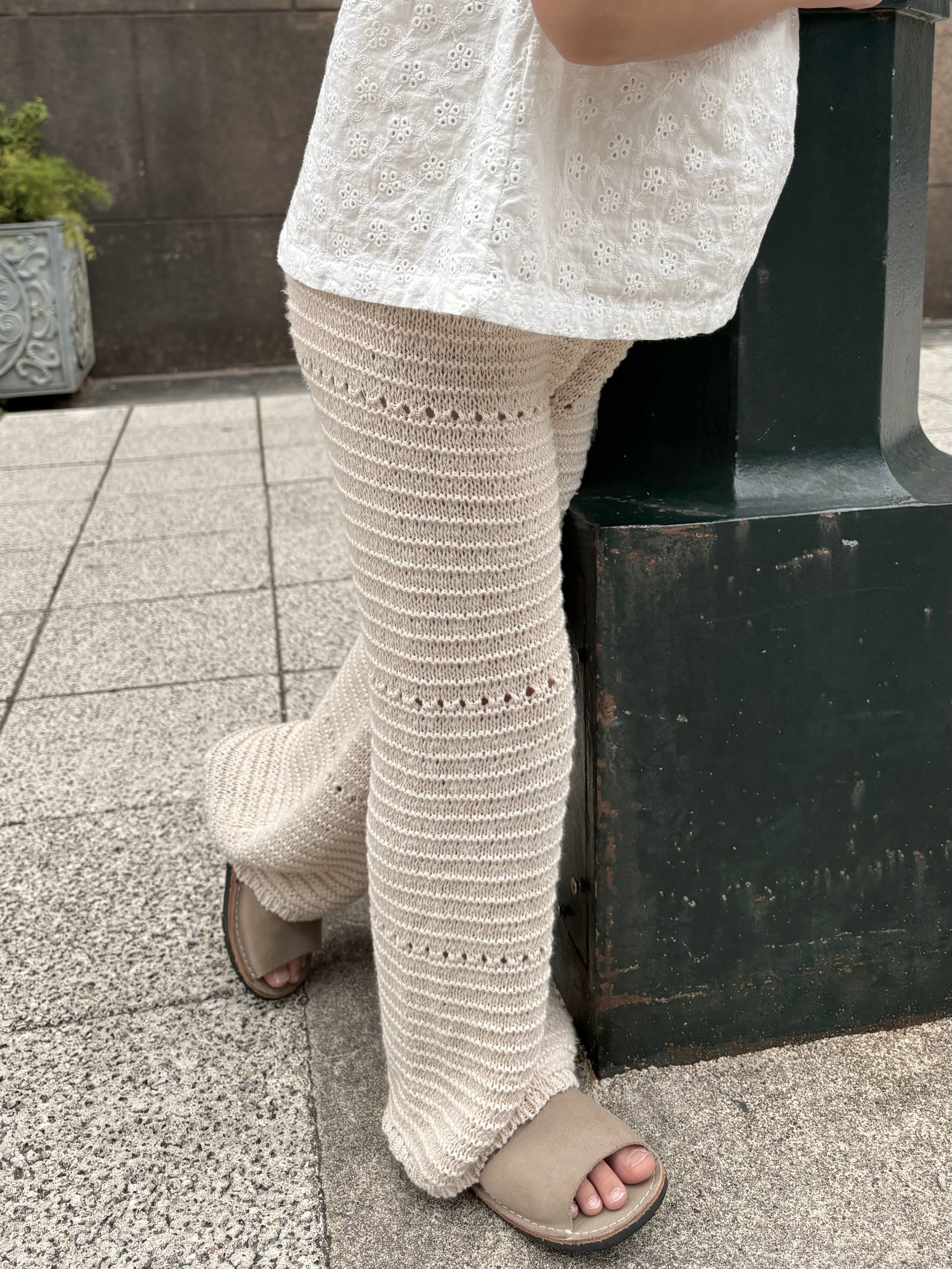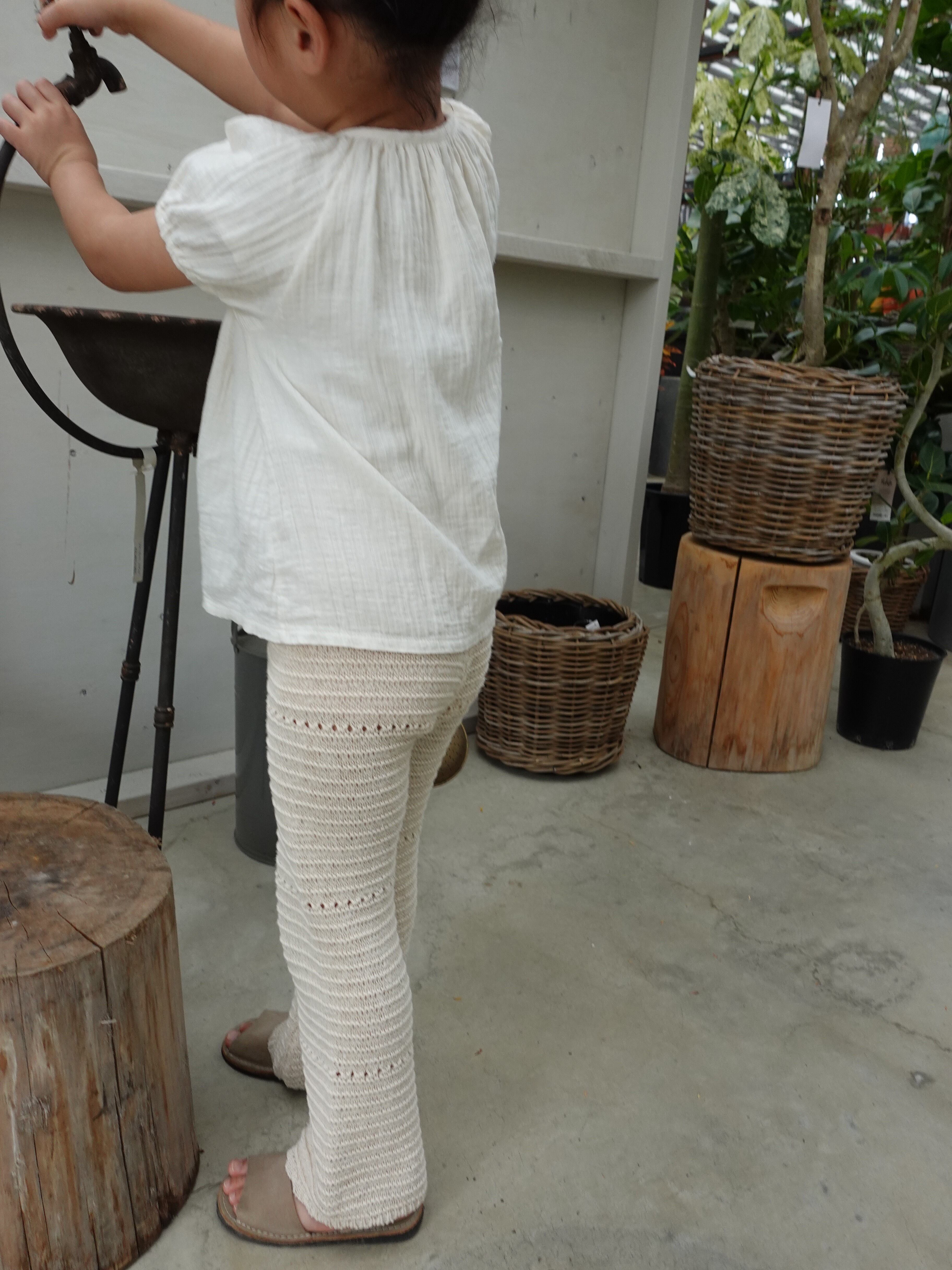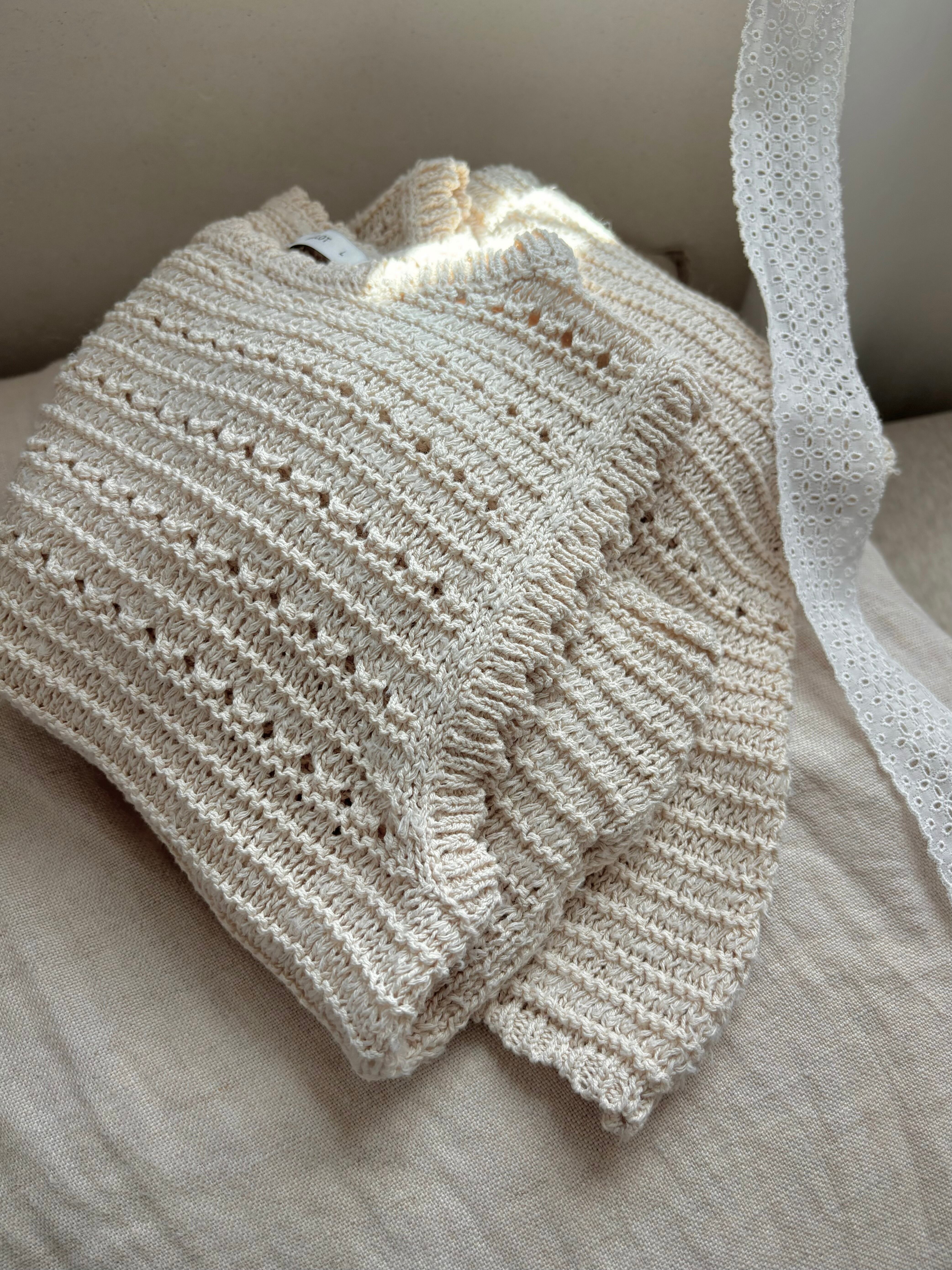 優しい生成りカラーとナチュラルな風合いが魅力的なクロシェ編みPT