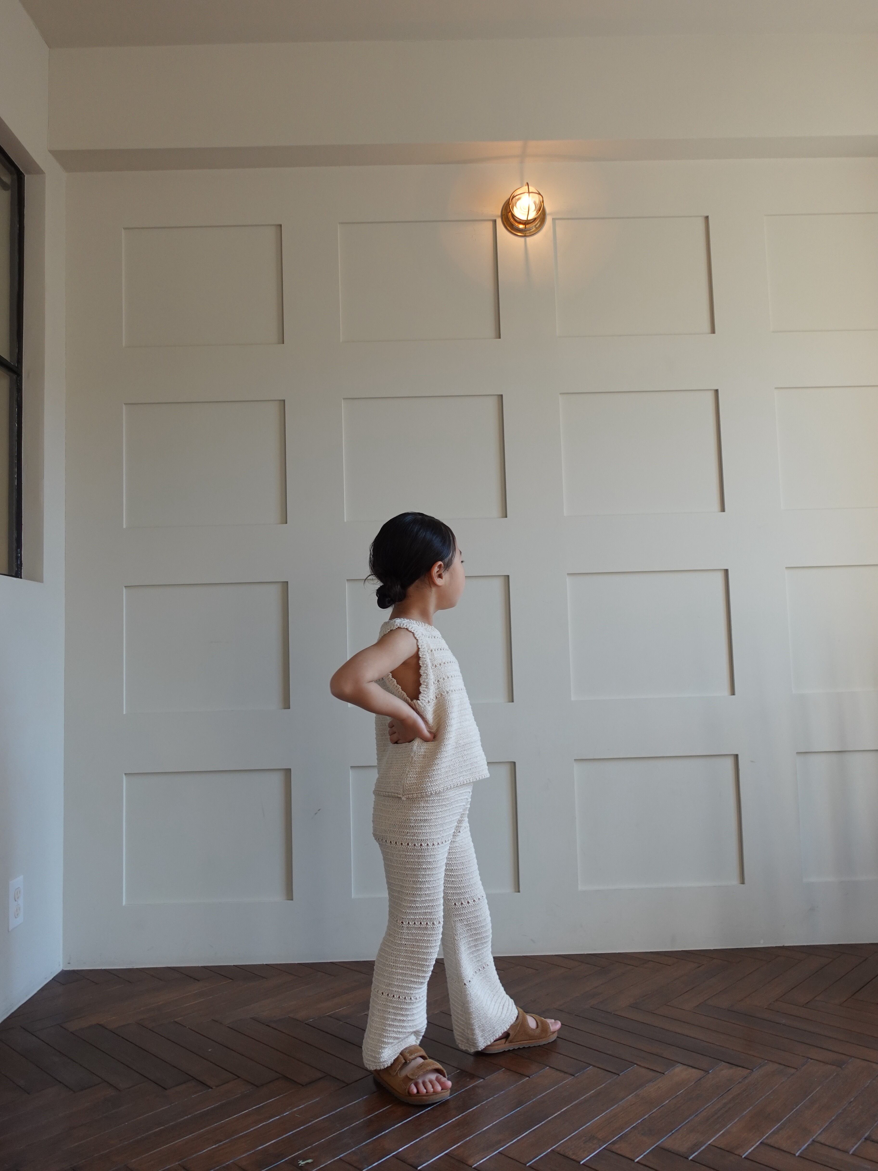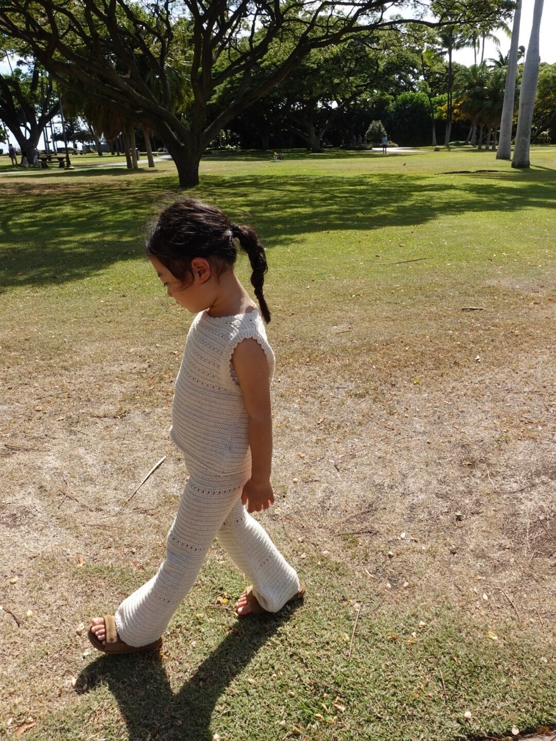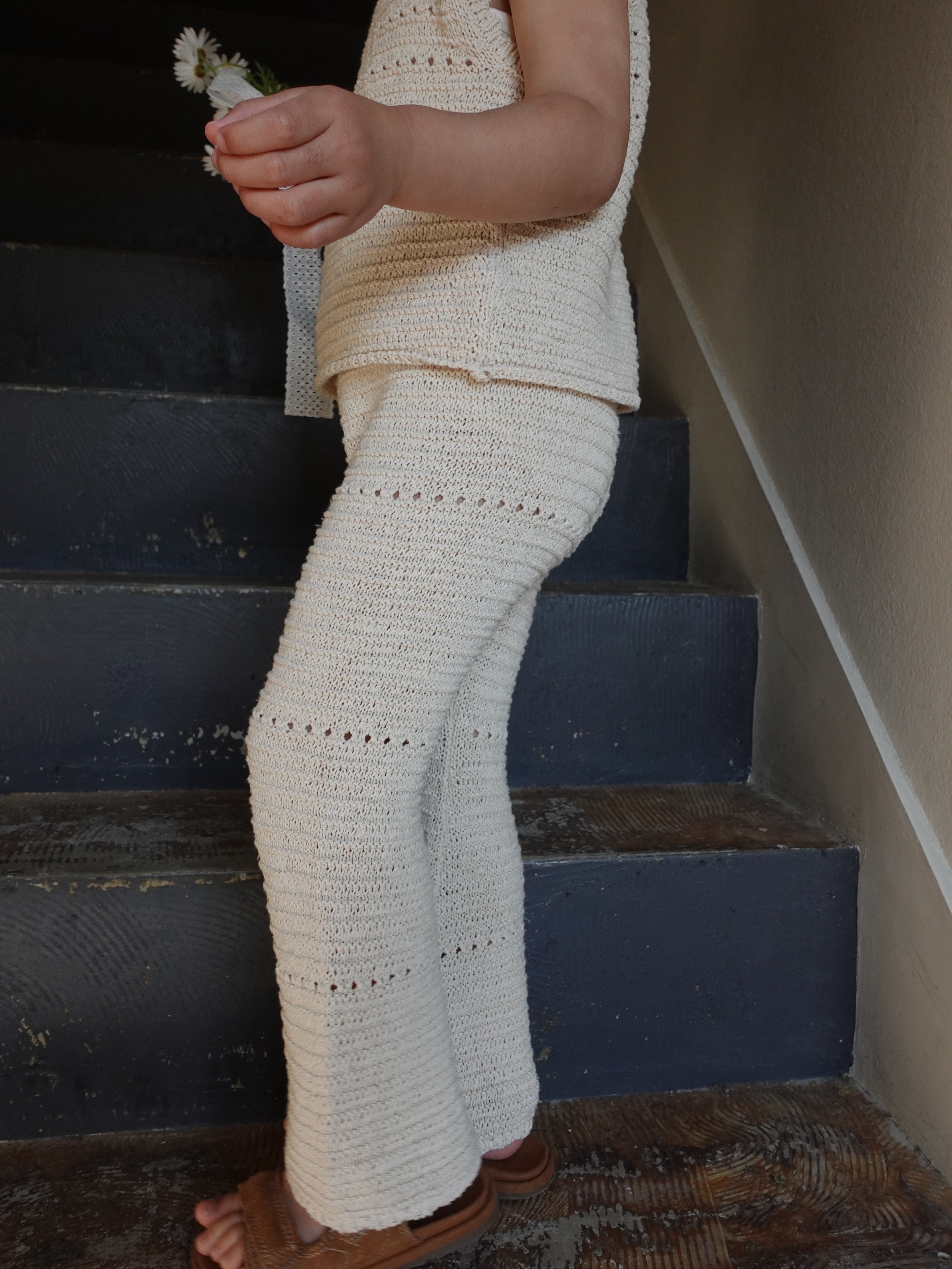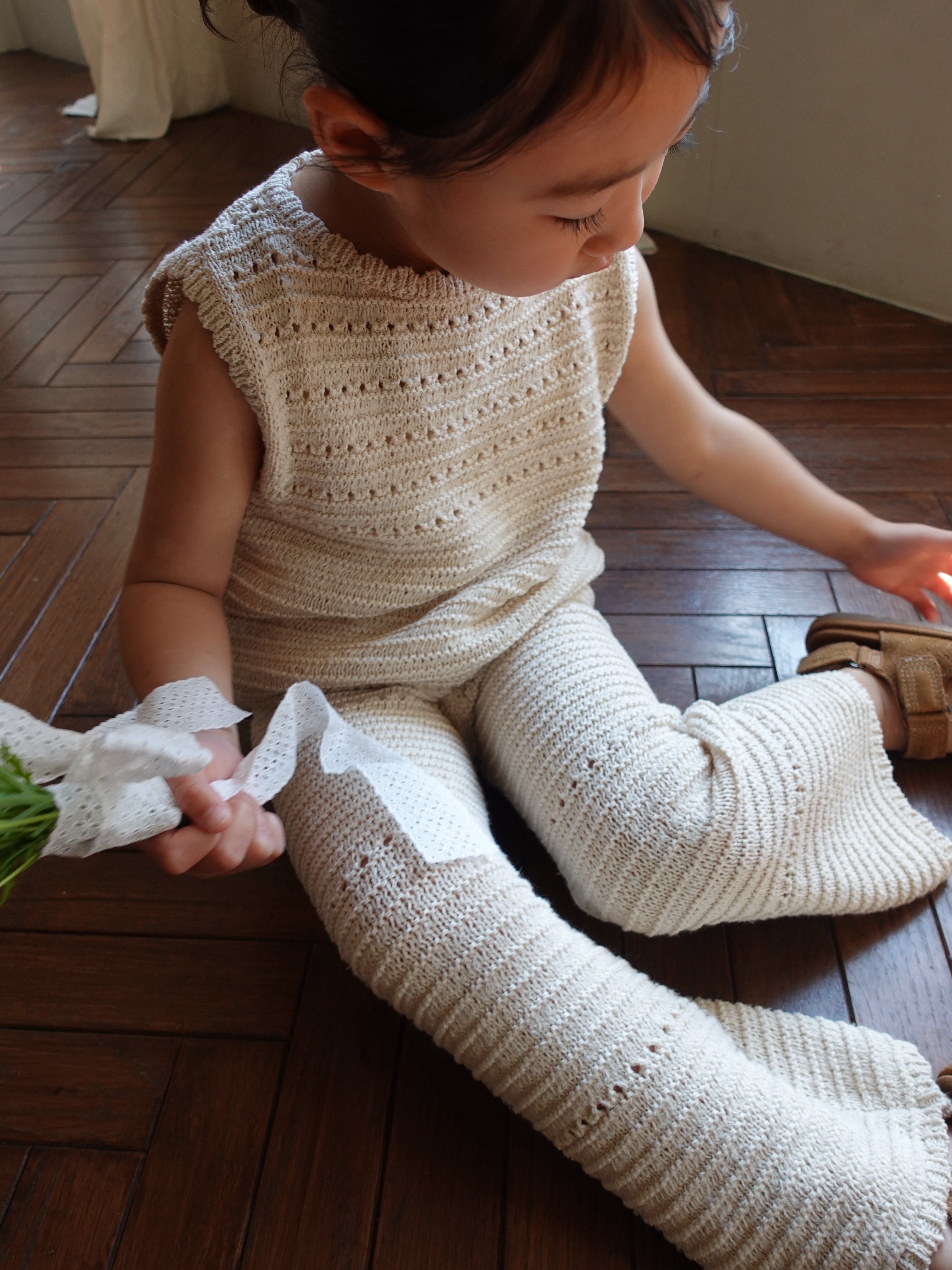 優しい生成りカラーとナチュラルな風合いが魅力的なクロシェ編みPT