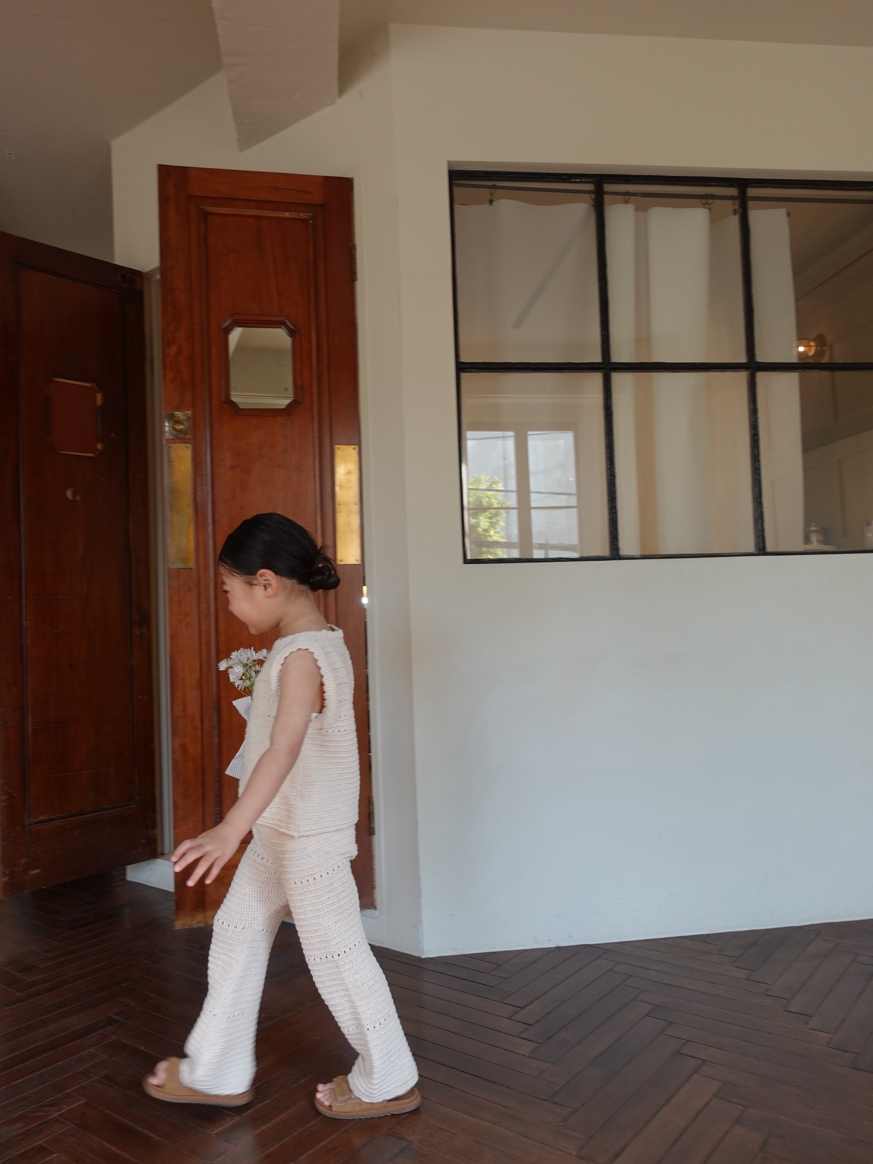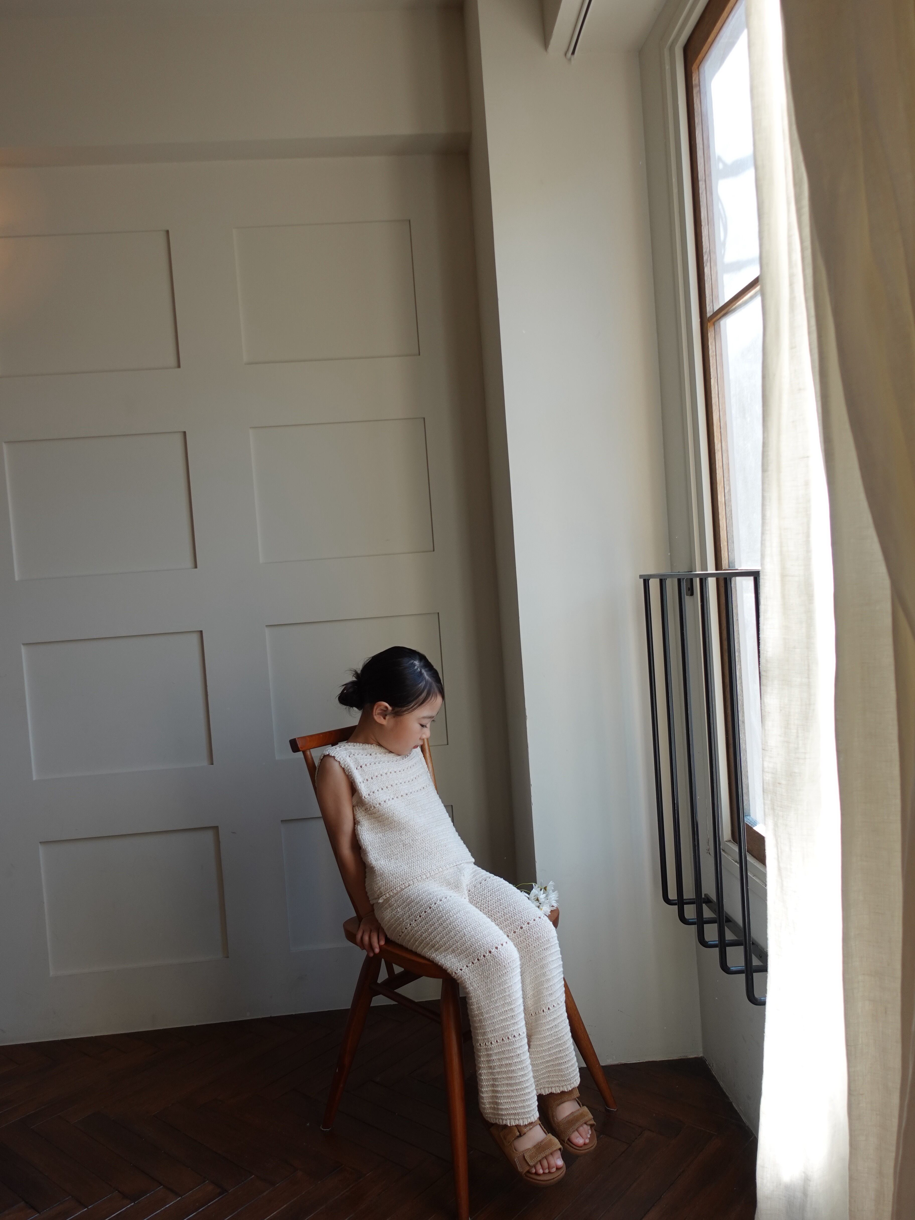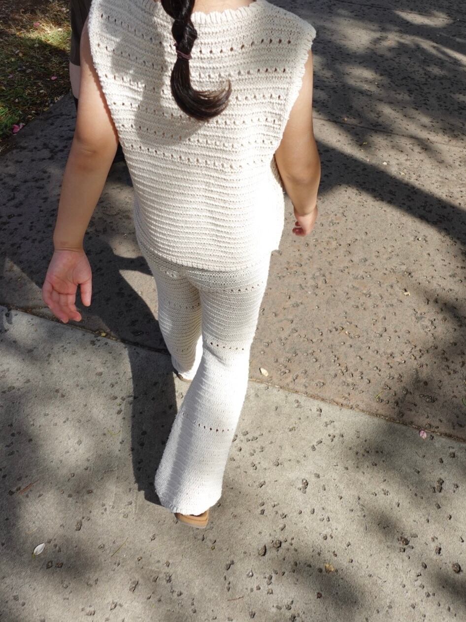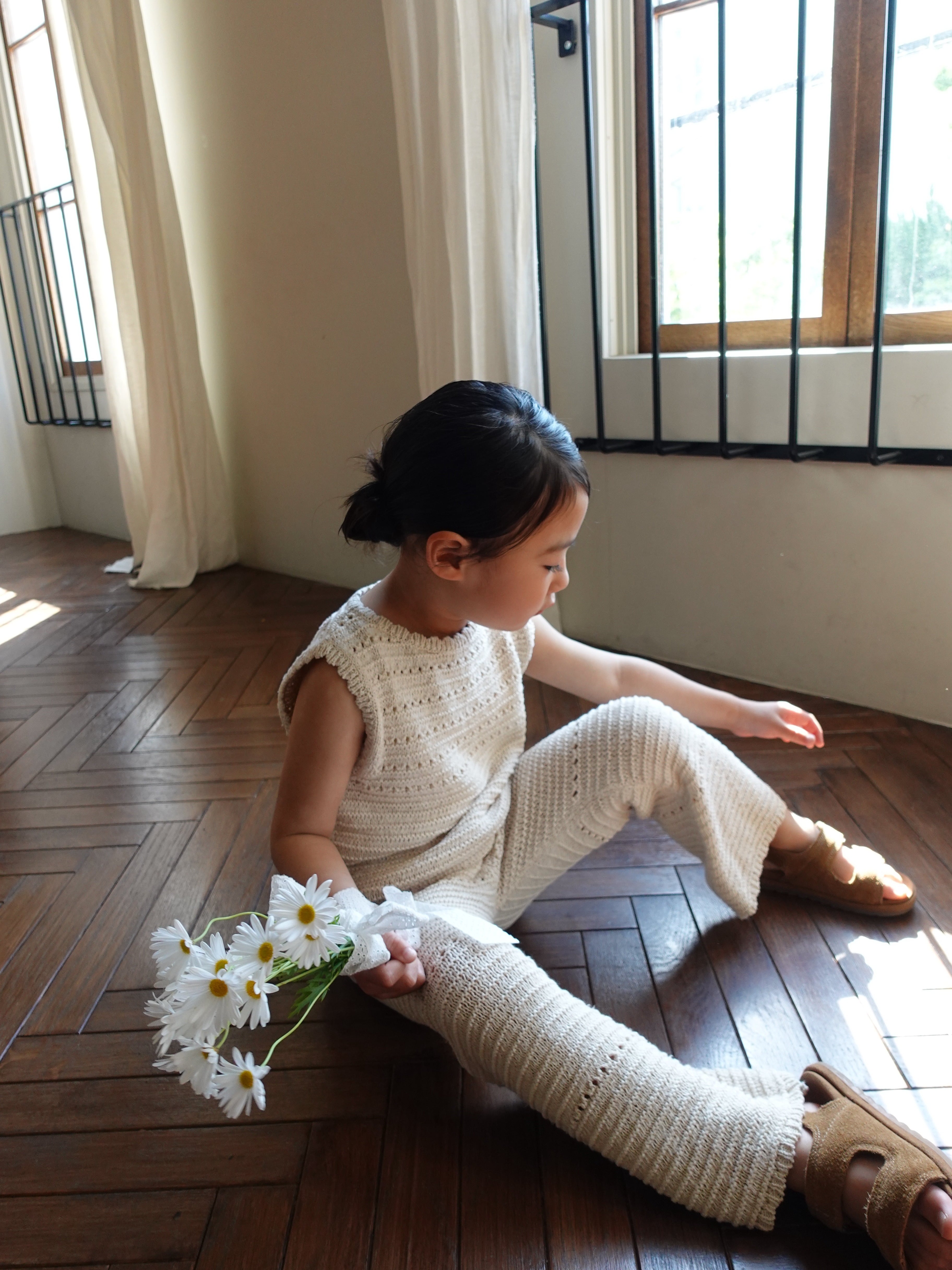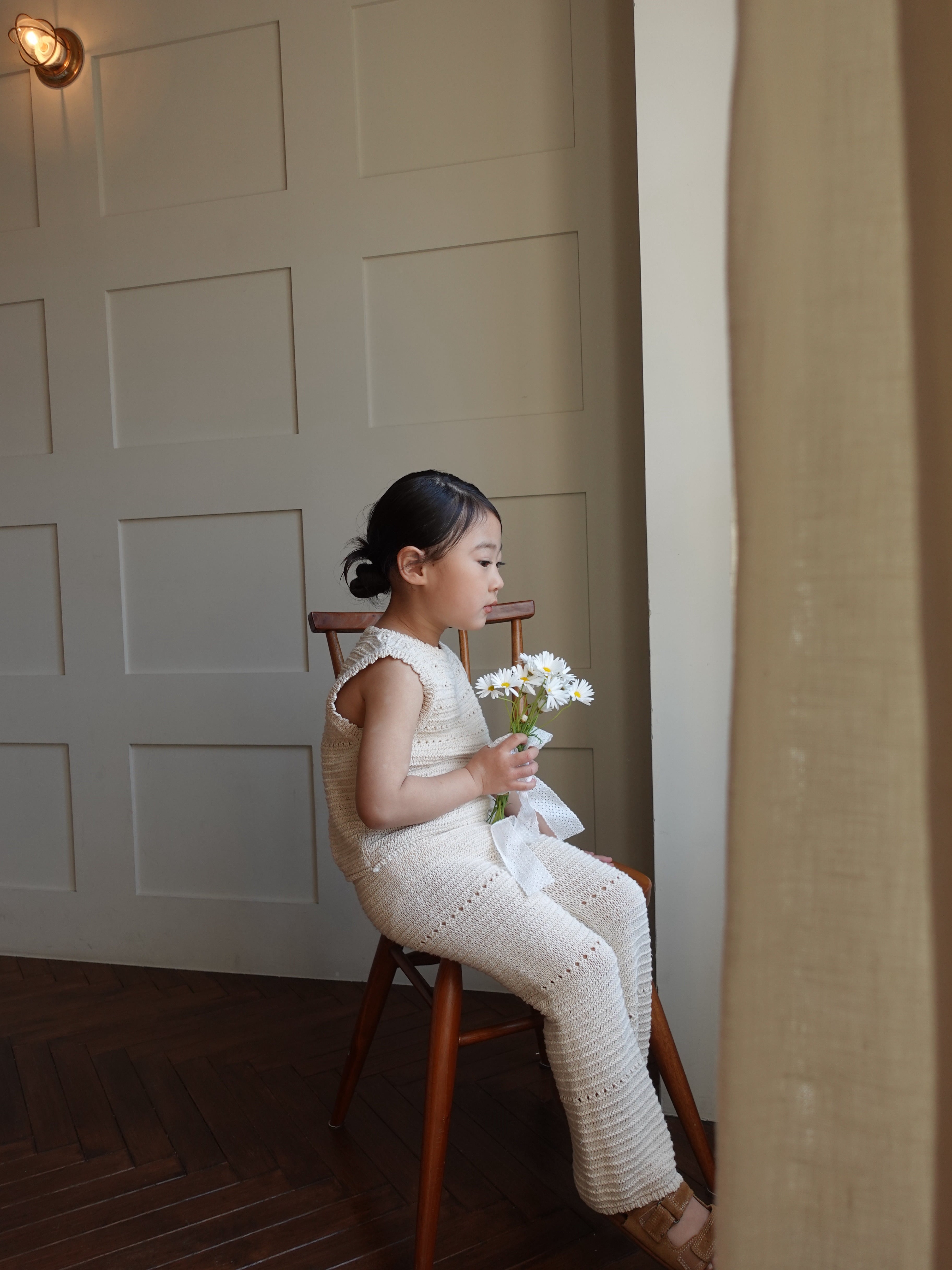 優しい生成りカラーとナチュラルな風合いが魅力的なクロシェ編みPT
