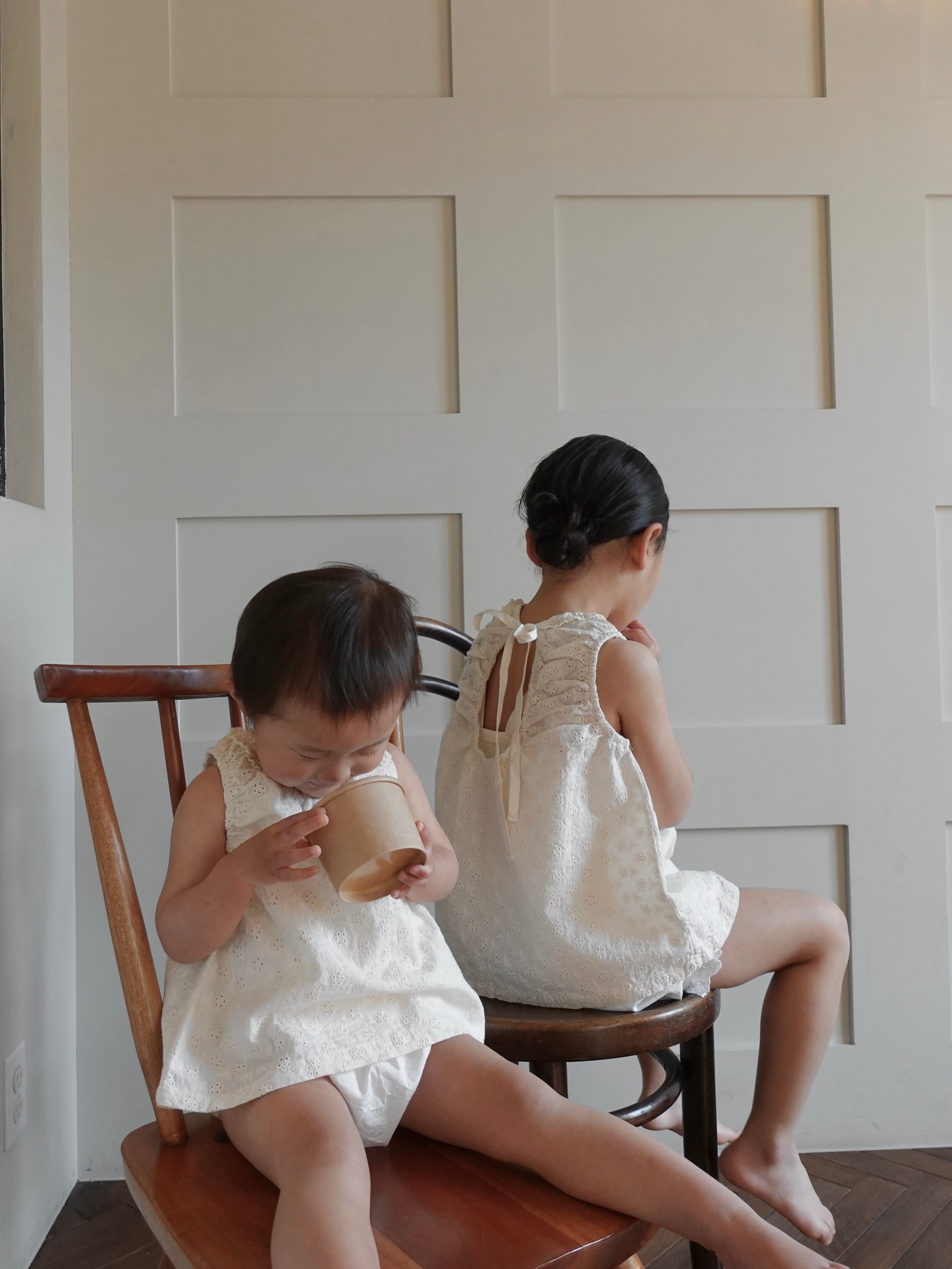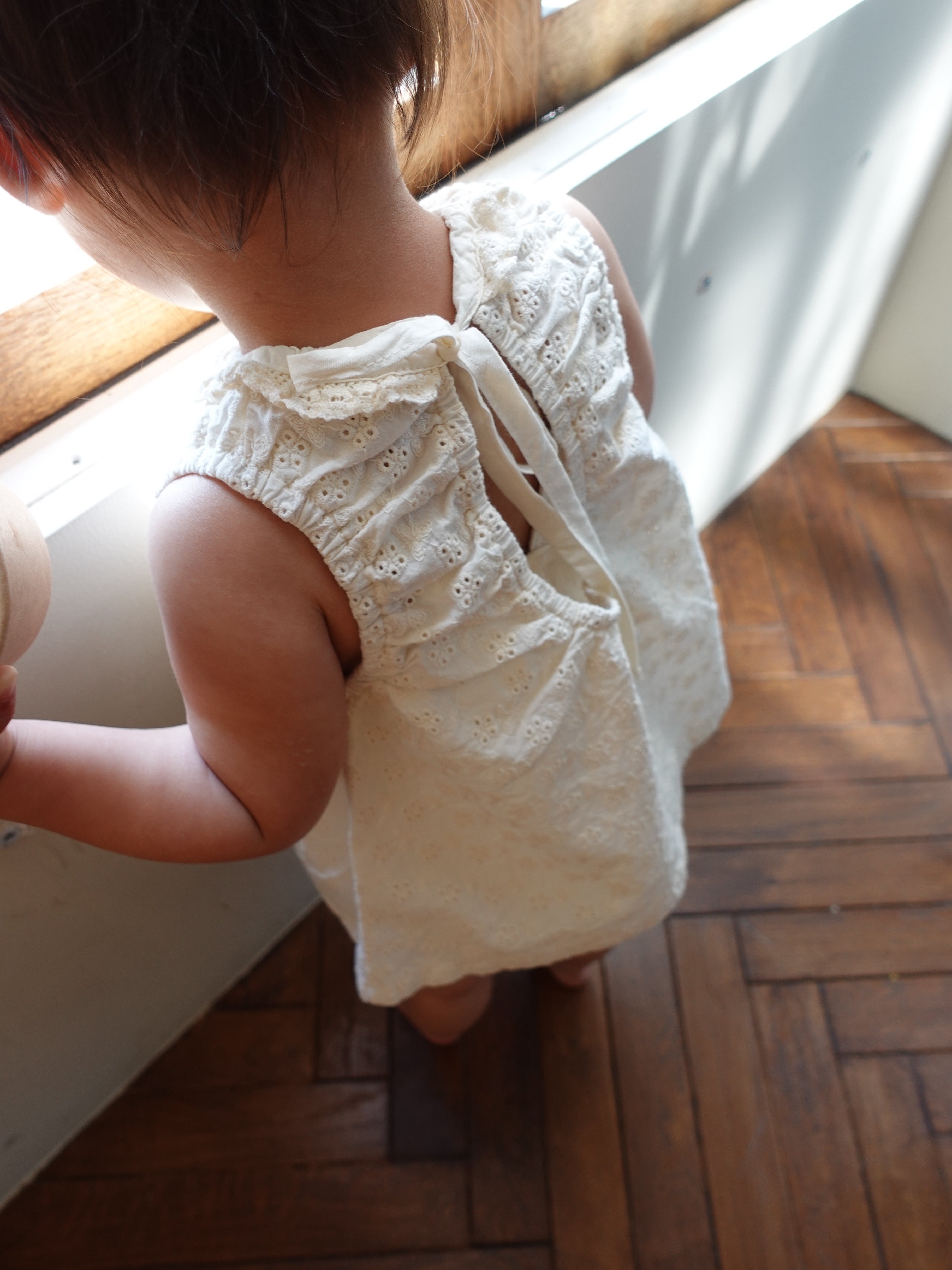 首元で結ぶリボンが、後ろ姿まで抜かりなく可愛く仕上げてくれます。