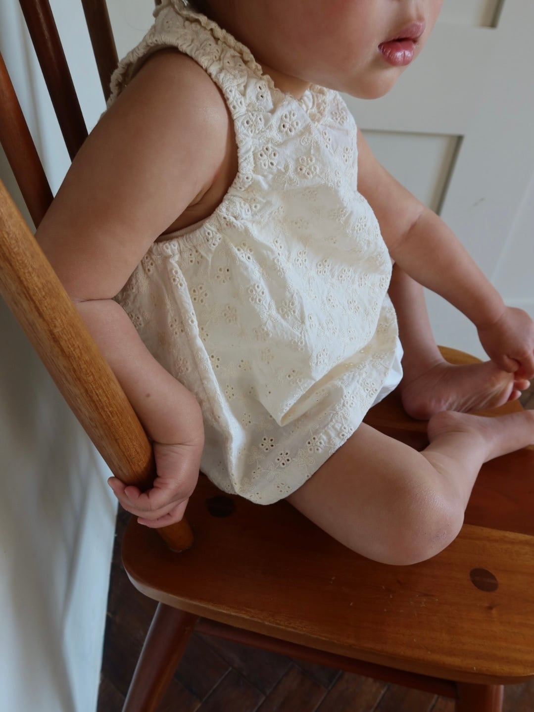 上品なコットンレースに、繊細なフリルディテールをあしらった愛らしいブラウス。
