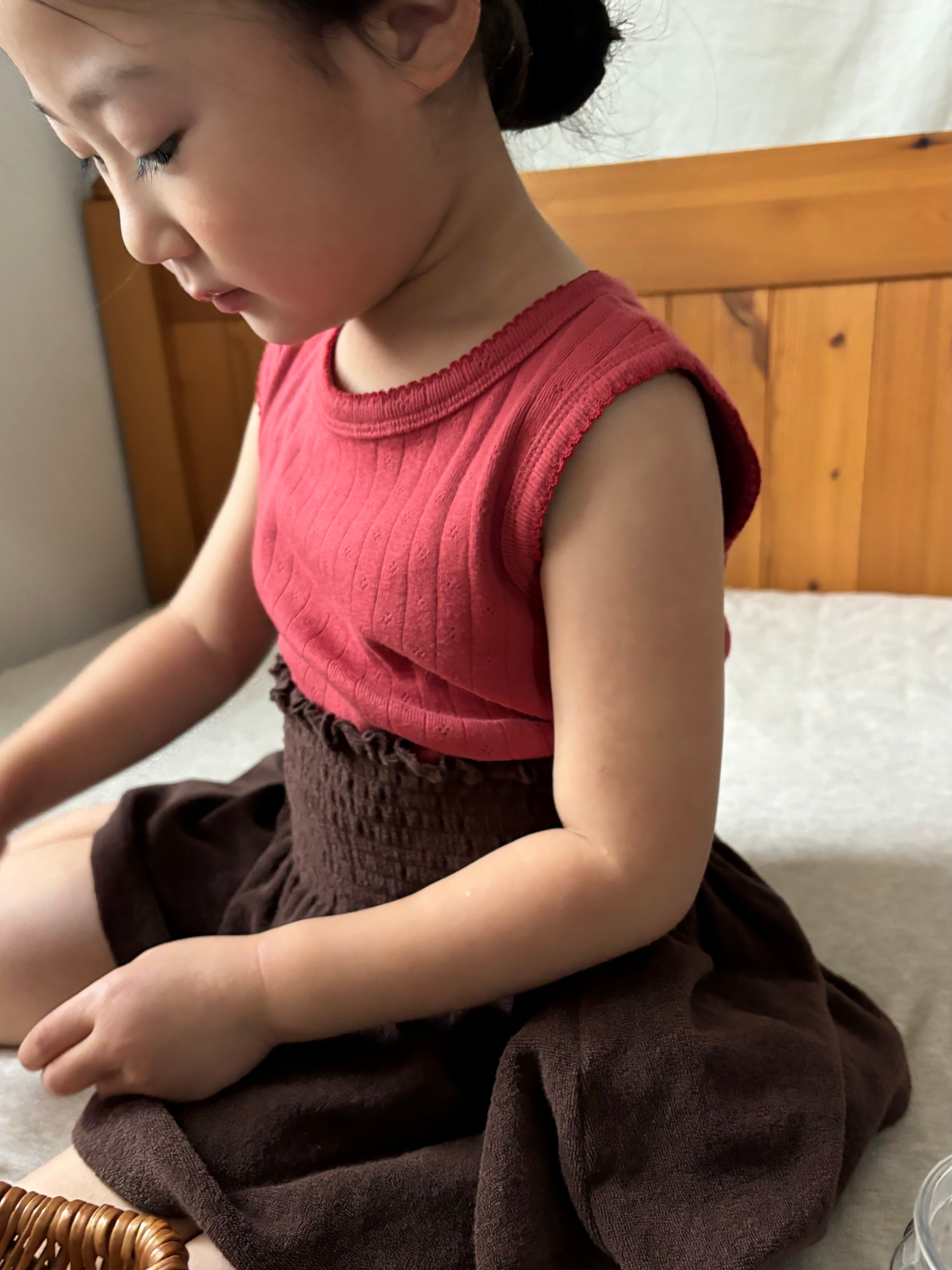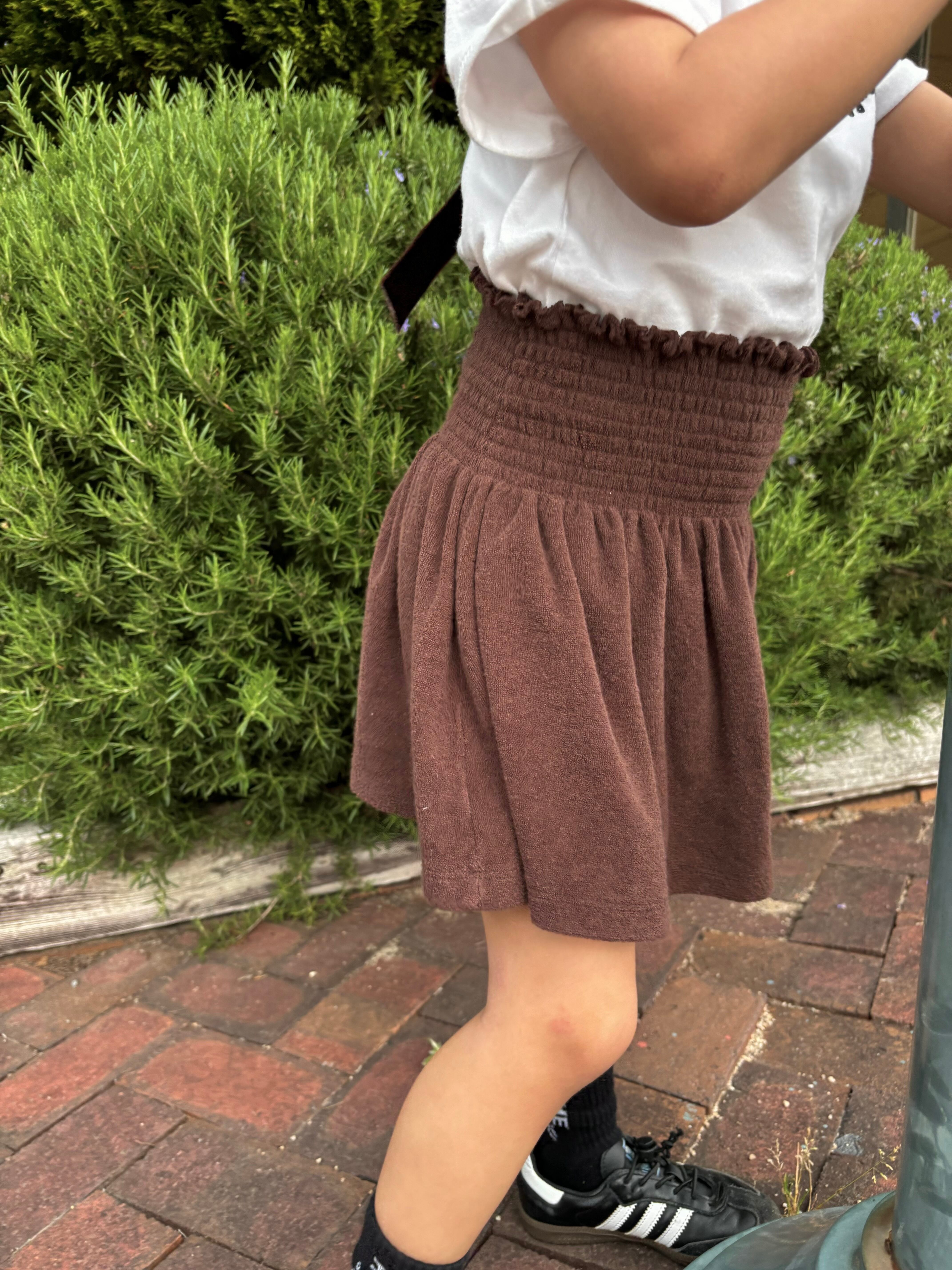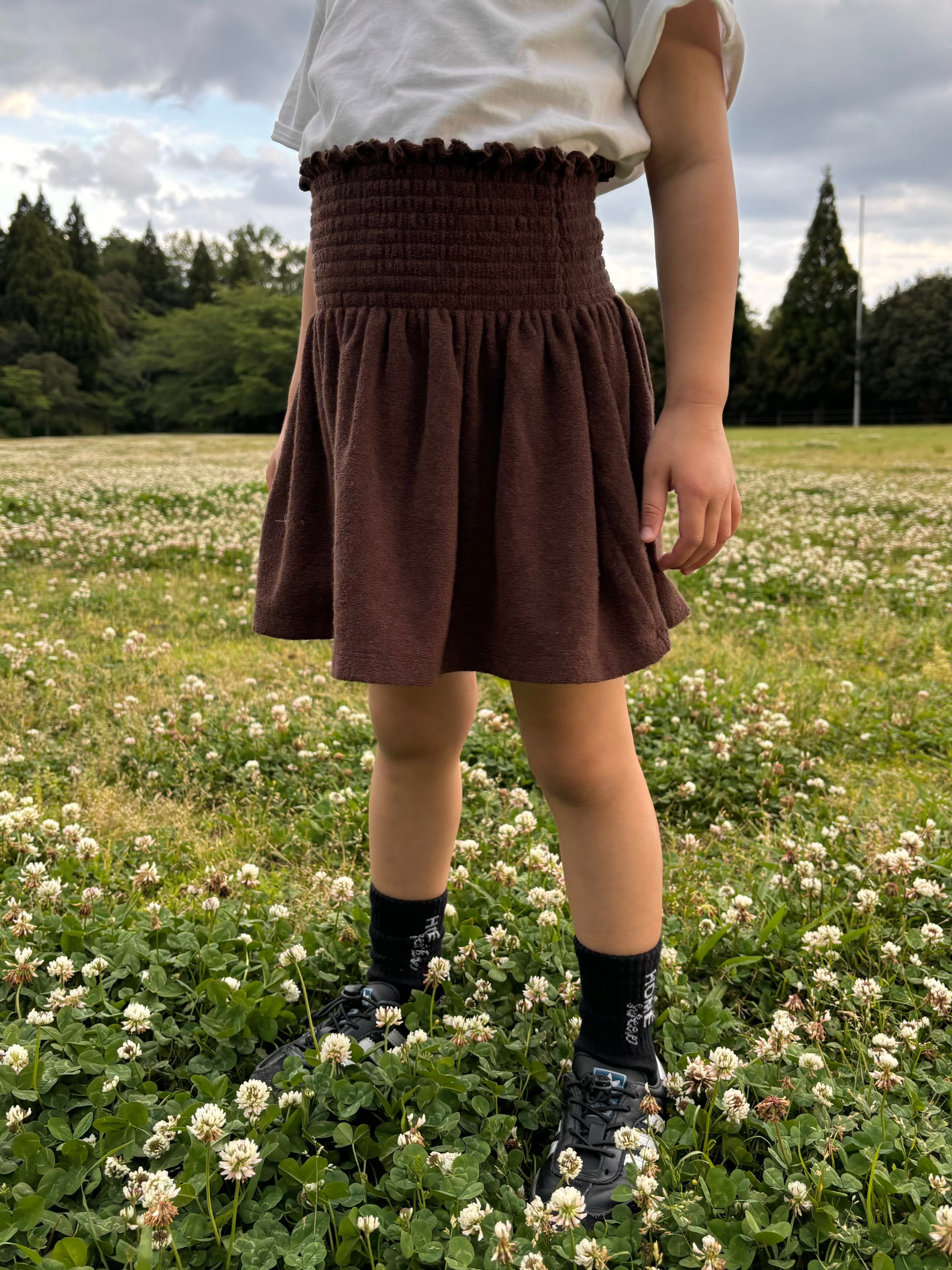 ウエストはスモッキング仕様でしっかりフィットしつつ、締めつけ感のないやさしい着心地に。