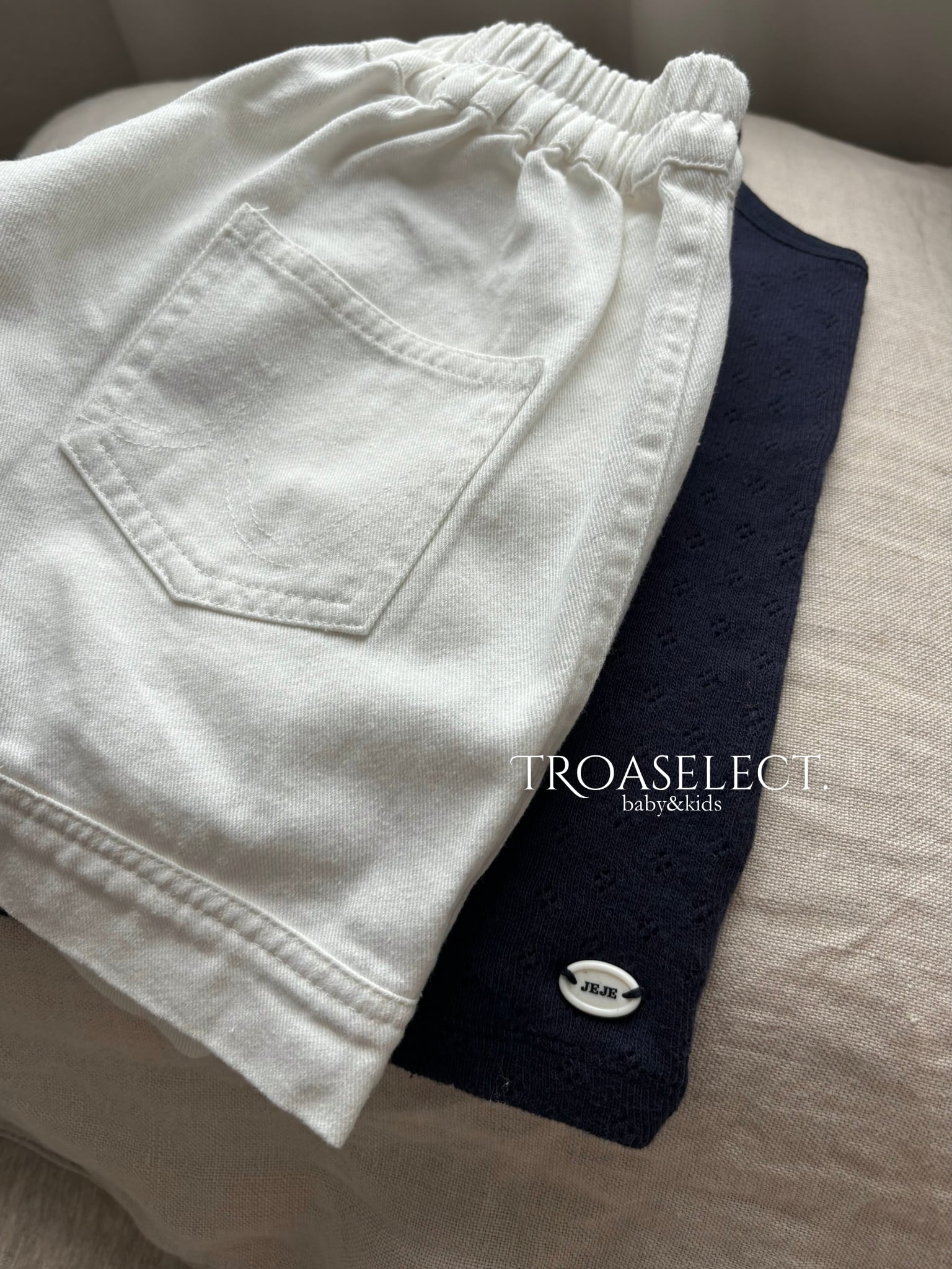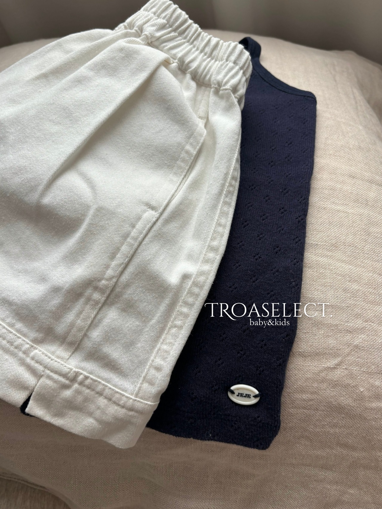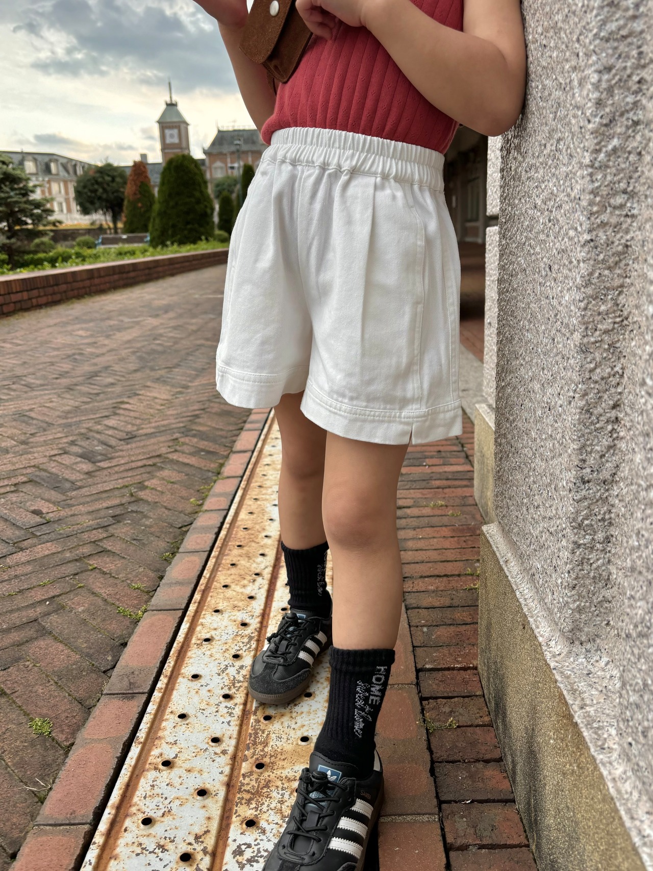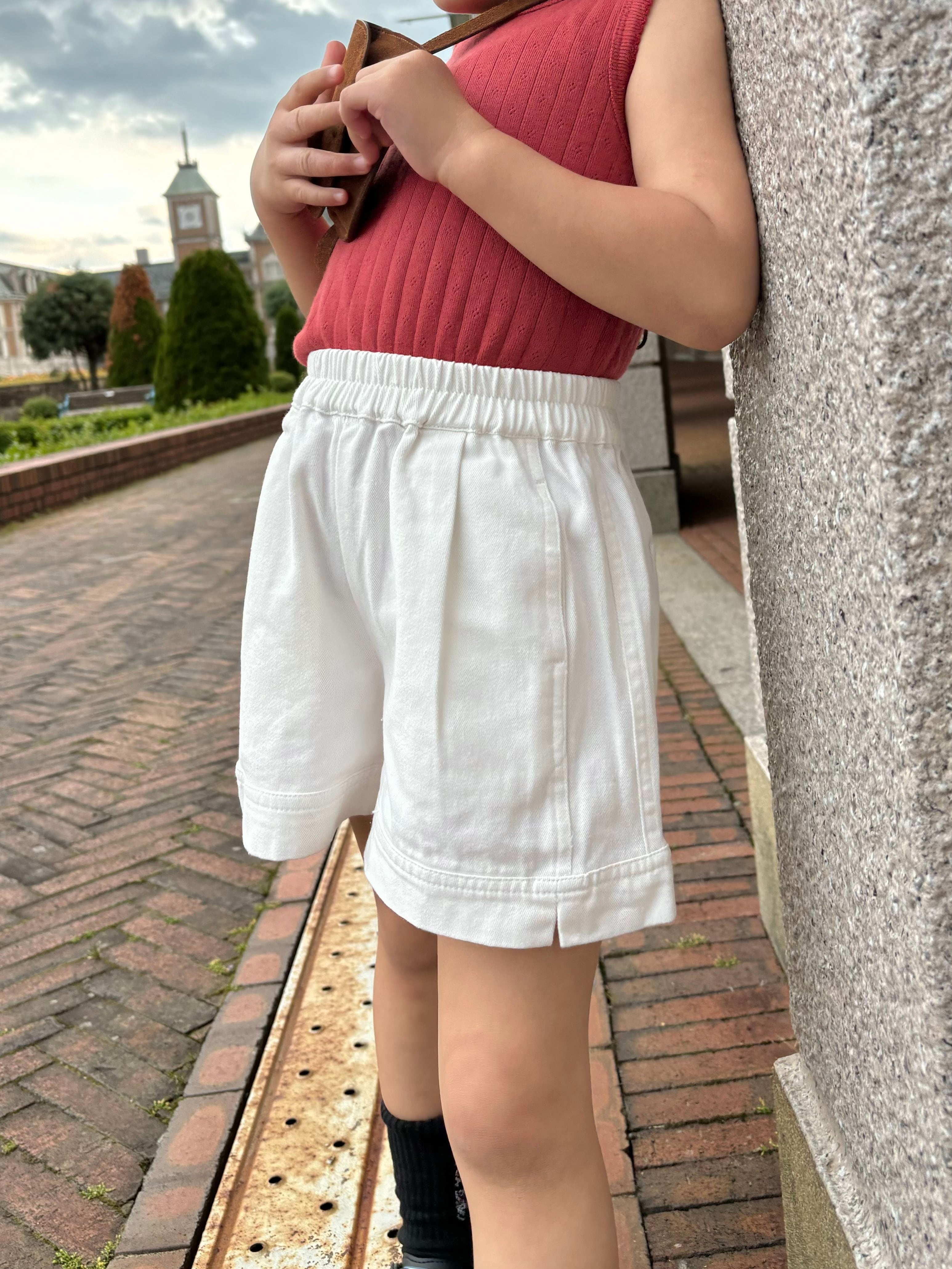 夏にぴったりな爽やかな印象のホワイトショートパンツ。ウエストはゴム仕様で、着脱もラクラク。フロントに施されたタックが立体感を演出し、ふんわりとしたシルエットで動きやすさも抜群です。