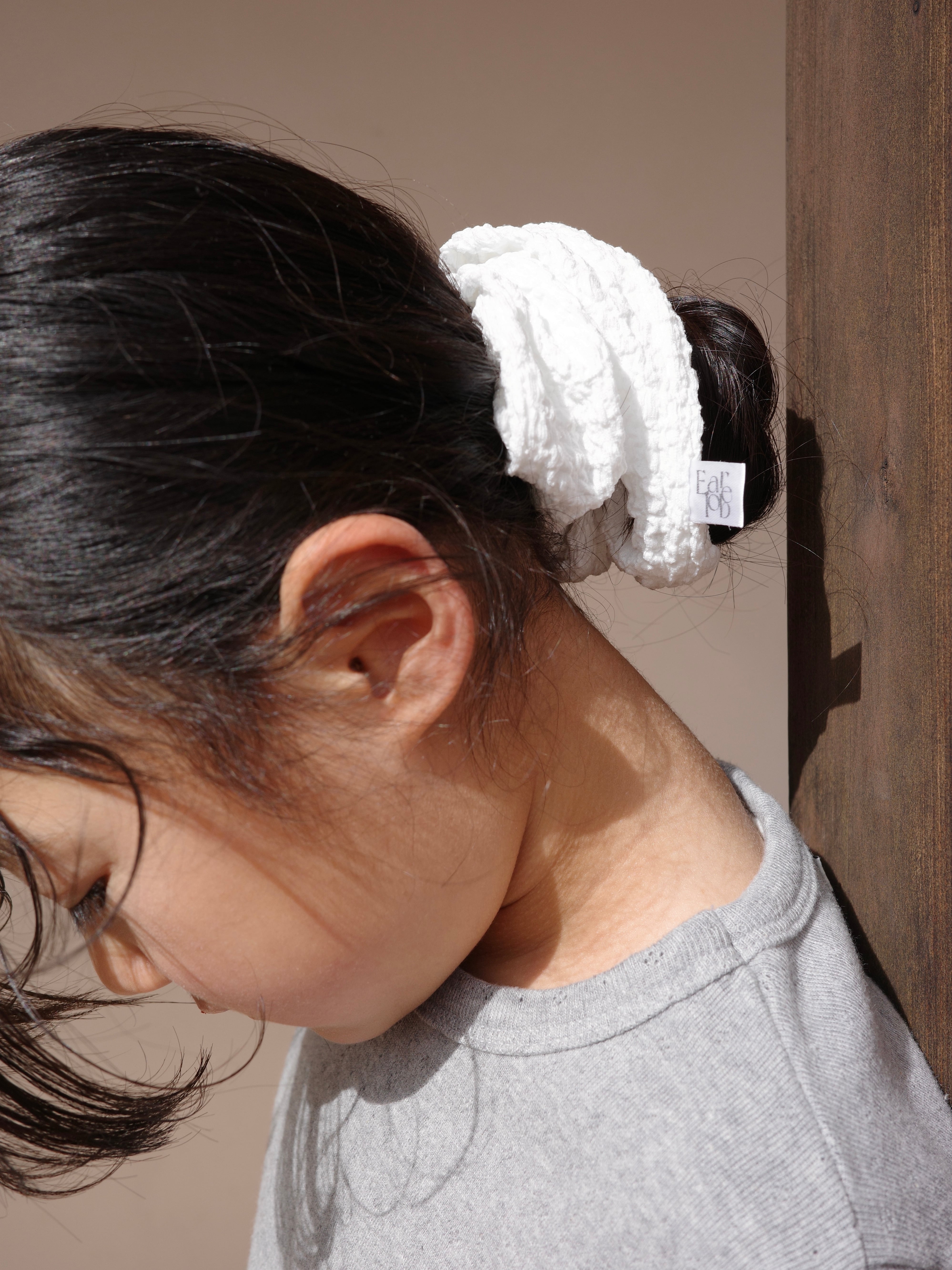 ぽこぽことした表情豊かなクリンクル生地が魅力のシュシュ。