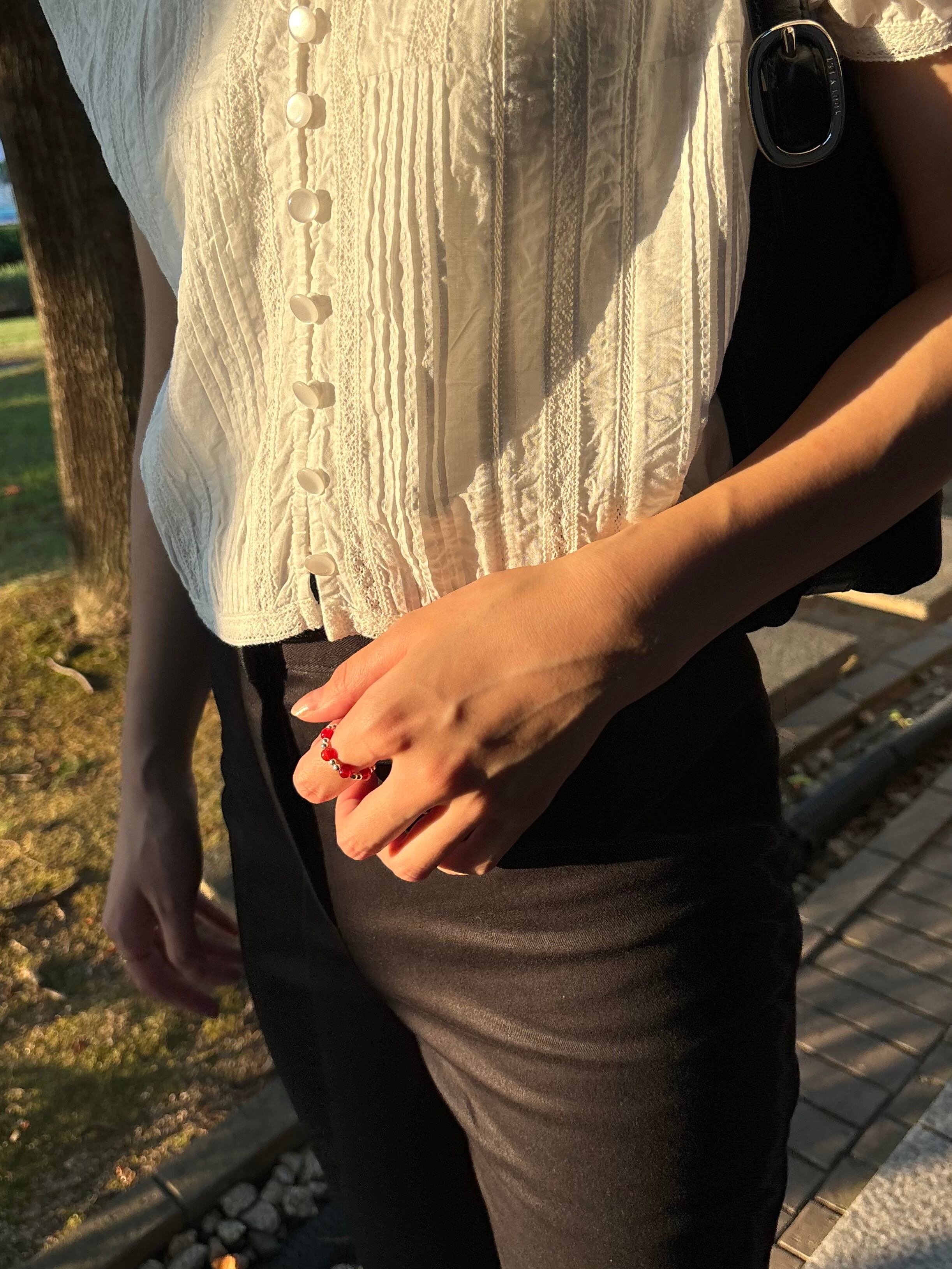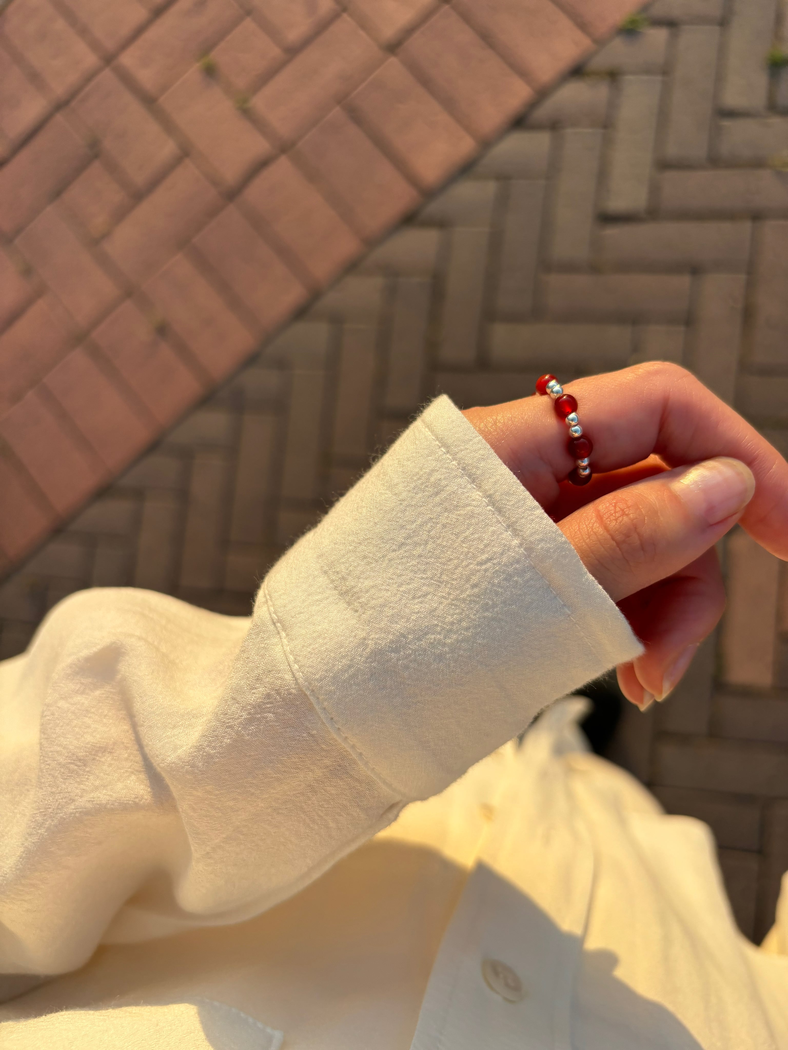 深みのある赤いストーンと、シルバー925ビーズを組み合わせた上品なファッションリング。