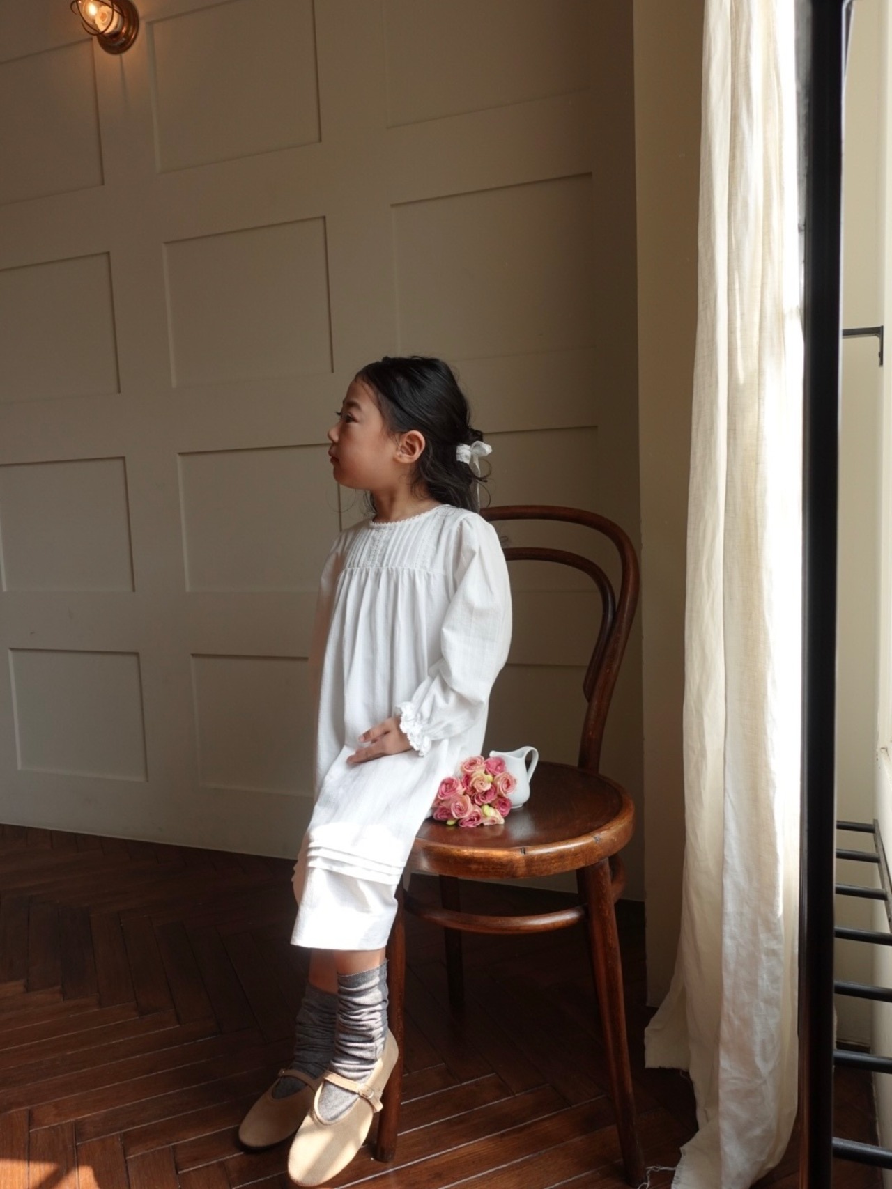 柔らかなコットン素材で仕立てられ、肌触りも心地よく、ナチュラルな風合いが魅力です。