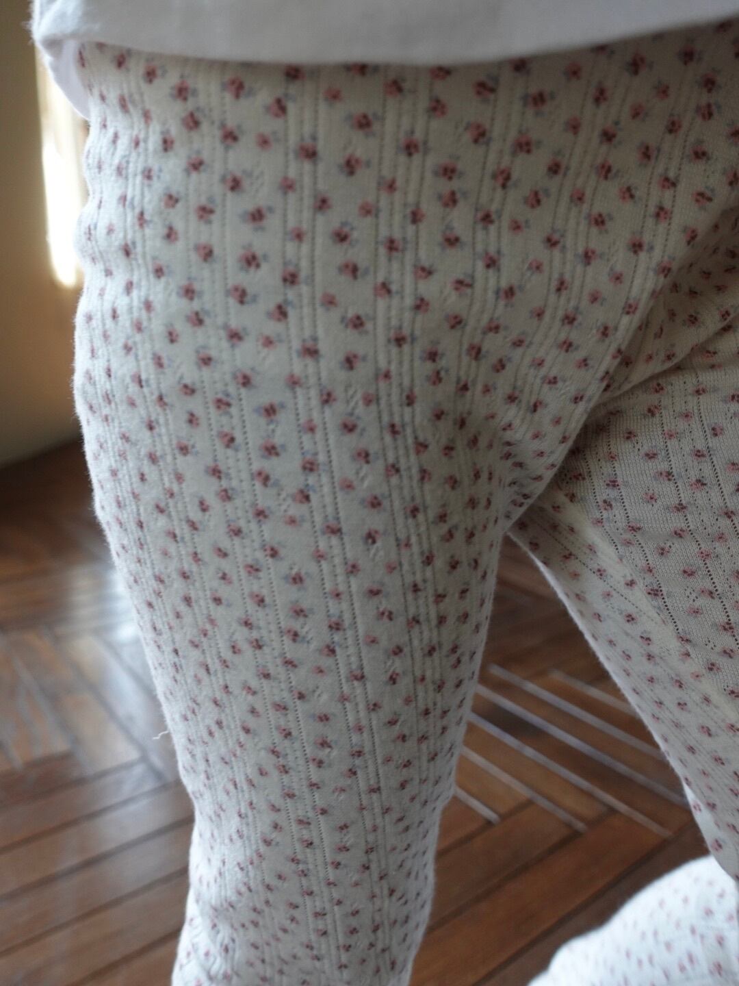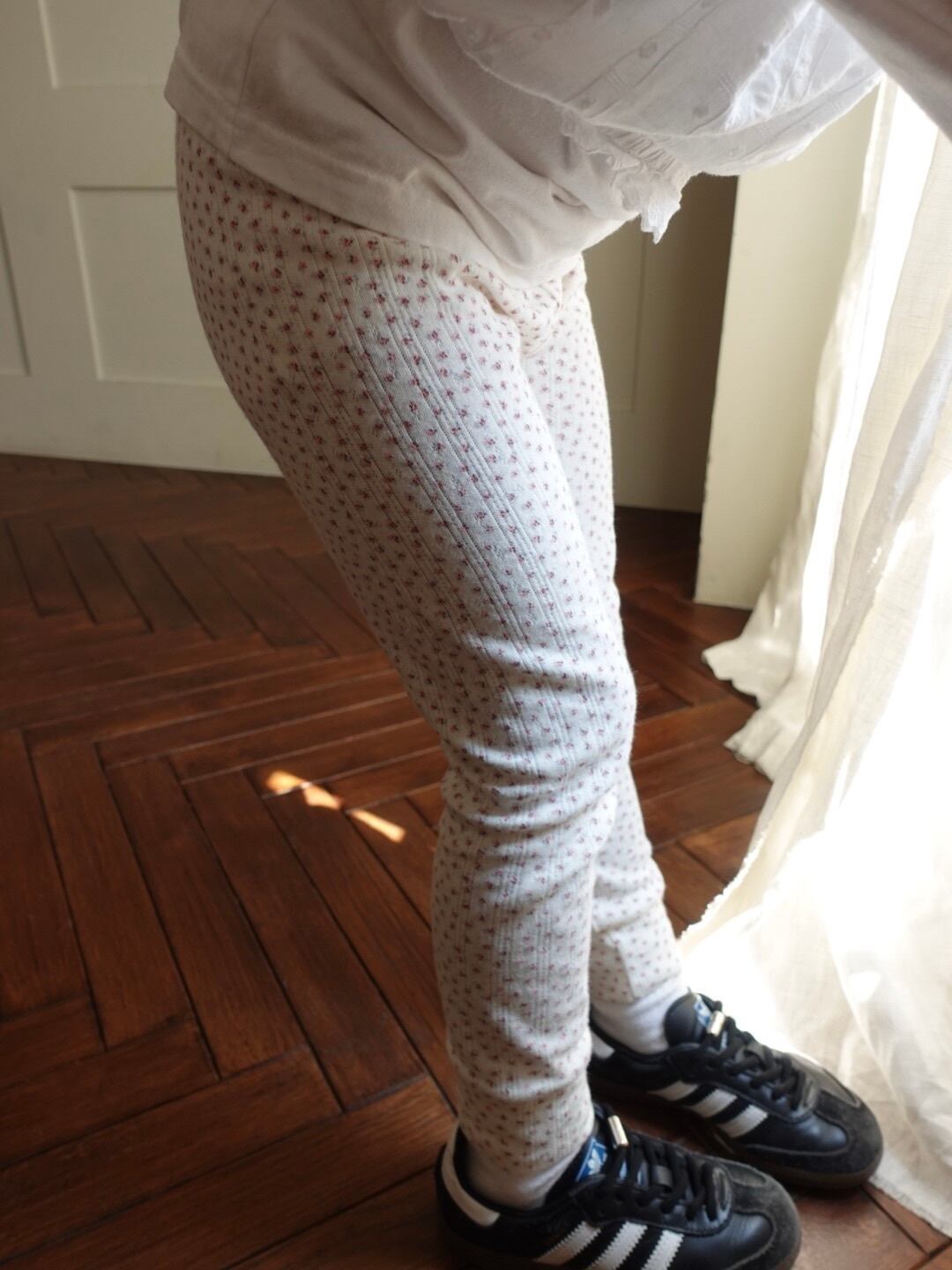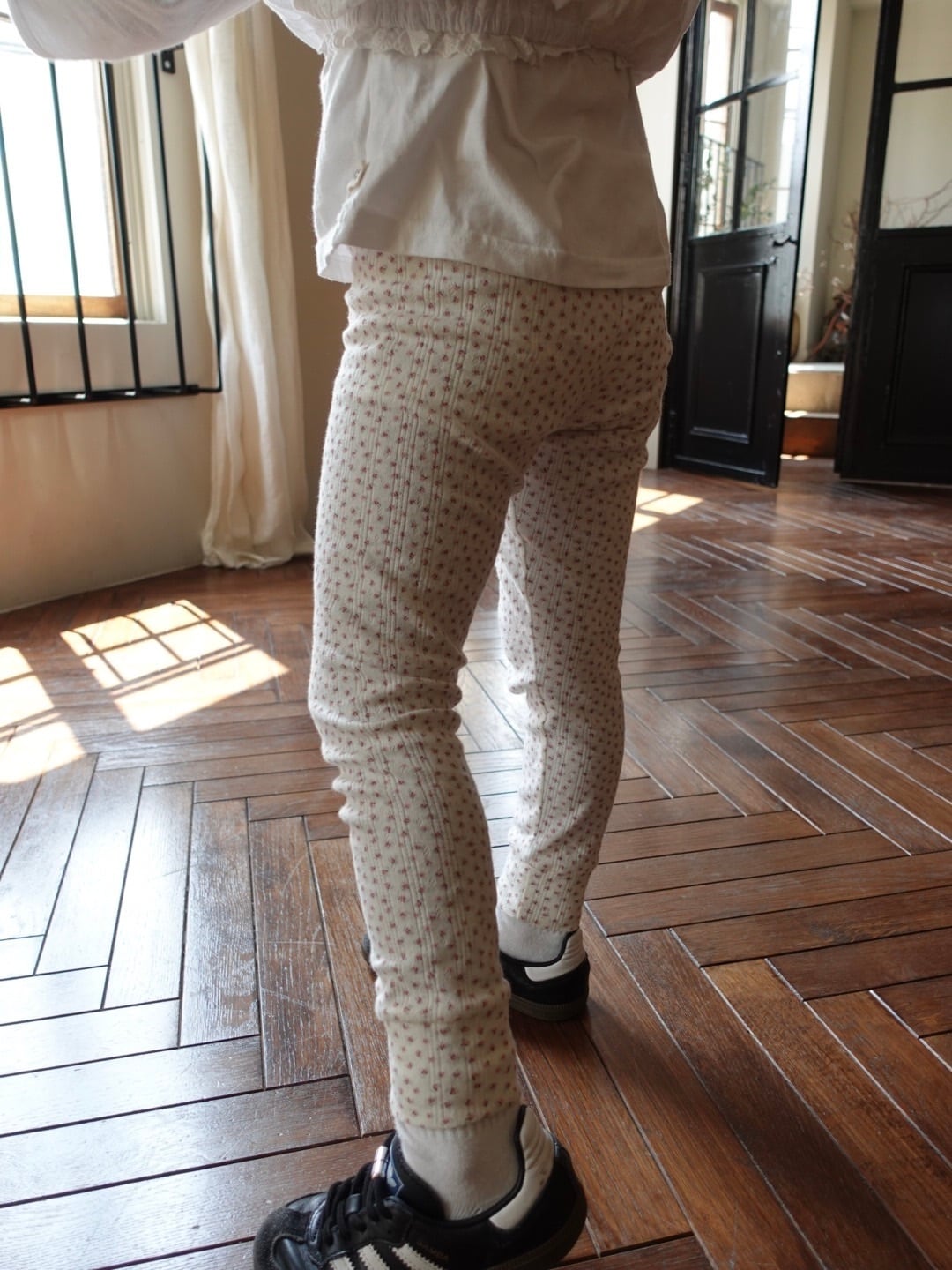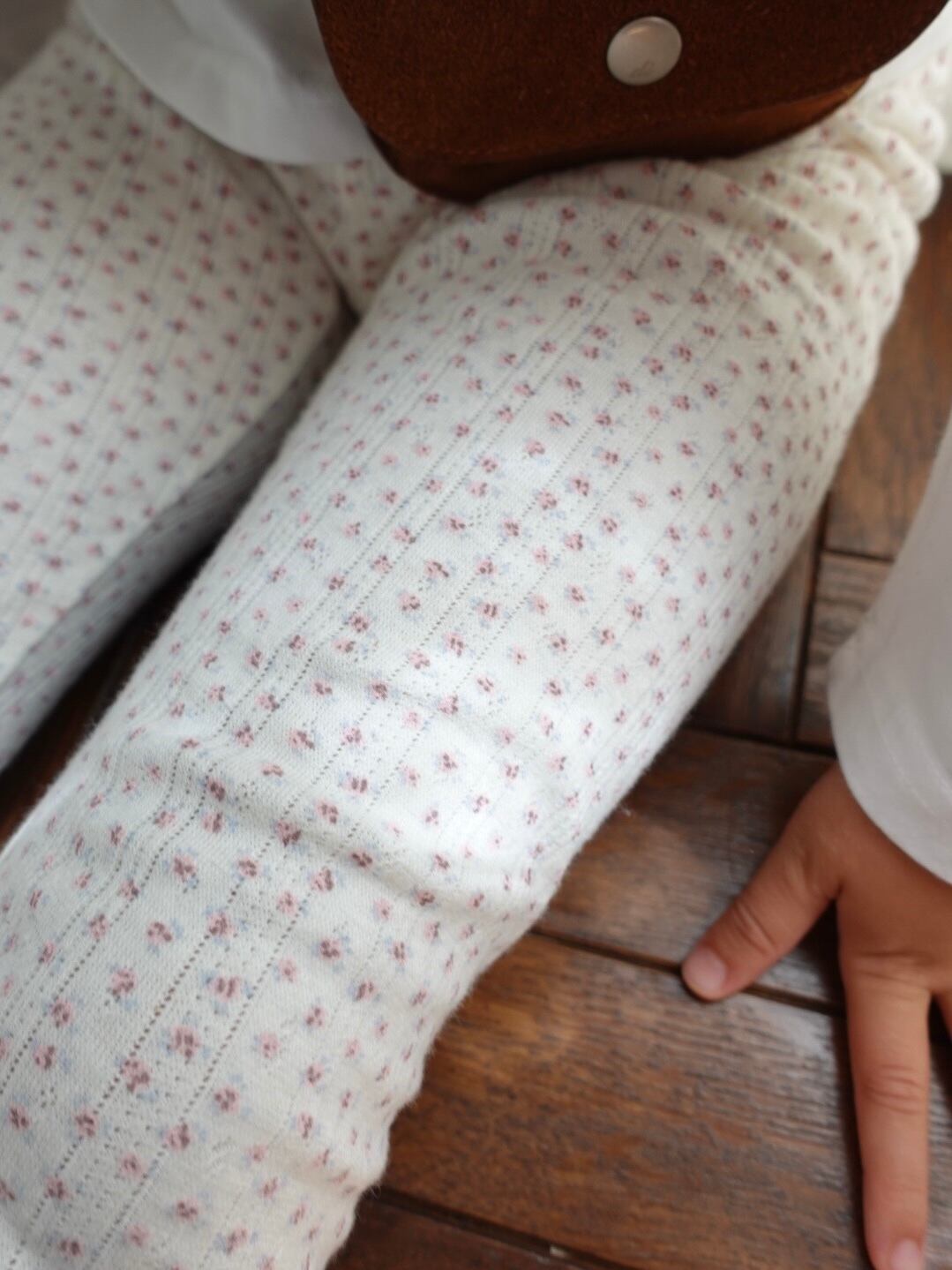 繊細なフラワーポインテール生地を使用した、コットン100%のレギンス。