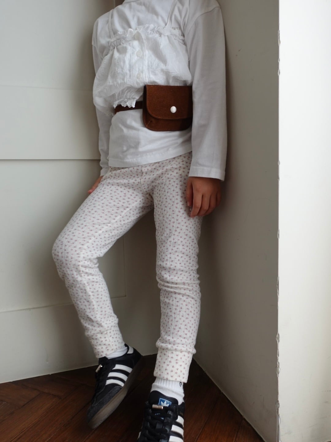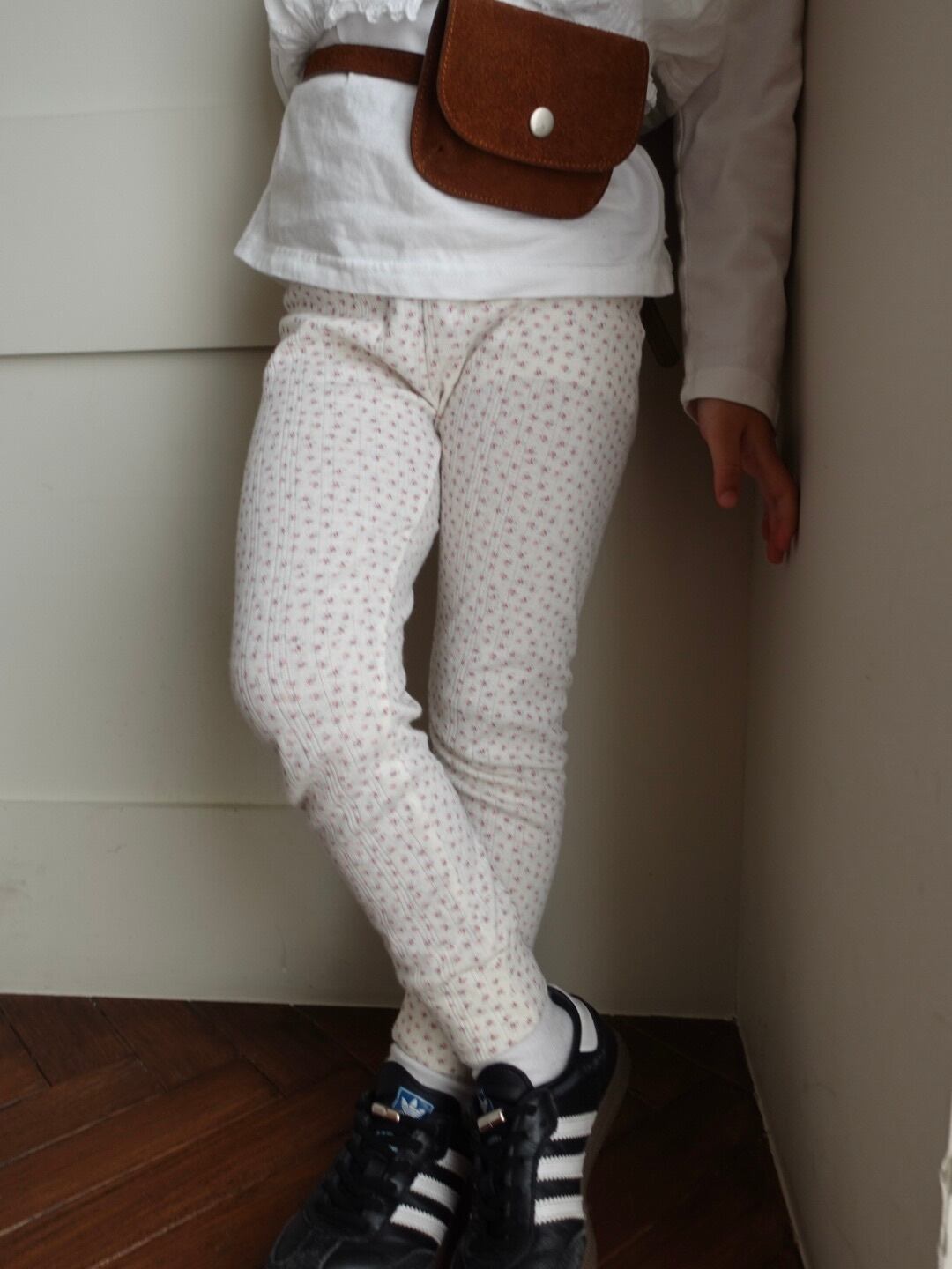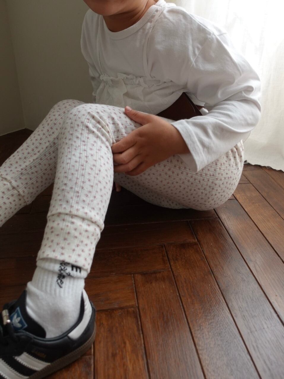 繊細なフラワーポインテール生地を使用した、コットン100%のレギンス。