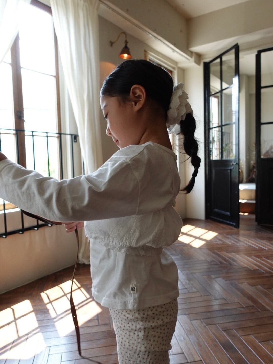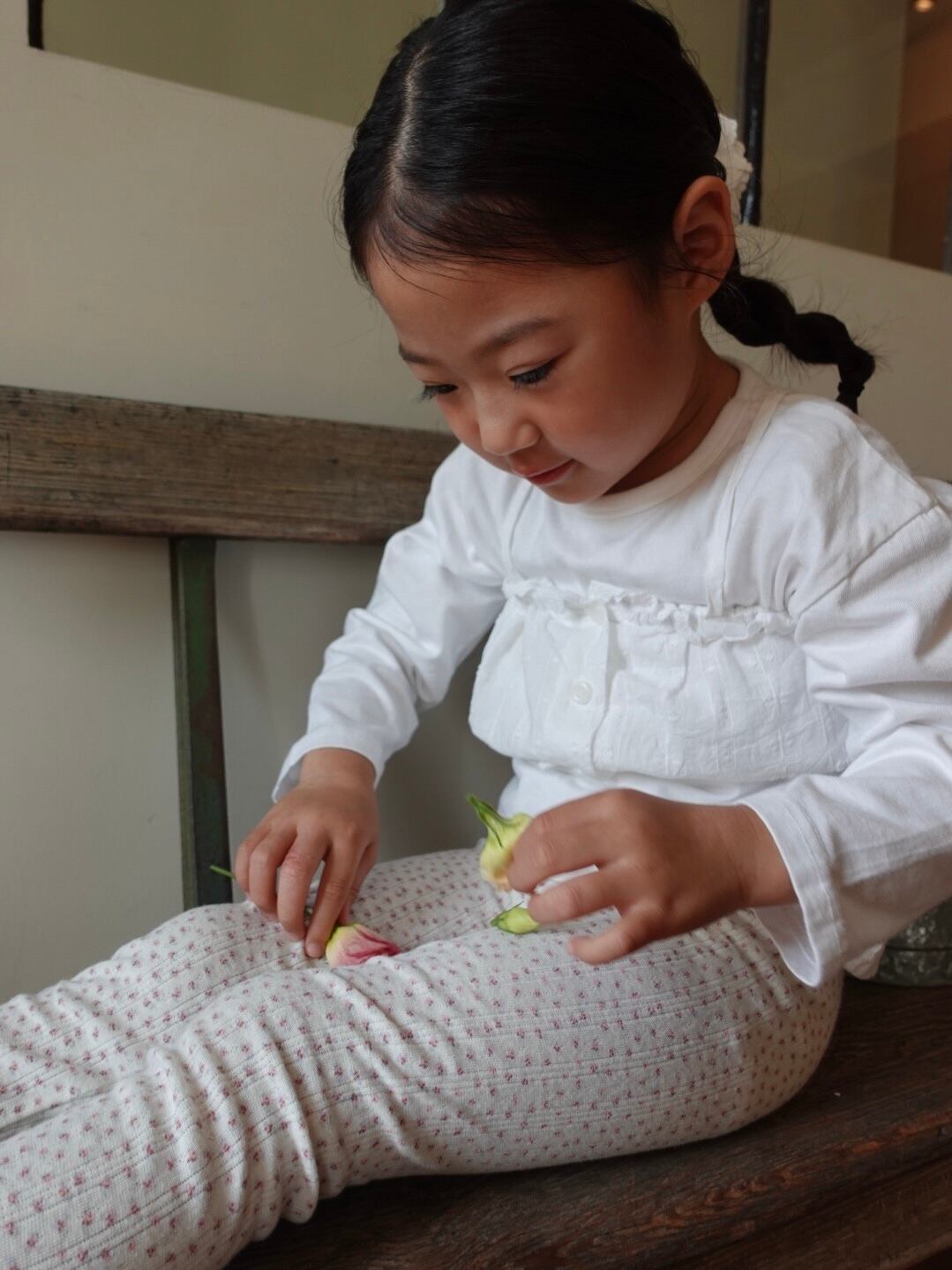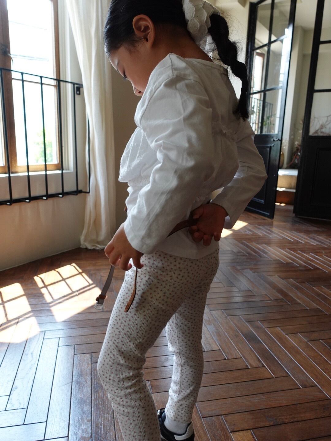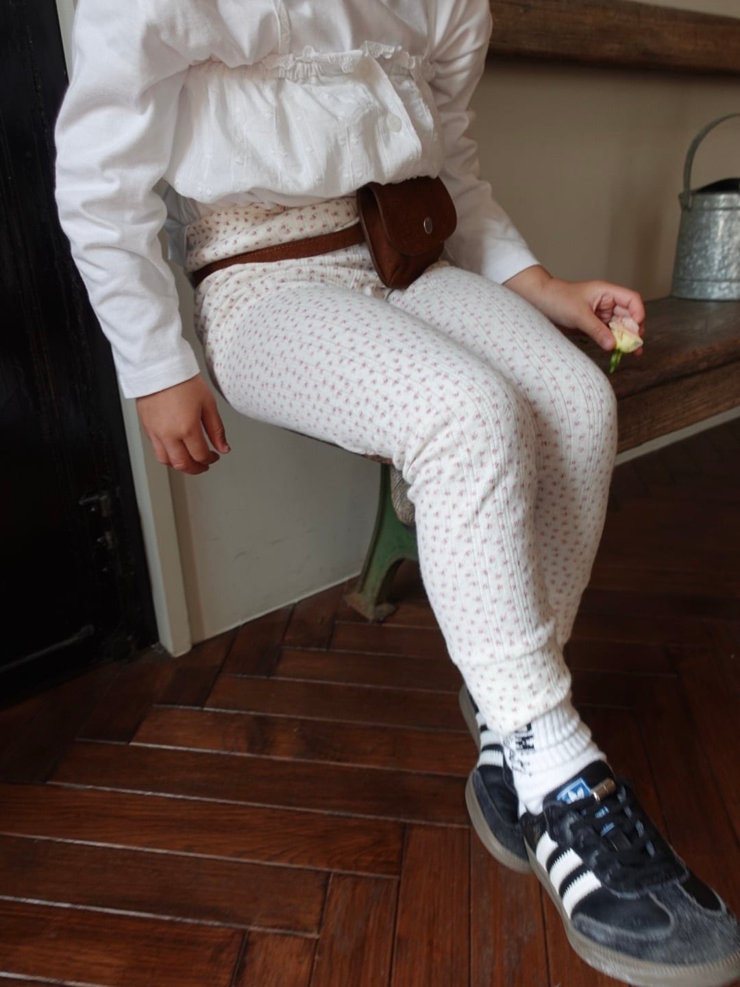 繊細なフラワーポインテール生地を使用した、コットン100%のレギンス。