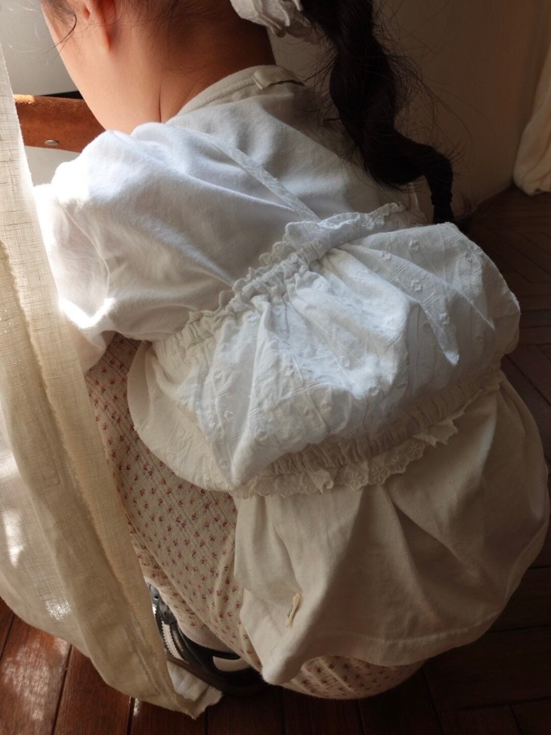 ウエストにはさりげないレースをあしらい、シンプルな中にも上品なアクセントをプラス。