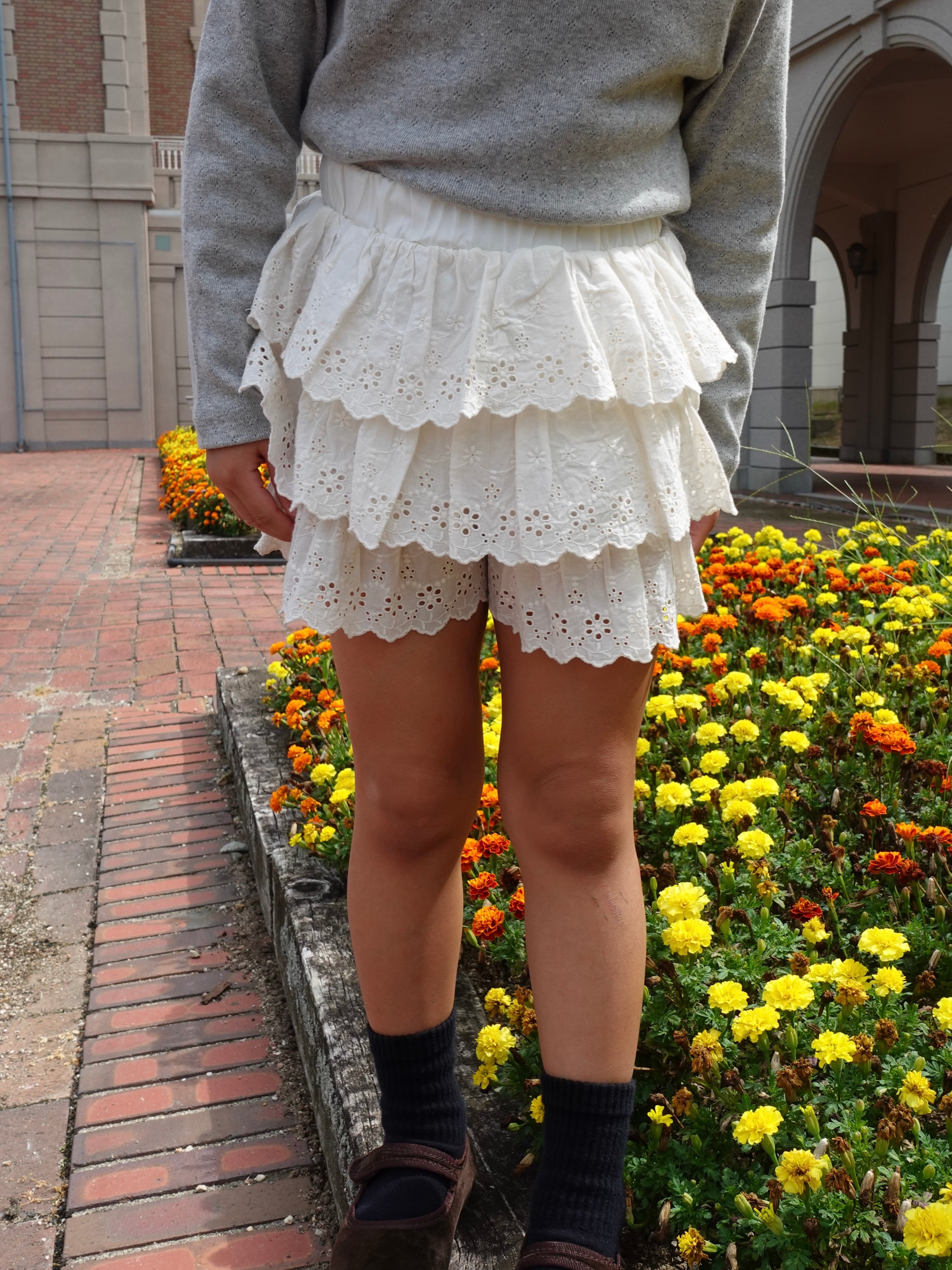 短め丈に軽やかなボリューム感が可愛らしく、ガーリーなコーディネートはもちろん、カジュアルスタイルにも相性抜群です。