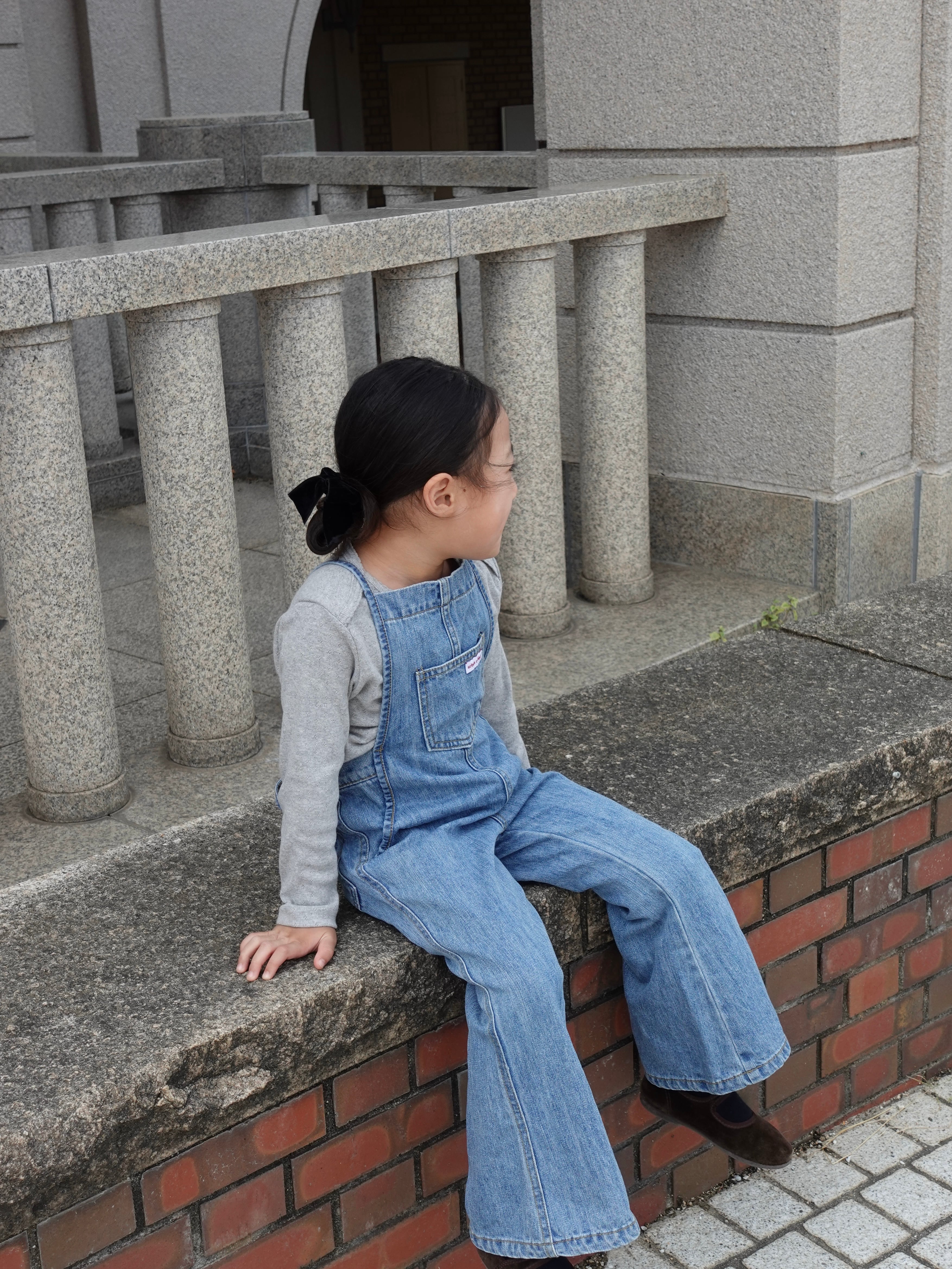 タイムレスなデニムオーバーオールに、フレアシルエットで遊び心をプラス。
