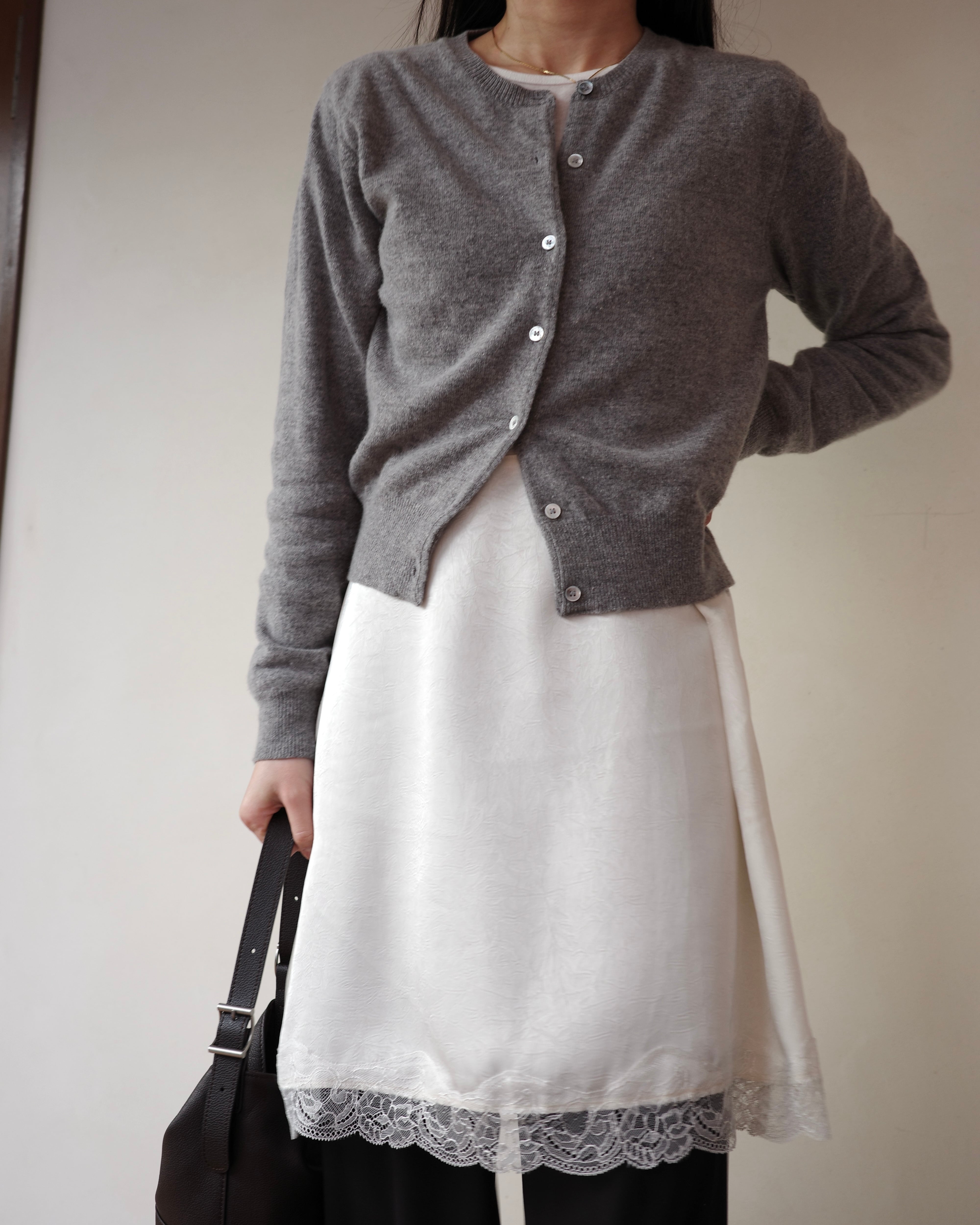 上質なカシミヤをブレンドした、シンプルで洗練されたラウンドカーディガン。