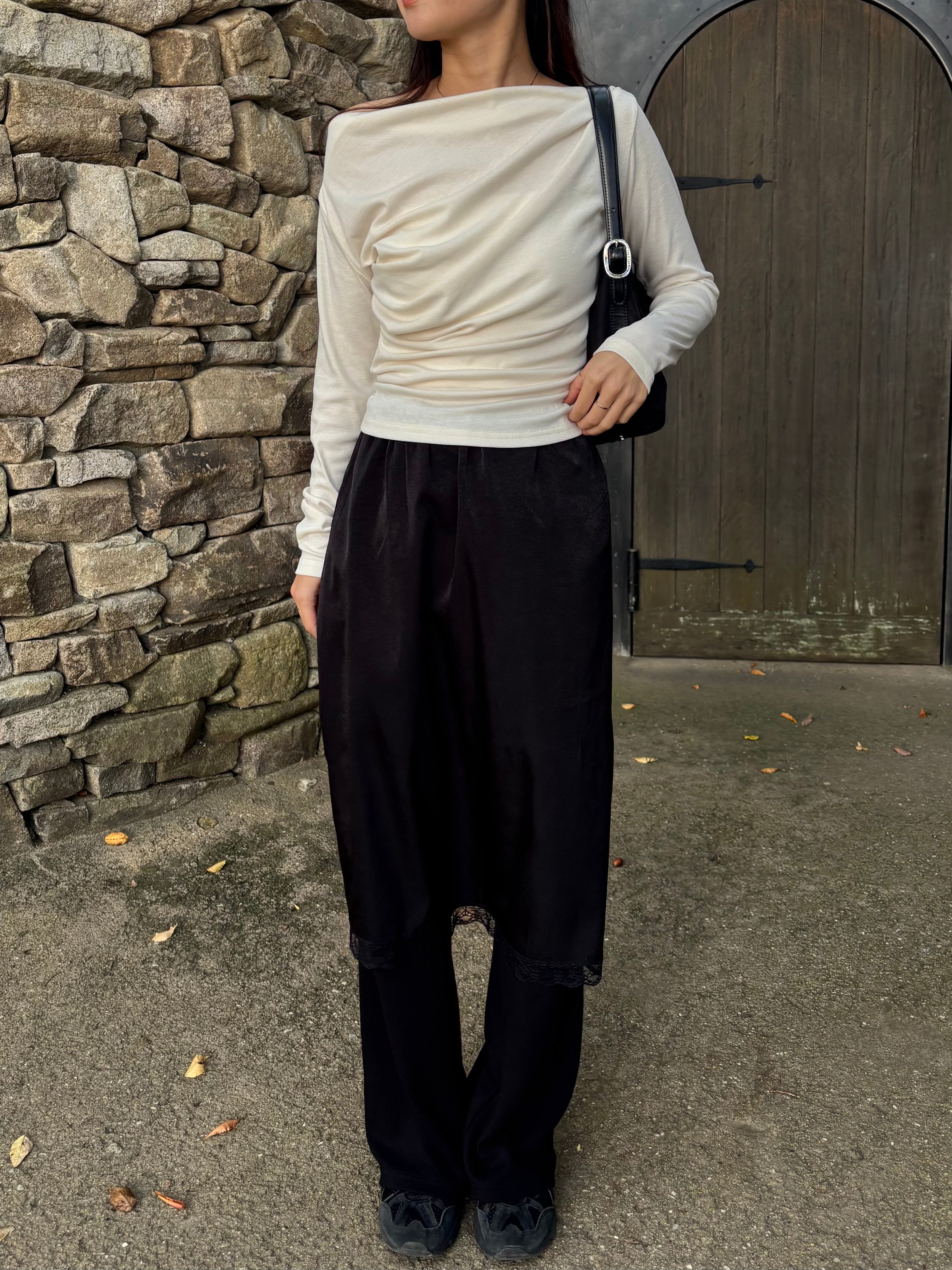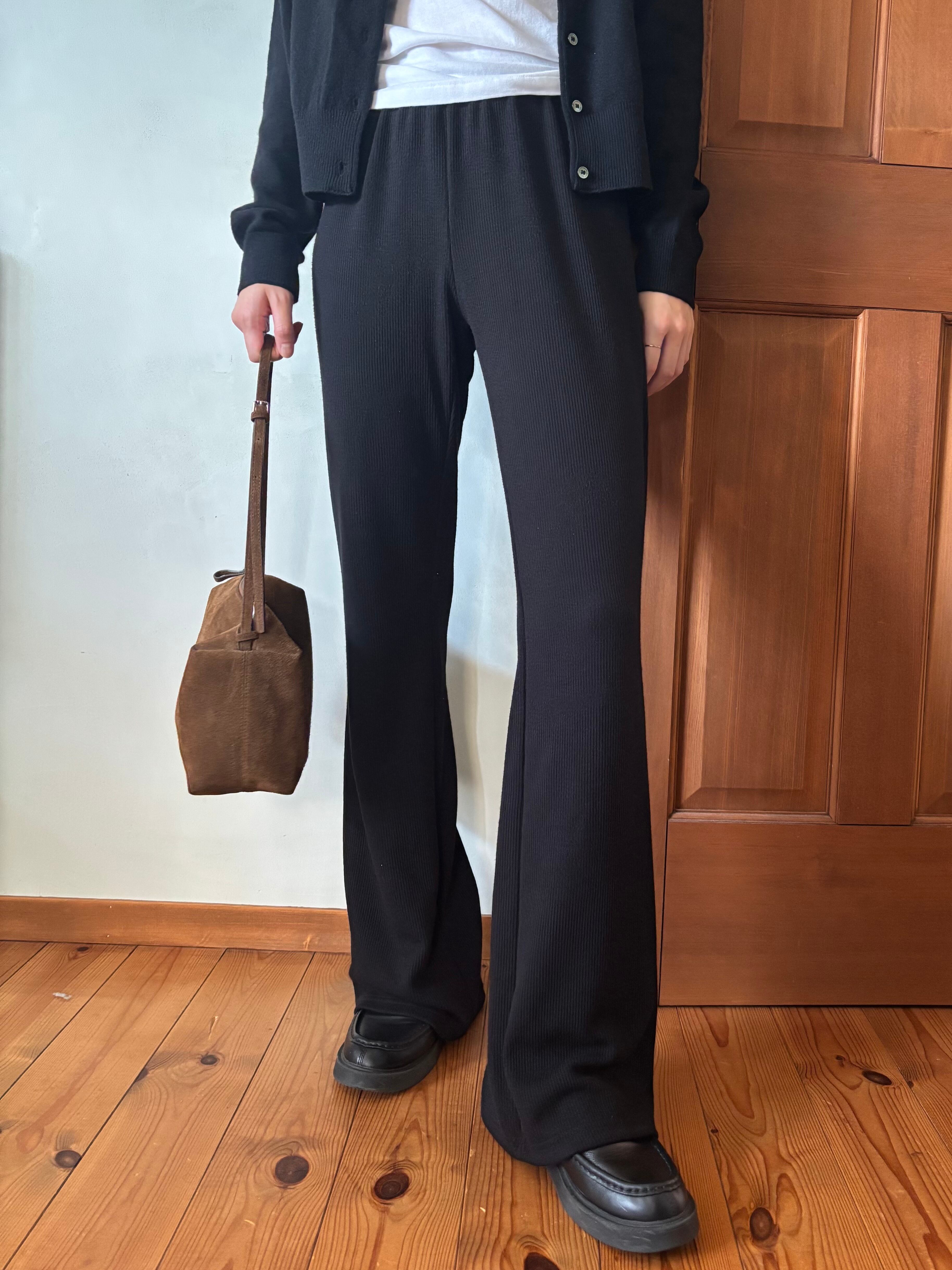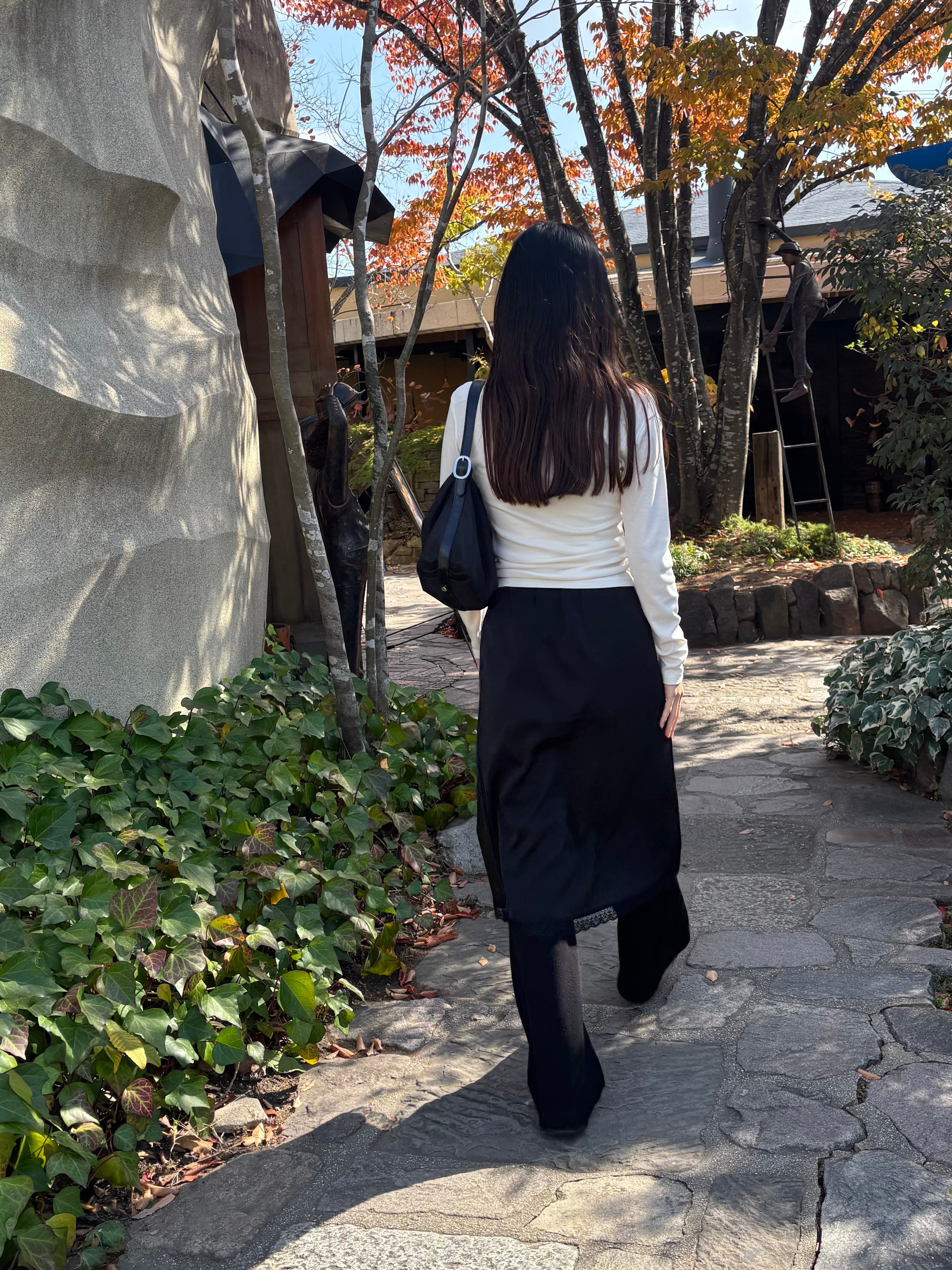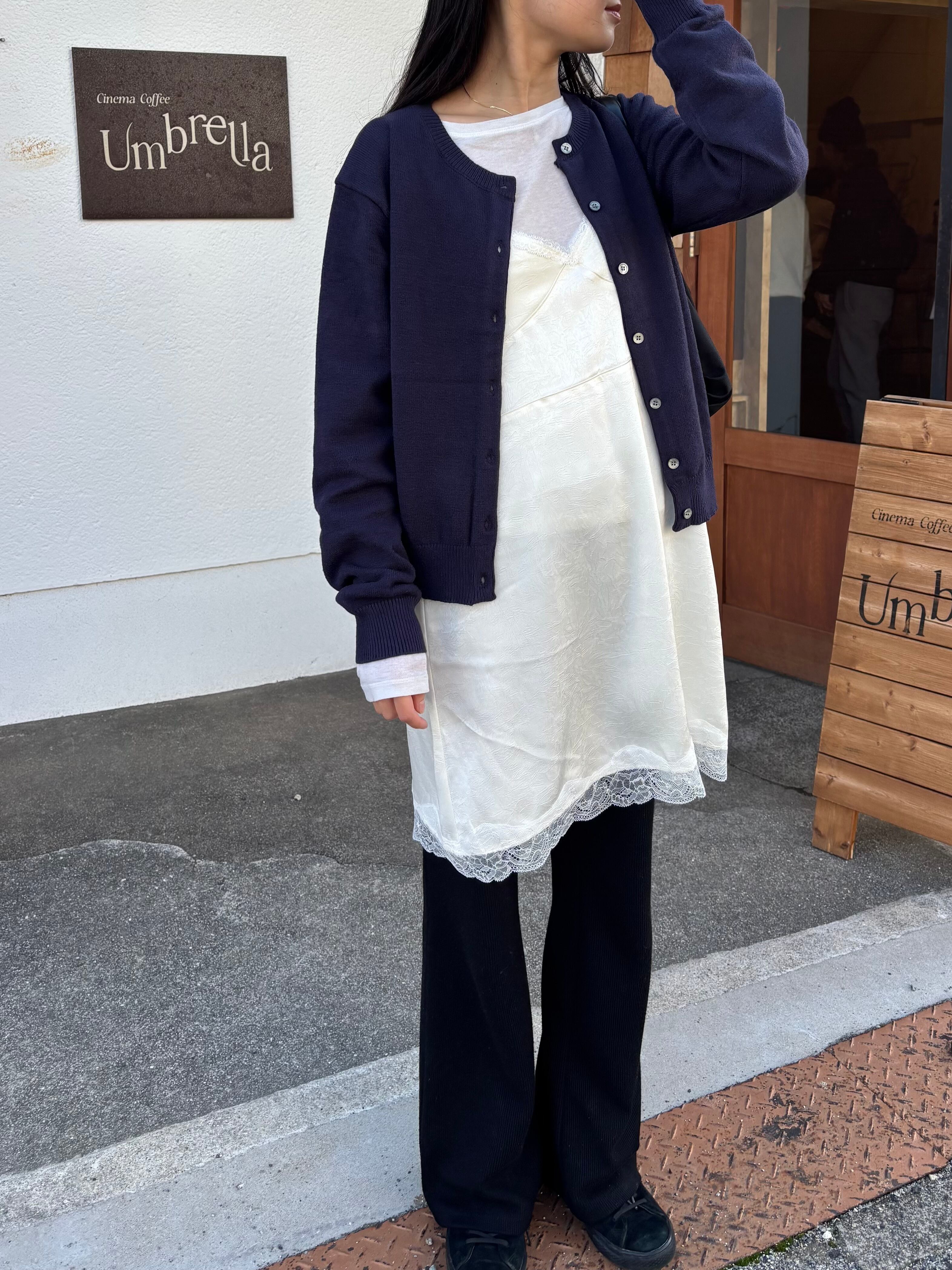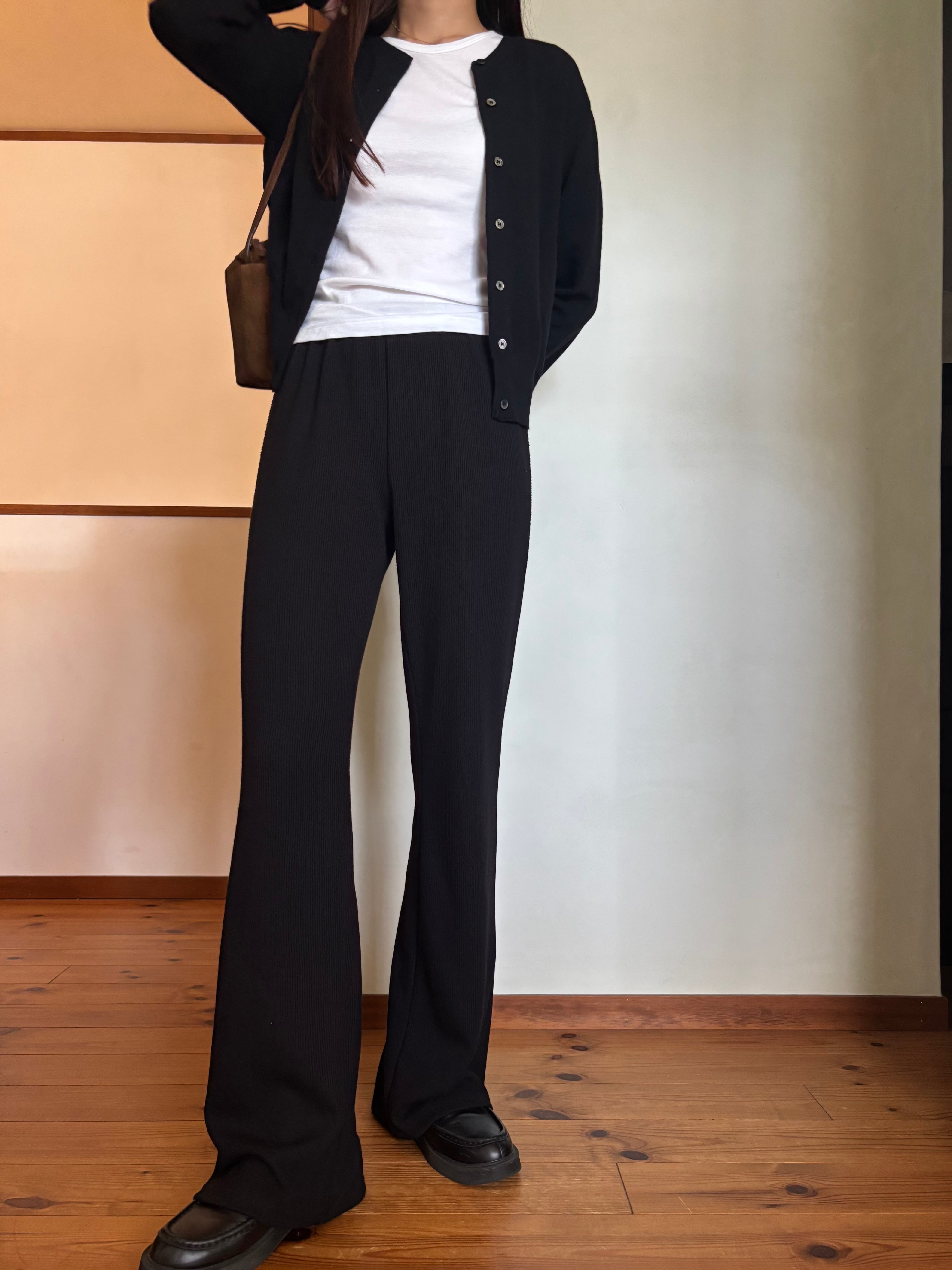 秋冬らしい温かみを感じるリブ素材で、ボディラインを拾いすぎずデイリーに楽に着れます。