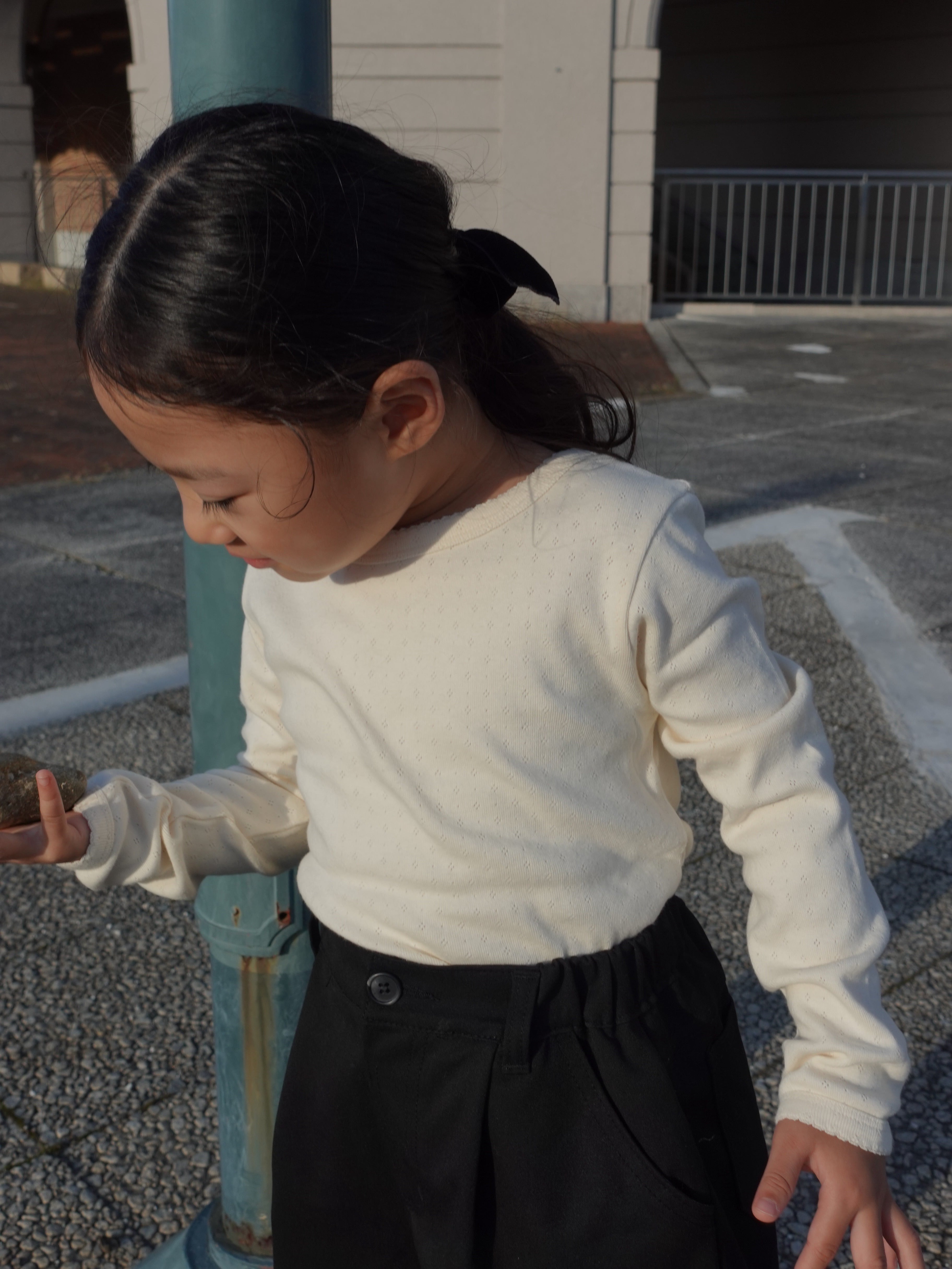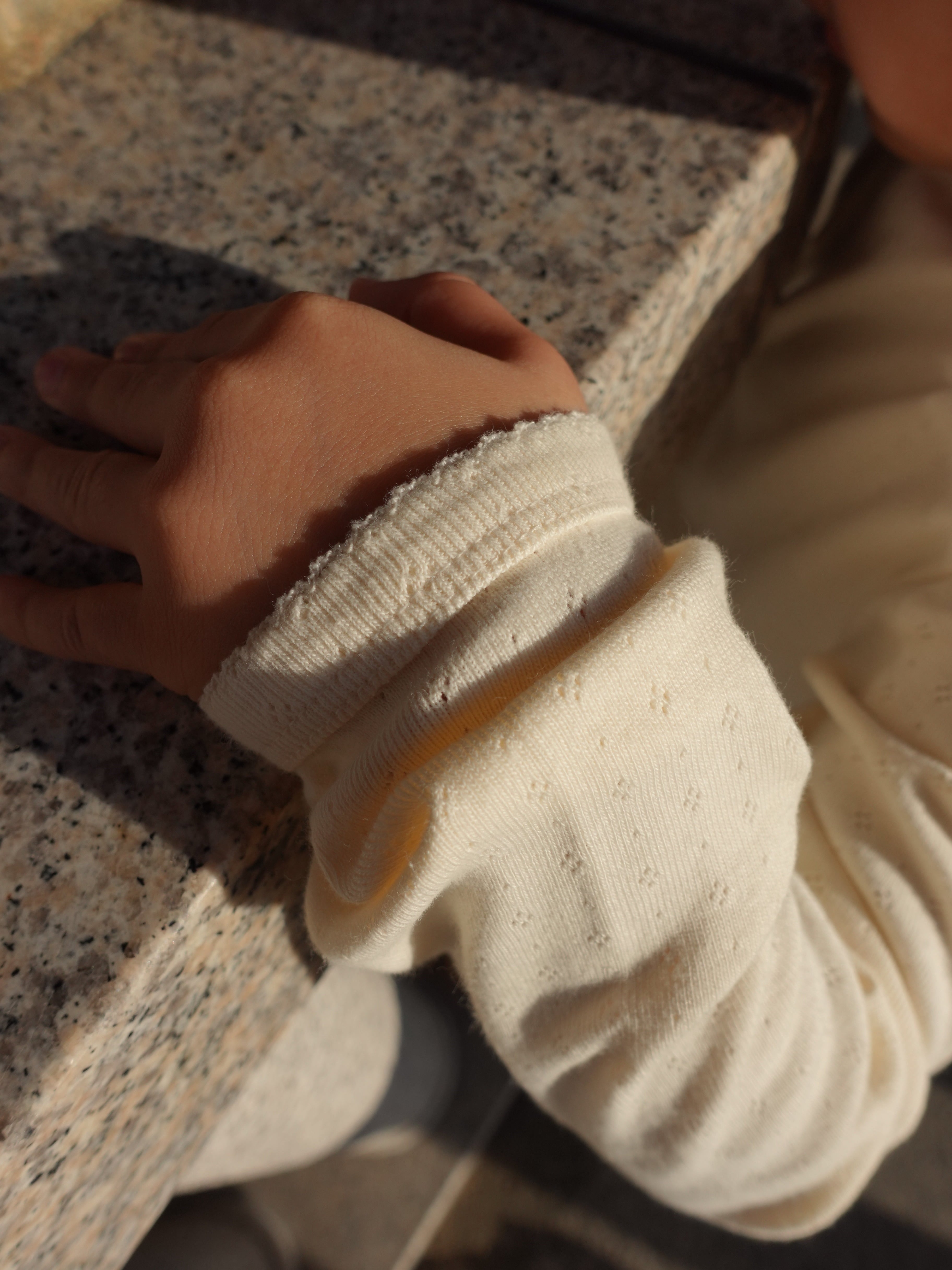 コットンアイレット生地で仕立てた上品なカットソー。