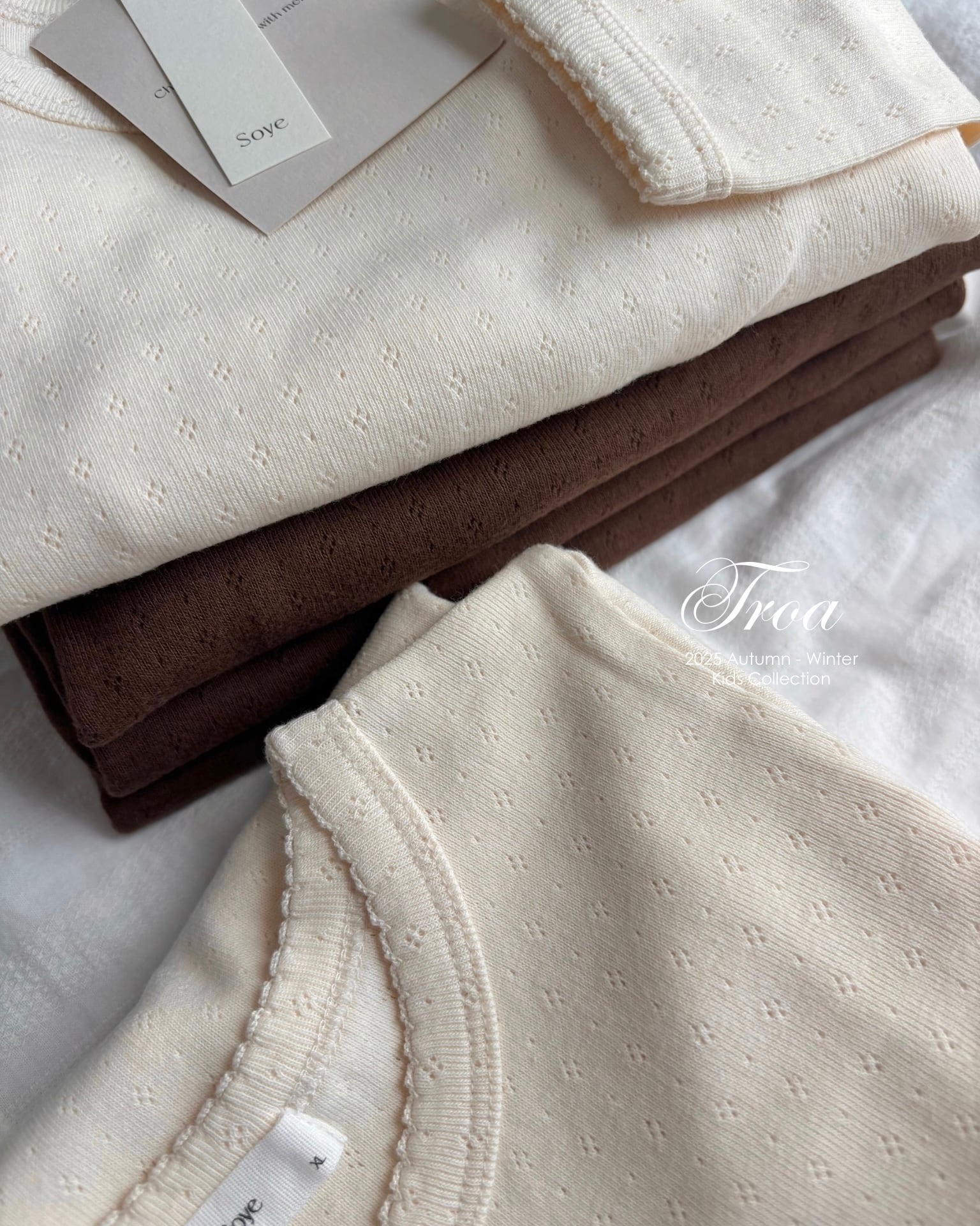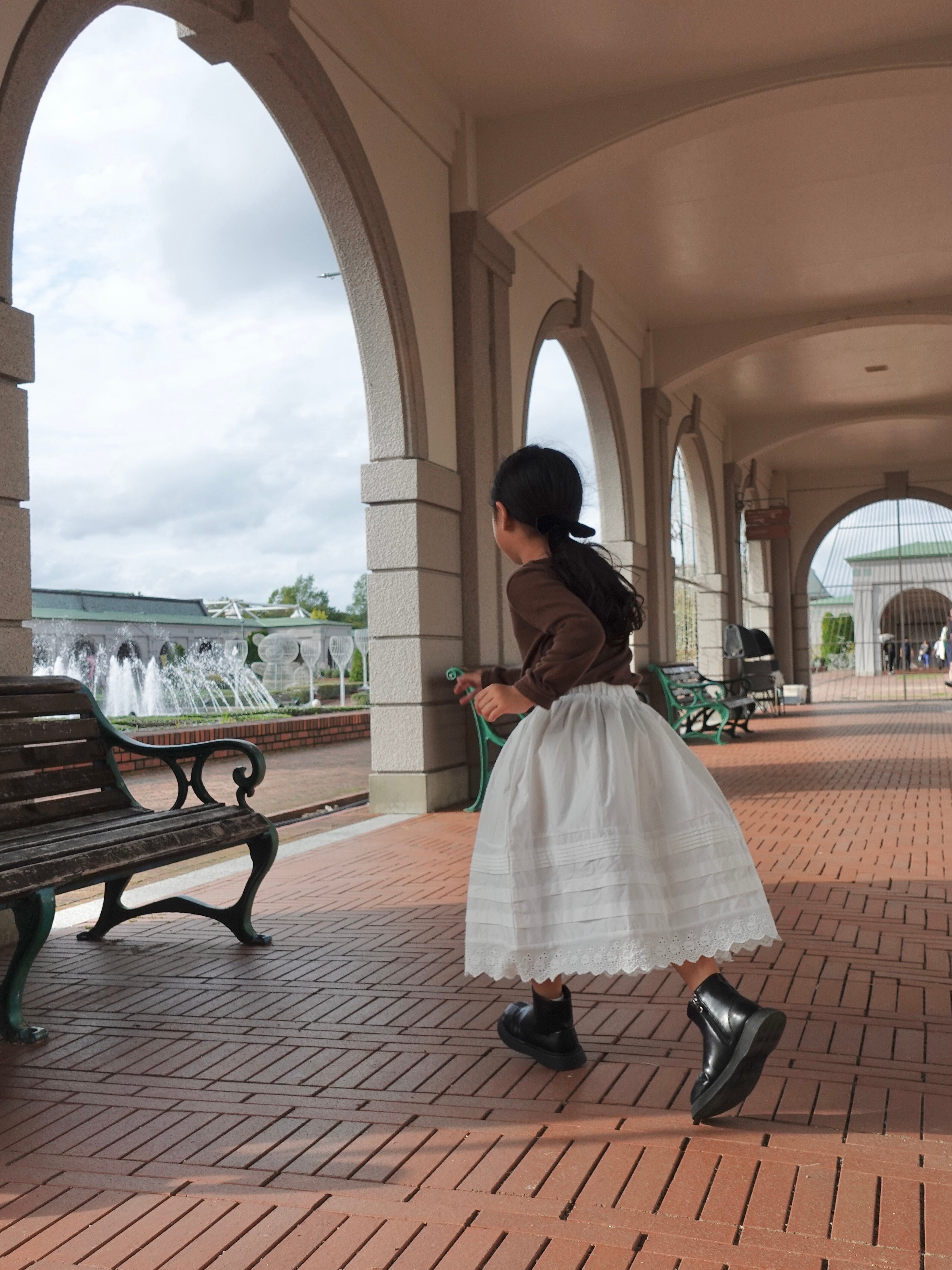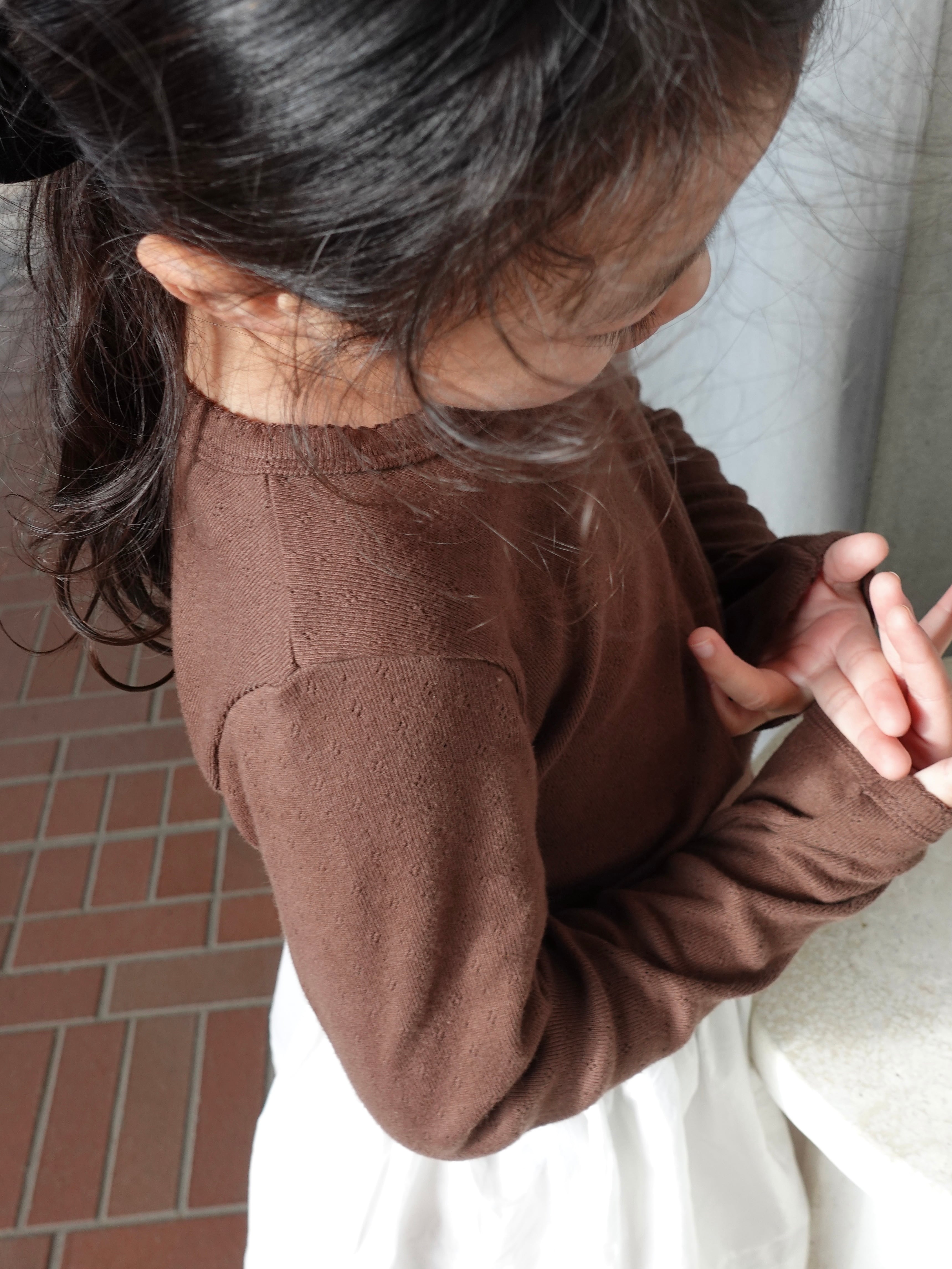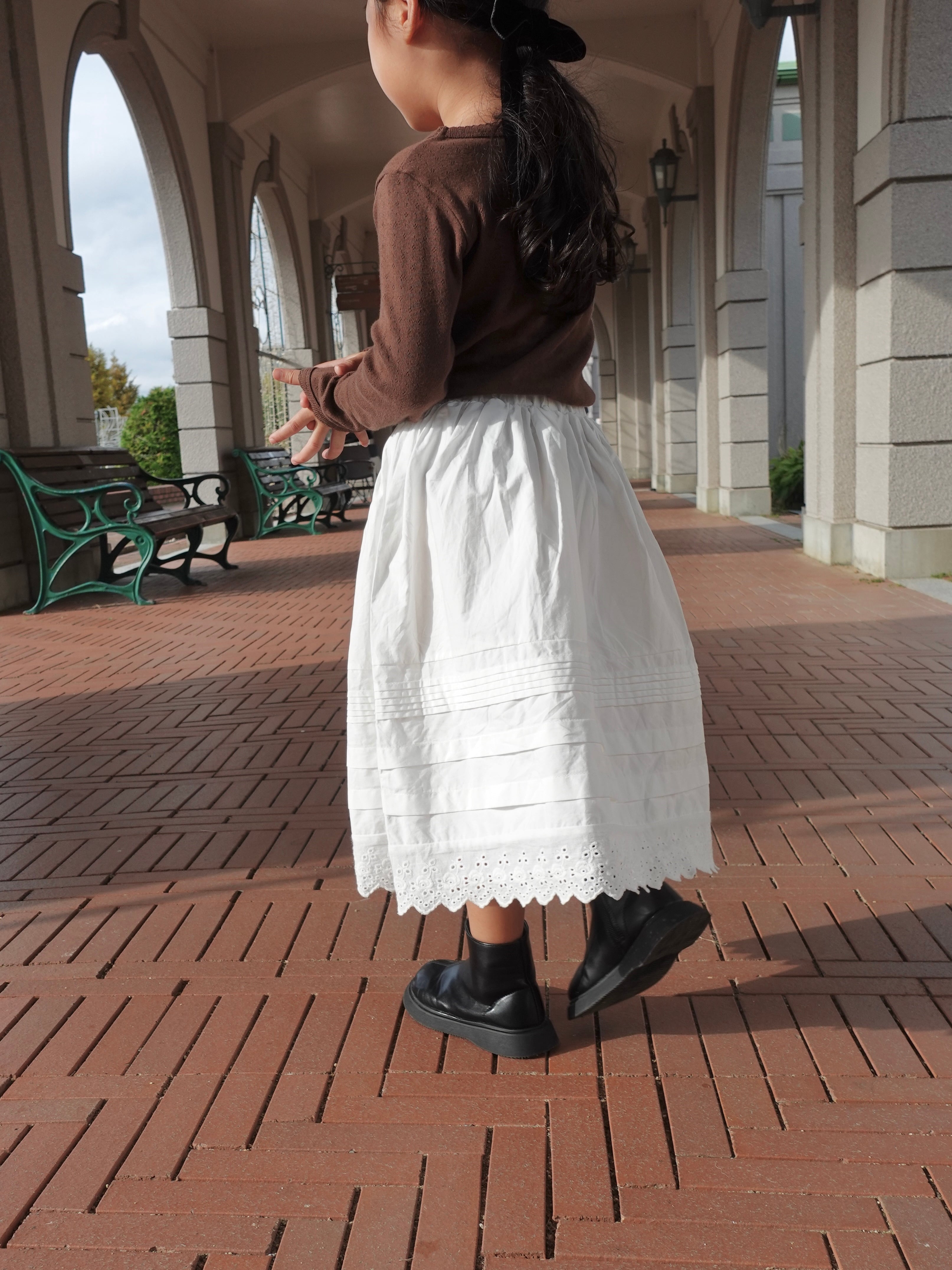 襟元と袖口にあしらったピコレースが、控えめながらも愛らしいアクセントに。