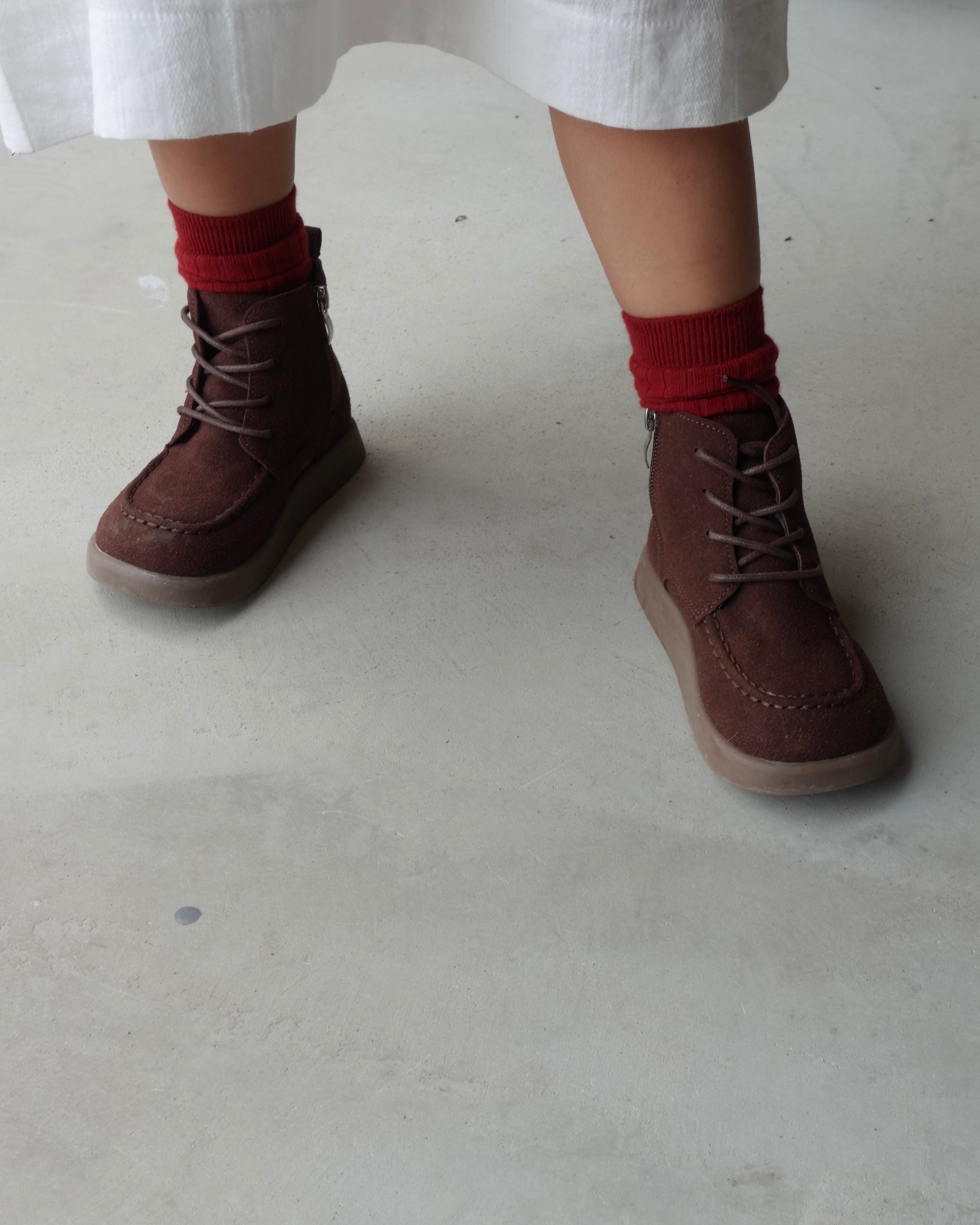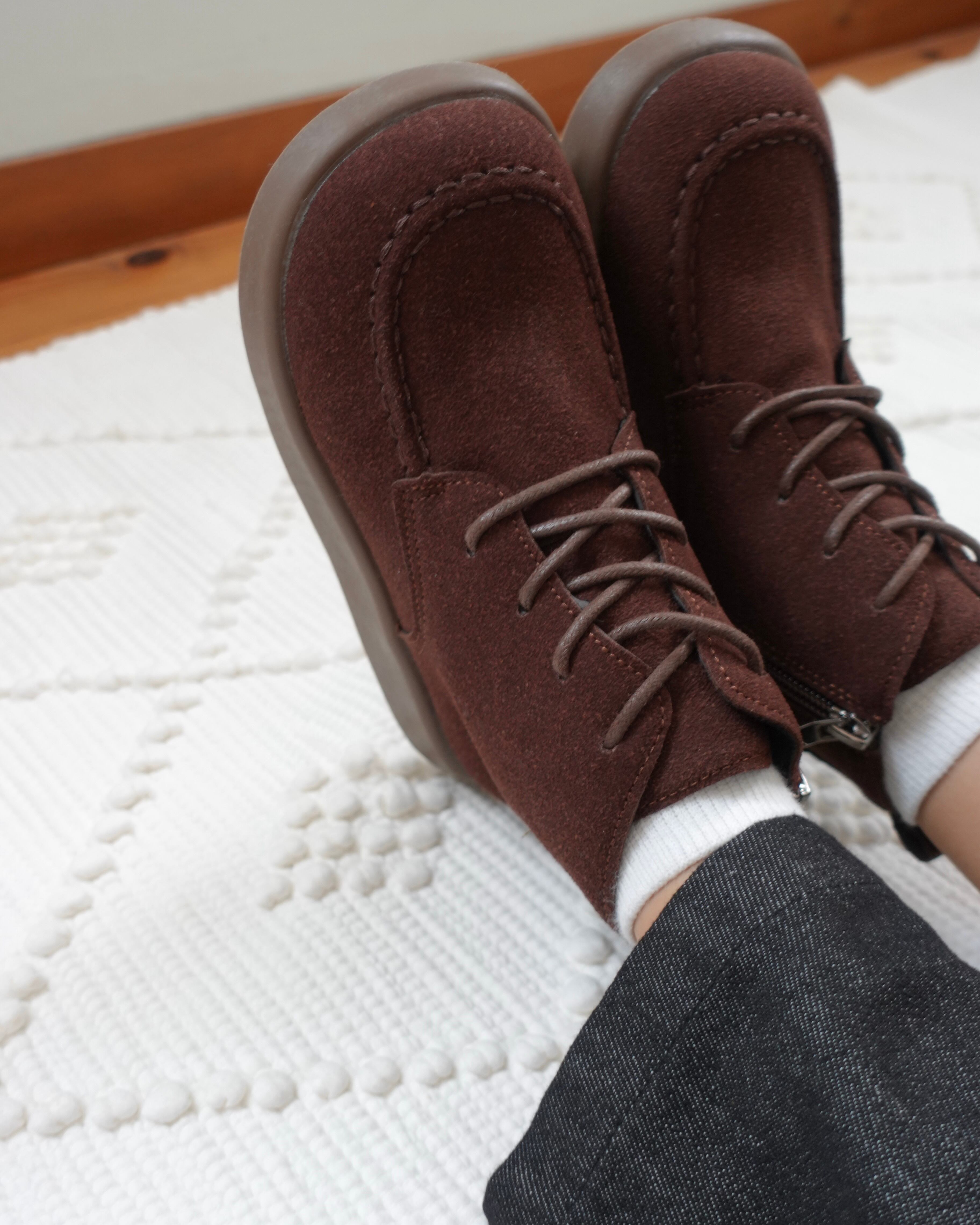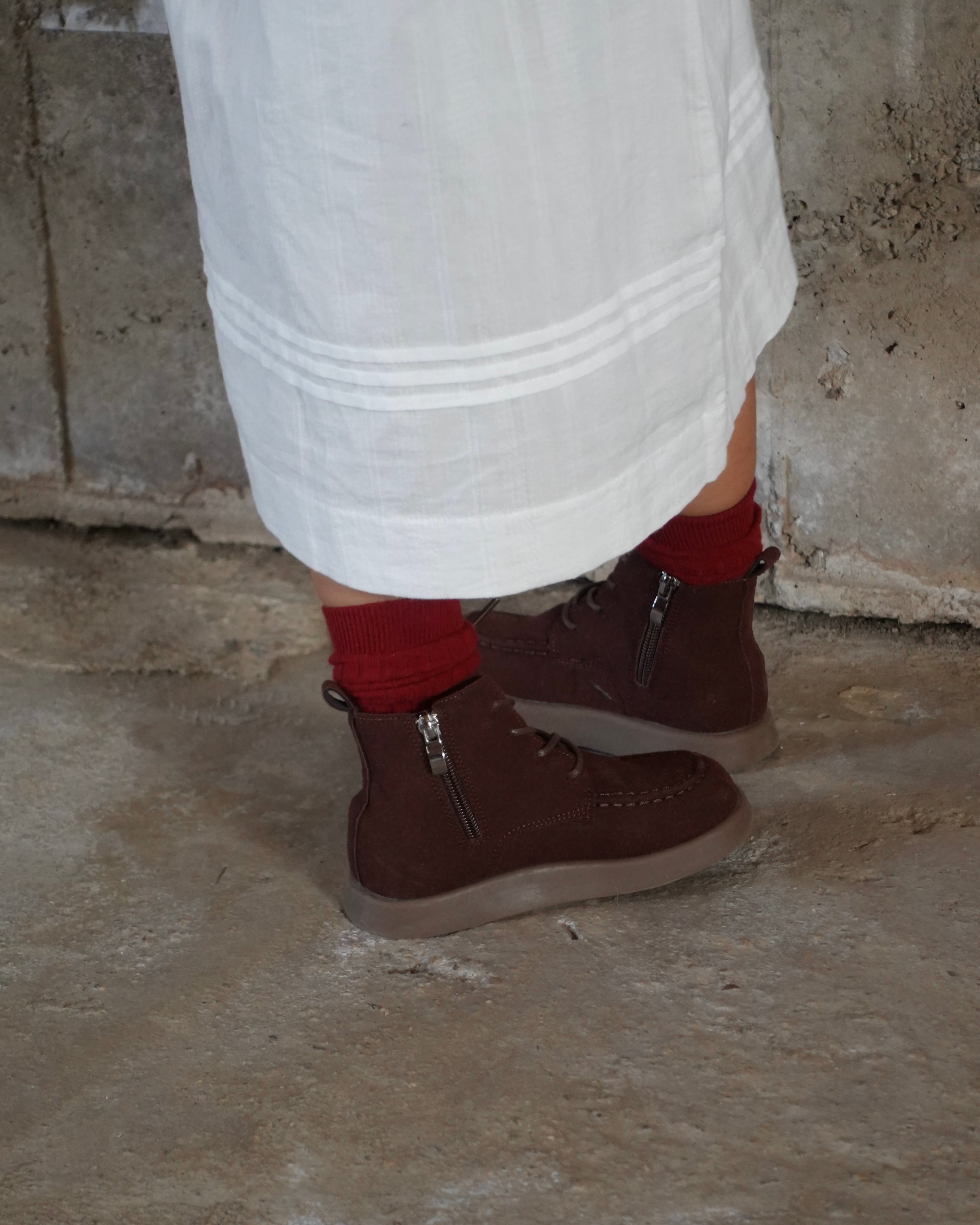 レースアップデザインながら、サイドジップ付きで着脱がしやすい仕様です。