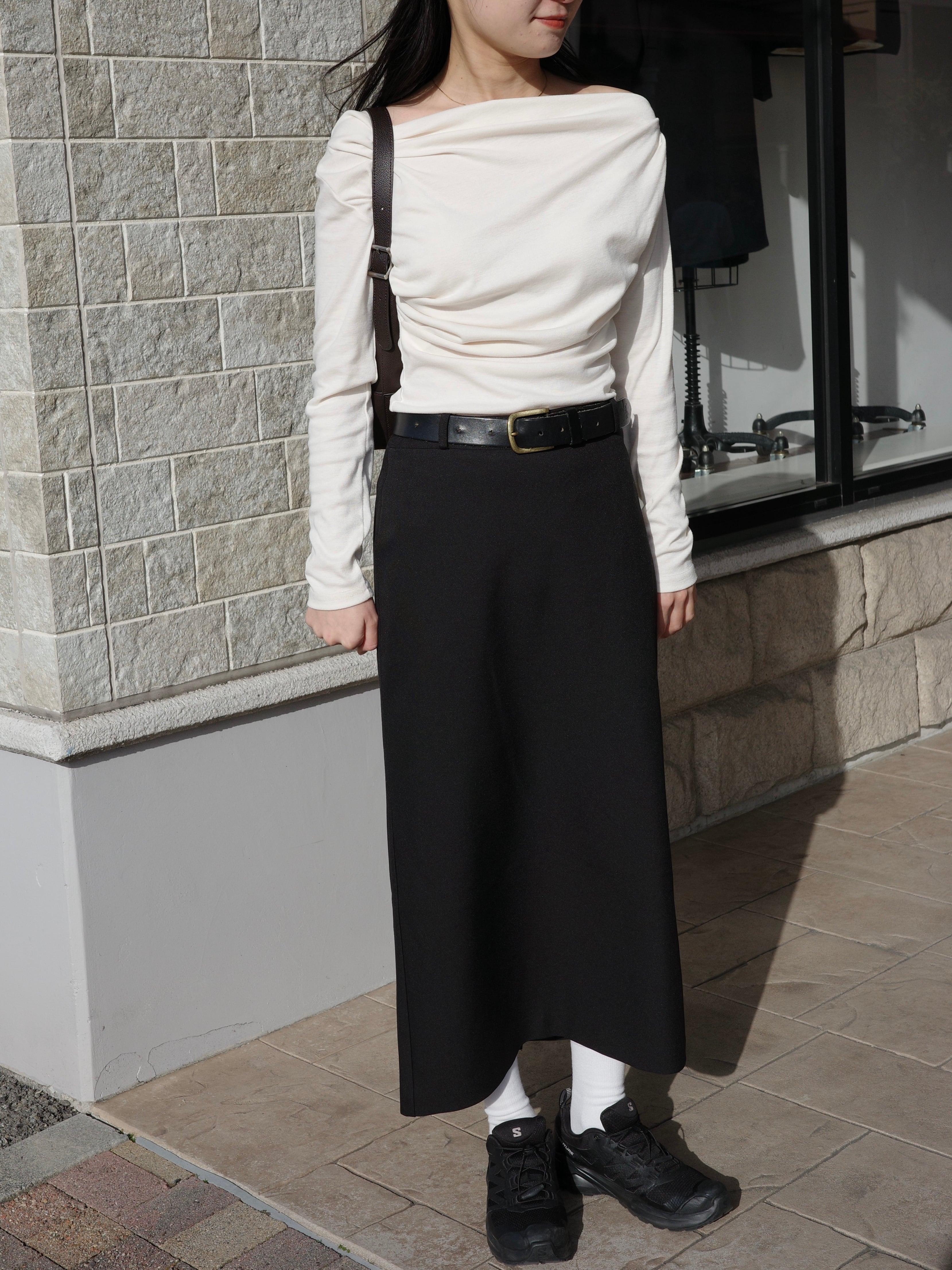 やわらかく落ち感のある素材を使用し、シルエットに自然な立体感を生み出します。