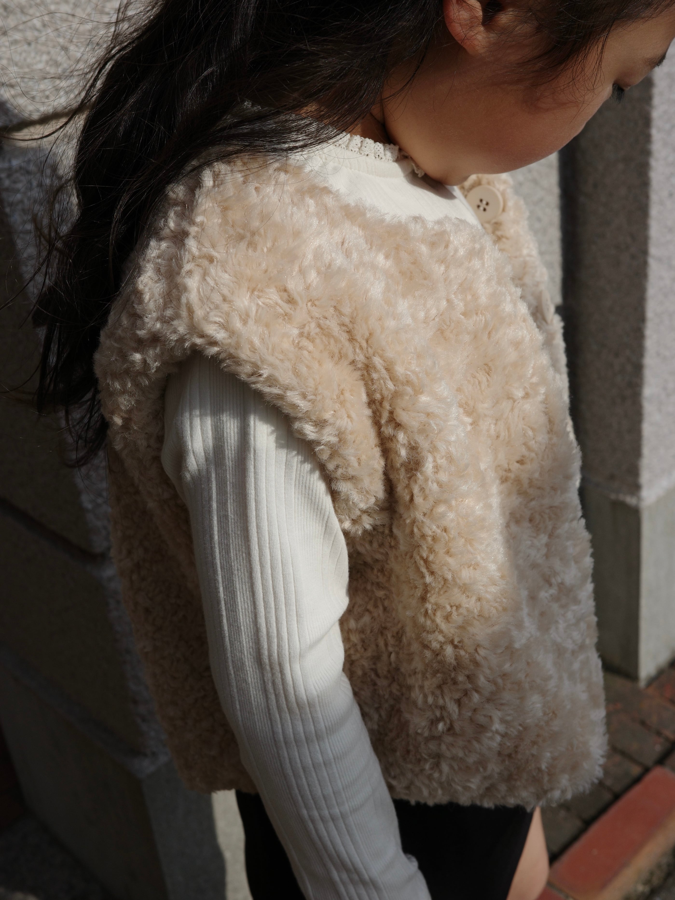ふんわりと軽くて暖かく、上品なボリューム感のファーベスト。