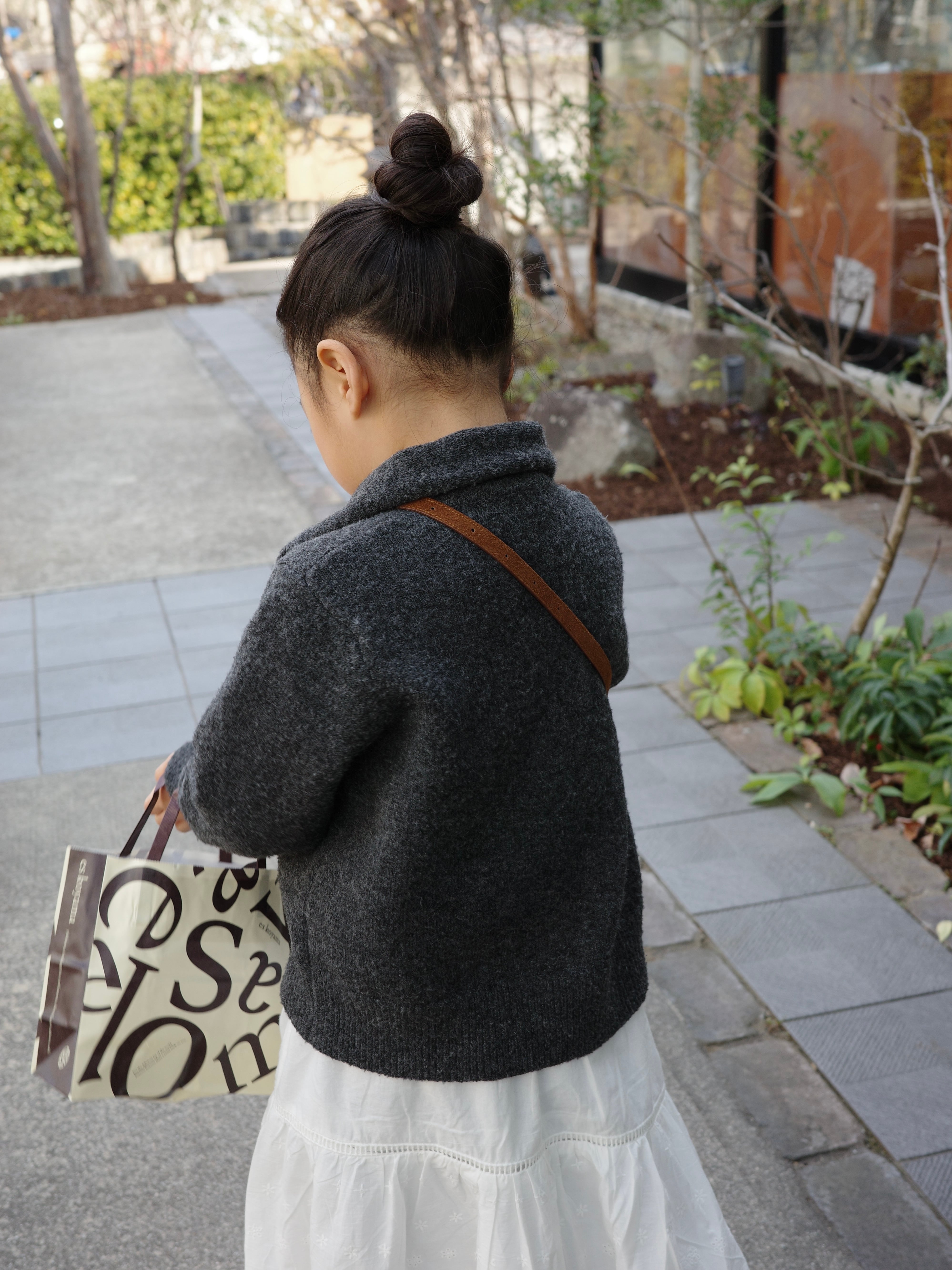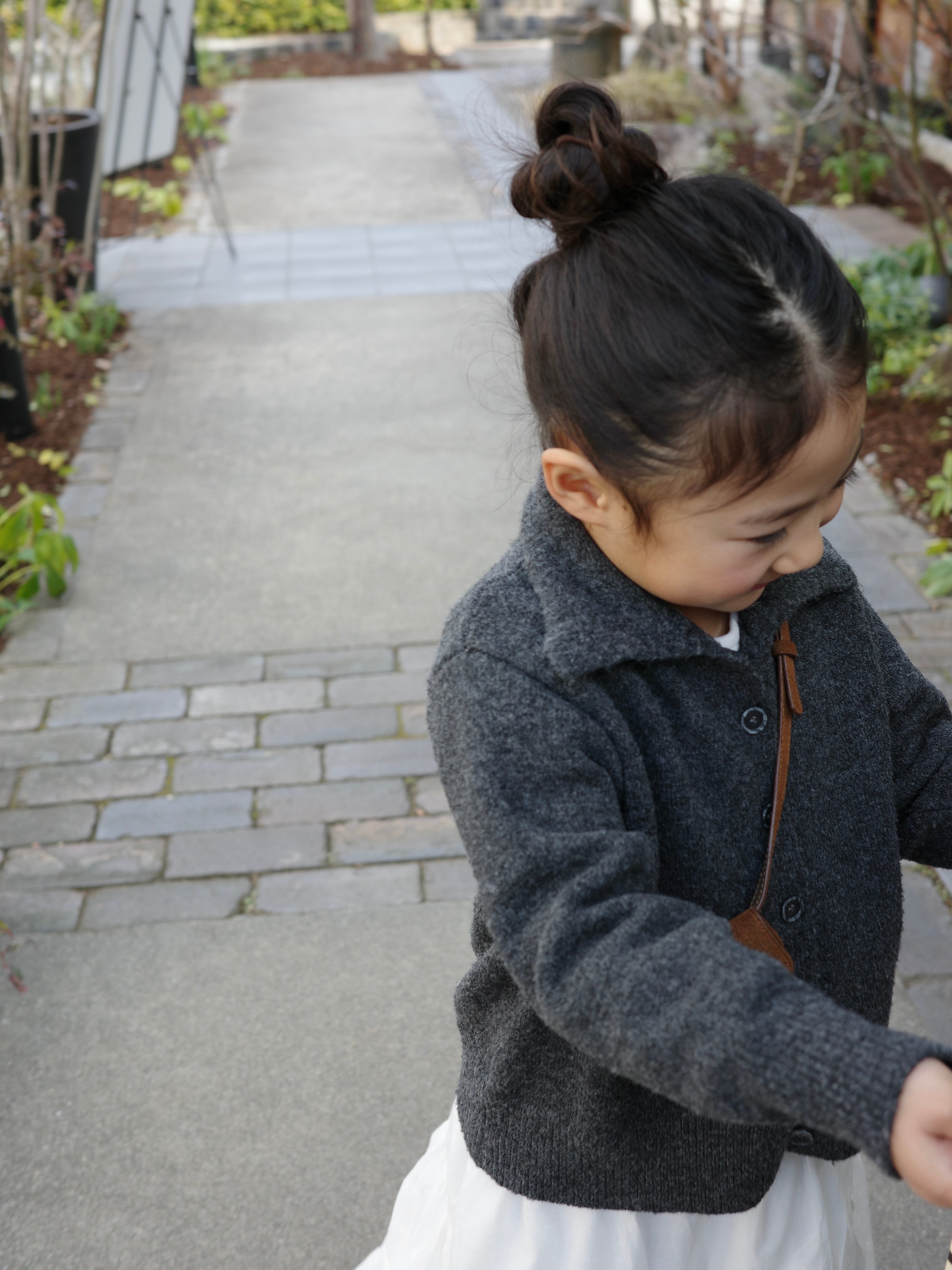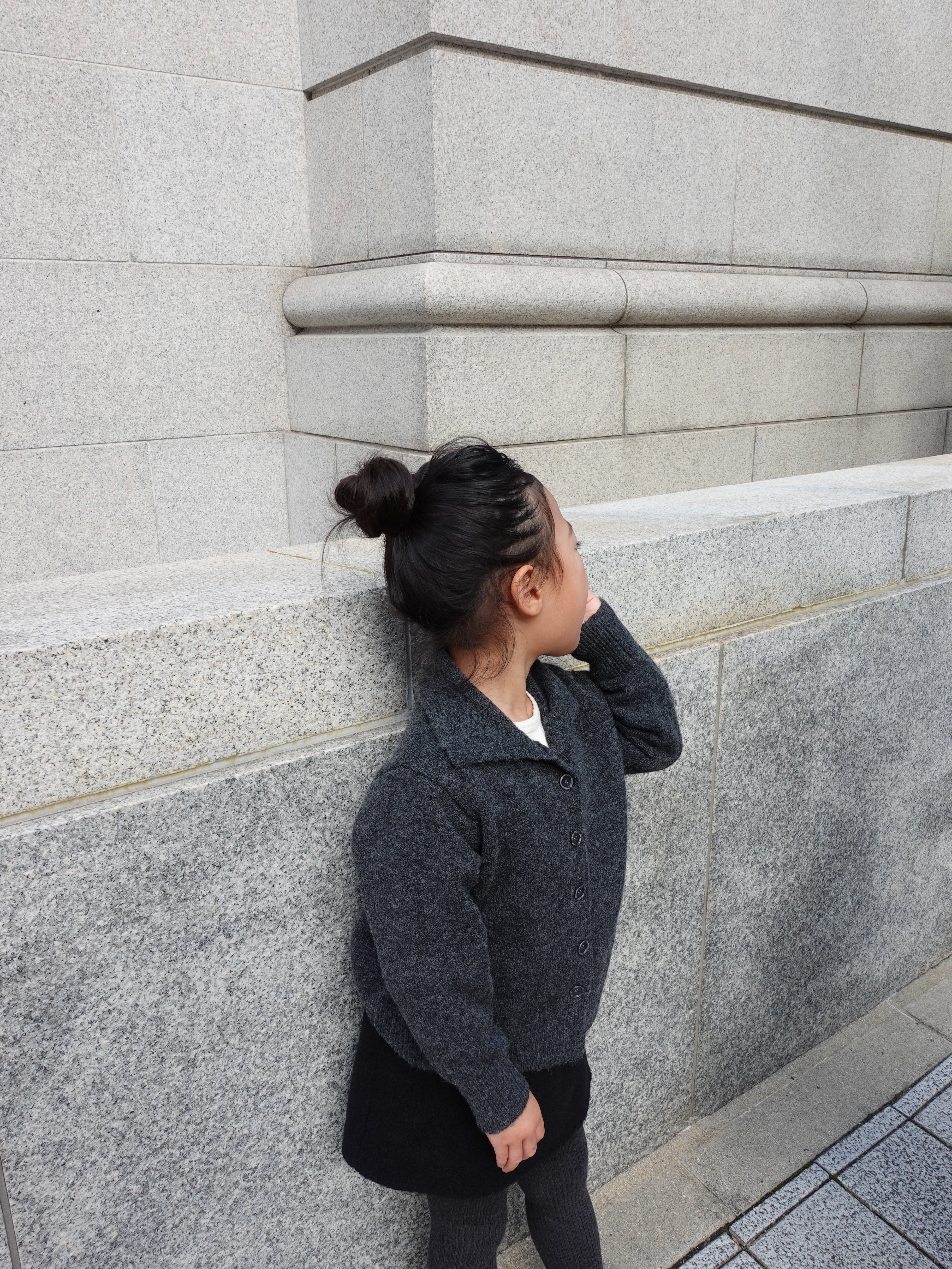 ほどよくゆとりのあるシルエットと襟付きのデザインが、上品でクラシックな印象に。
