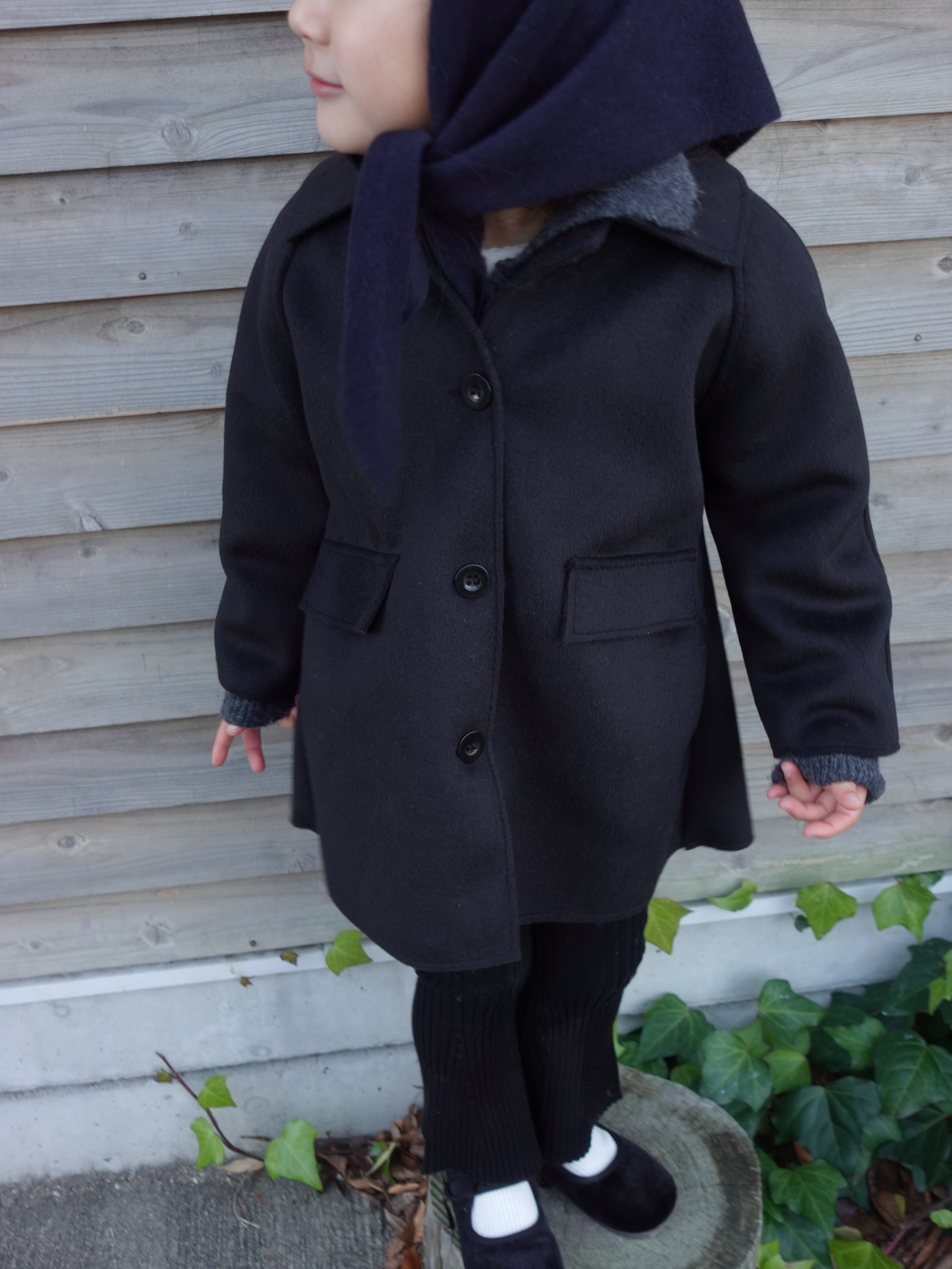 全体的にやや小さめのつくりに感じたため、ワンサイズ以上上げて、袖をゆったりと折り返し、着丈を少し長めにして着ていただくスタイリングも可愛いと思います。