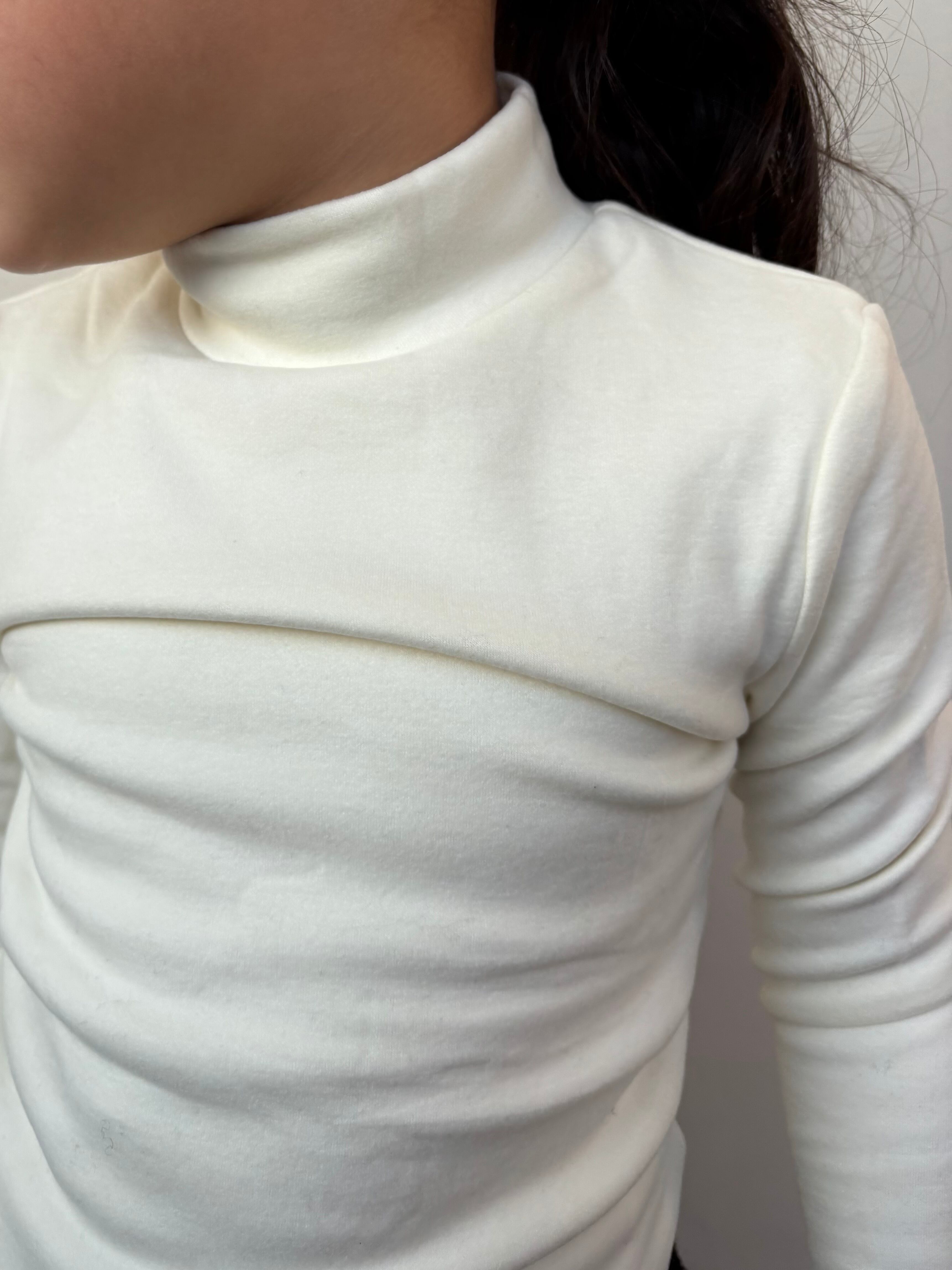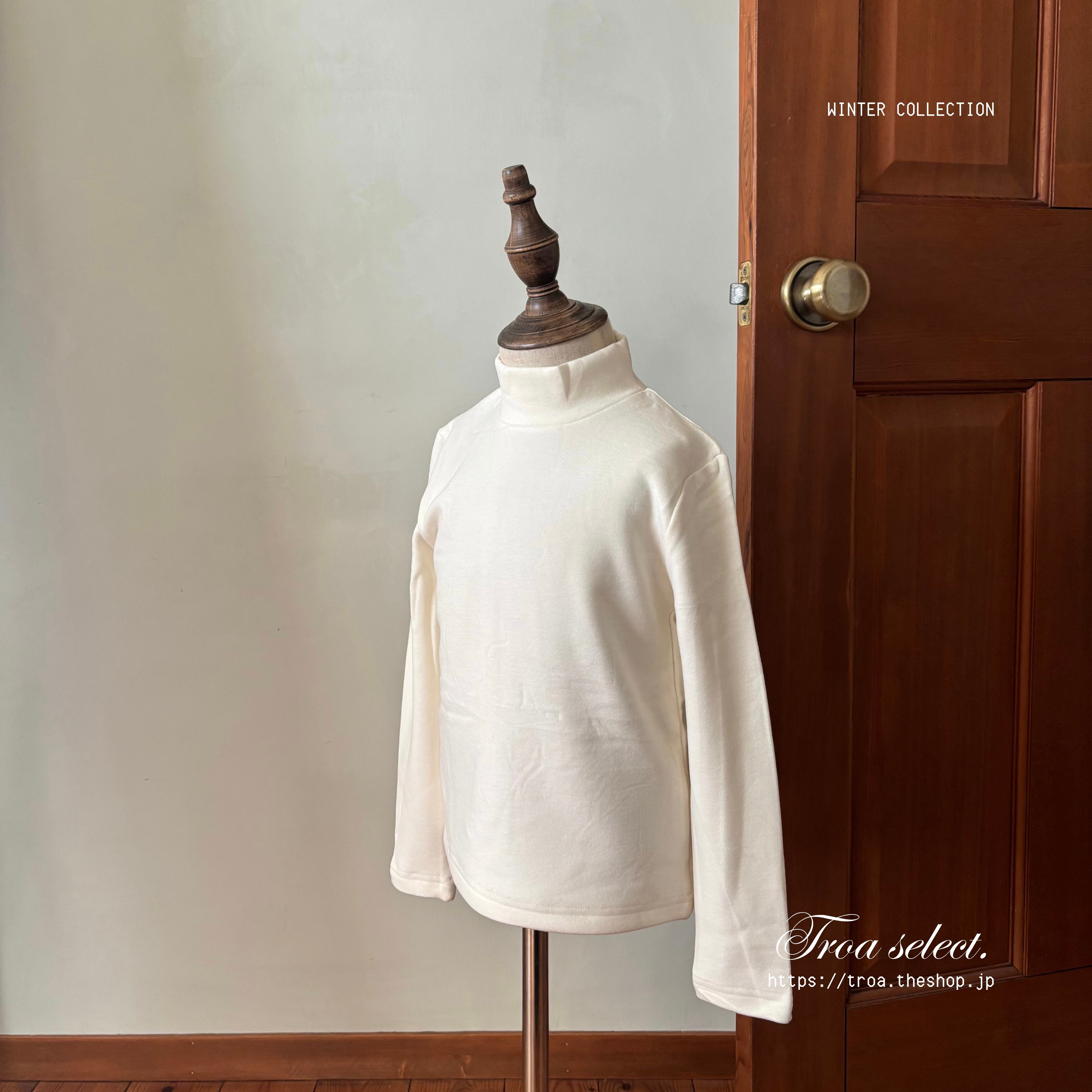 シンプルなデザインで一枚でも、ニットやトレーナーのインナーとしても活躍する、冬のワードローブに欠かせない一着。