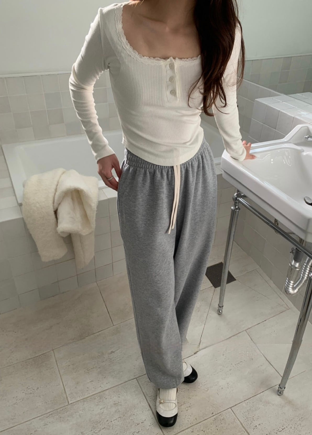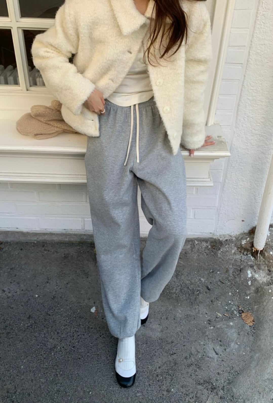 ふんわりとした裏ボア仕様で、寒い季節も心地よく過ごせるあたたかいジョガーパンツ。