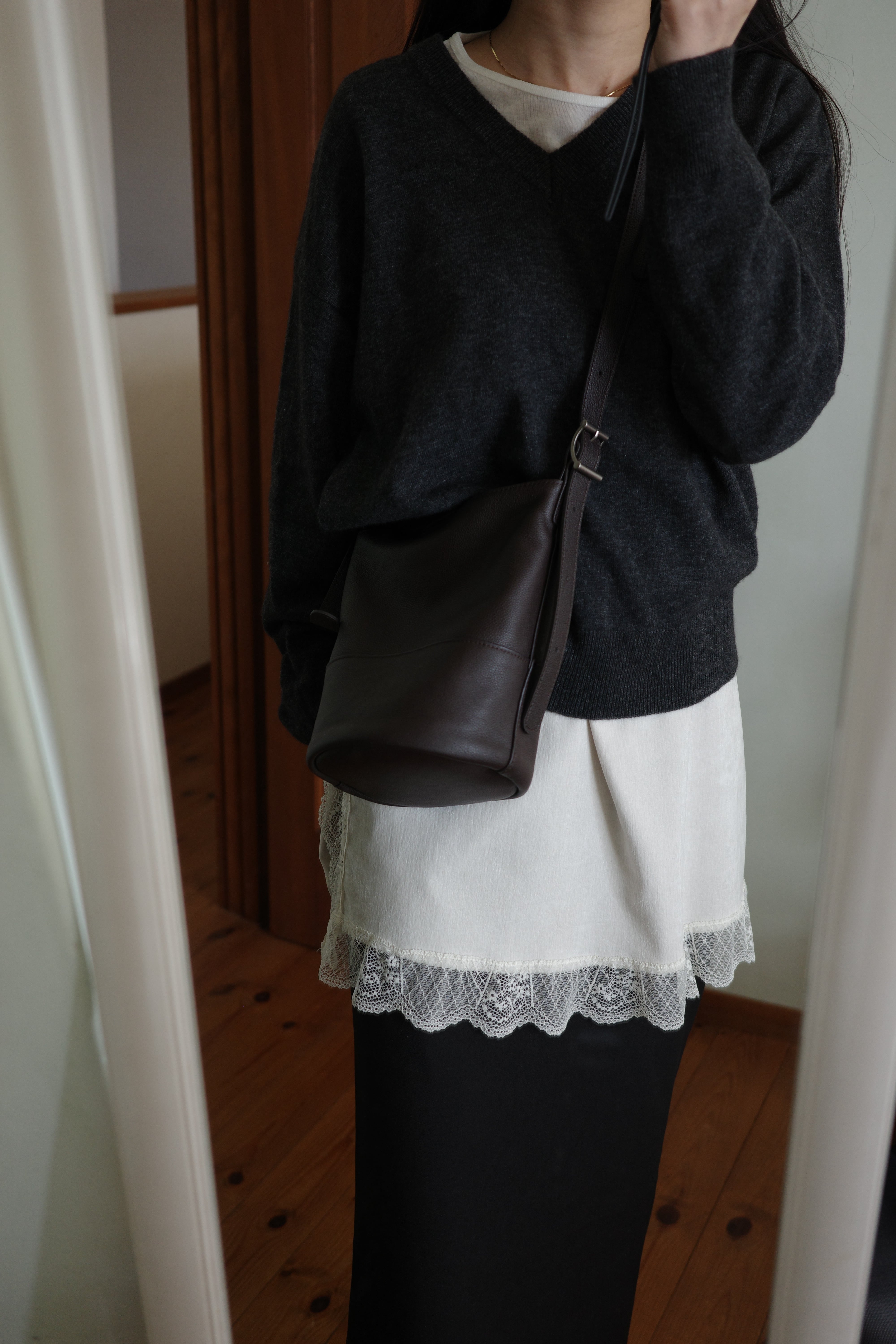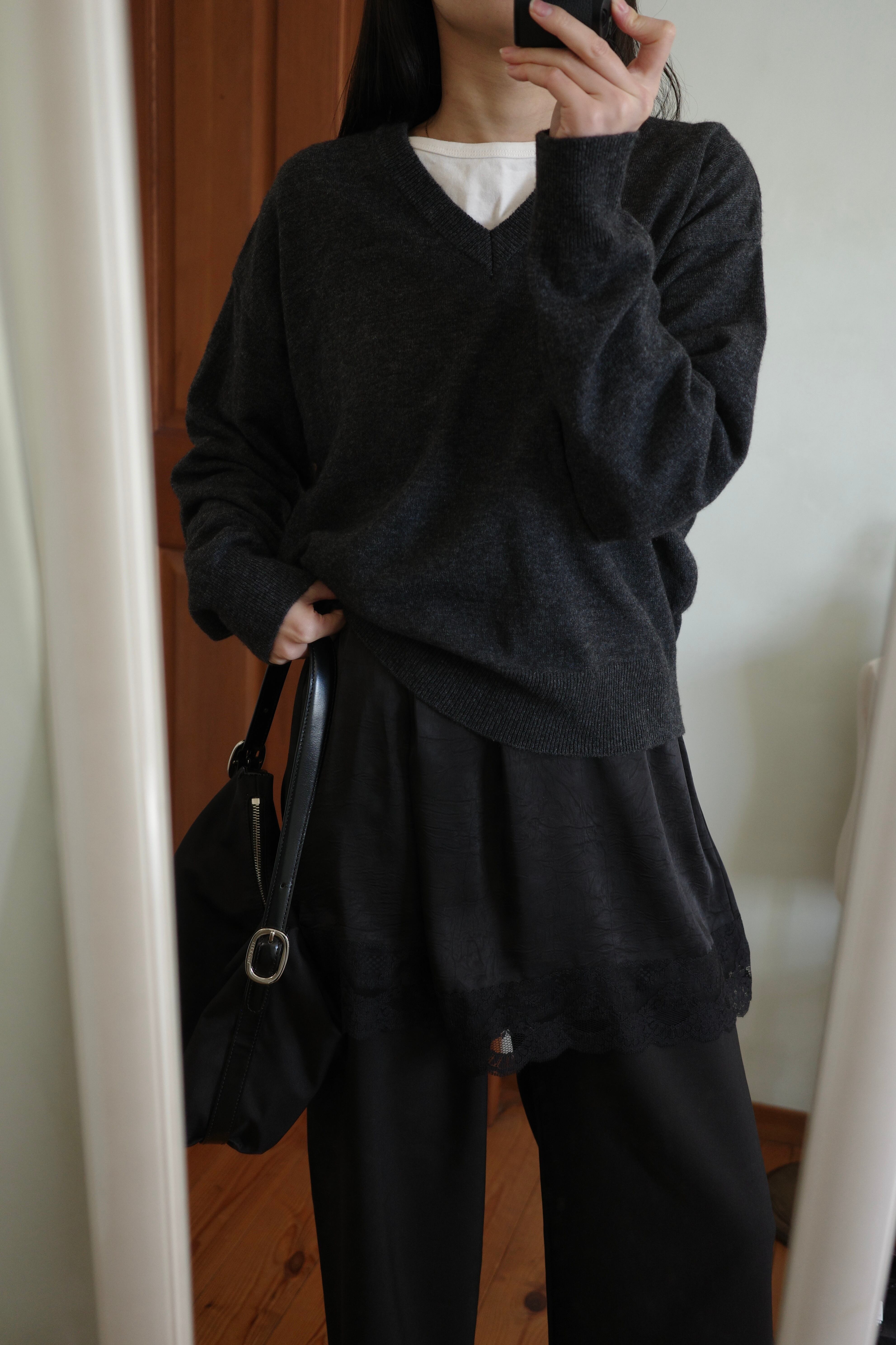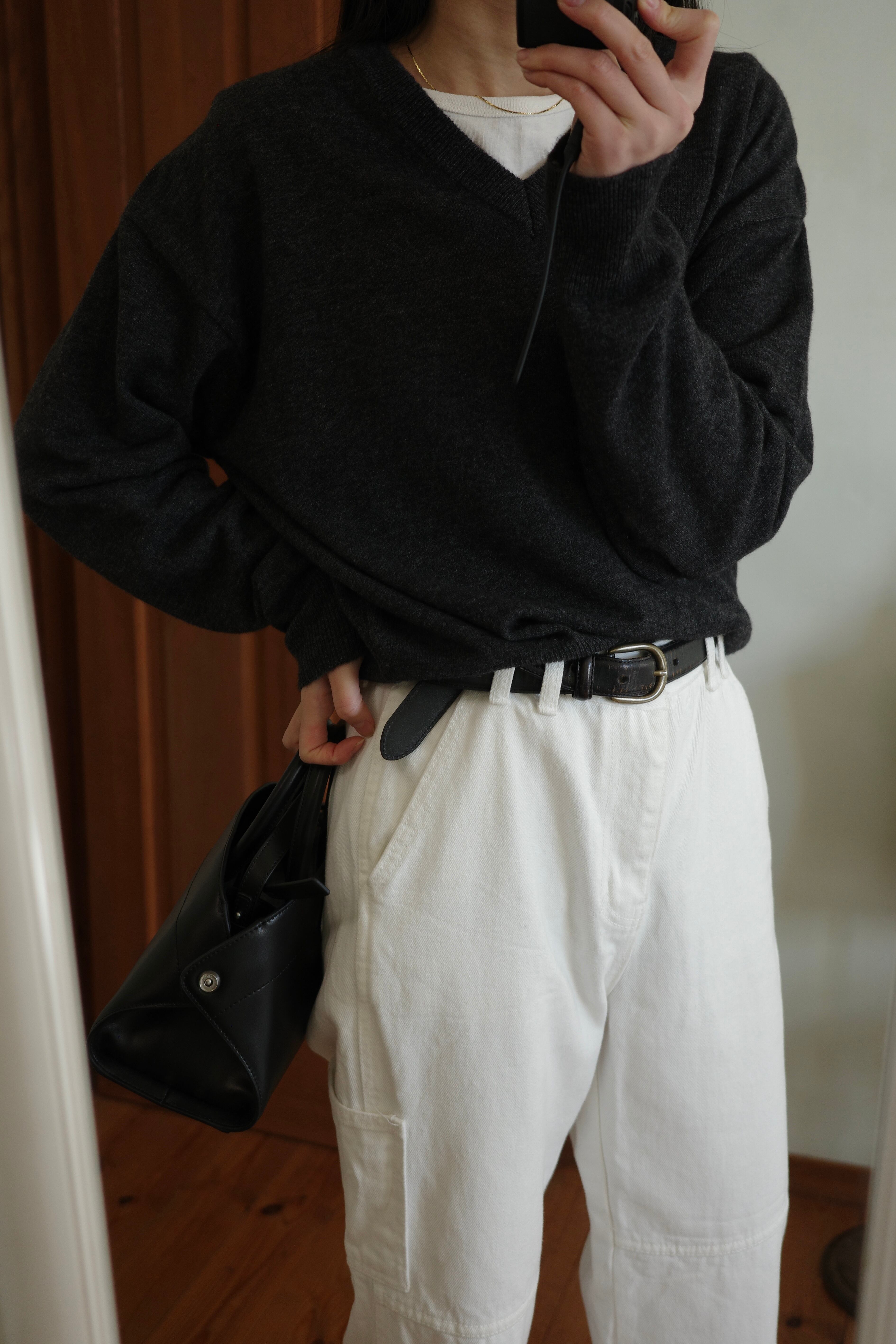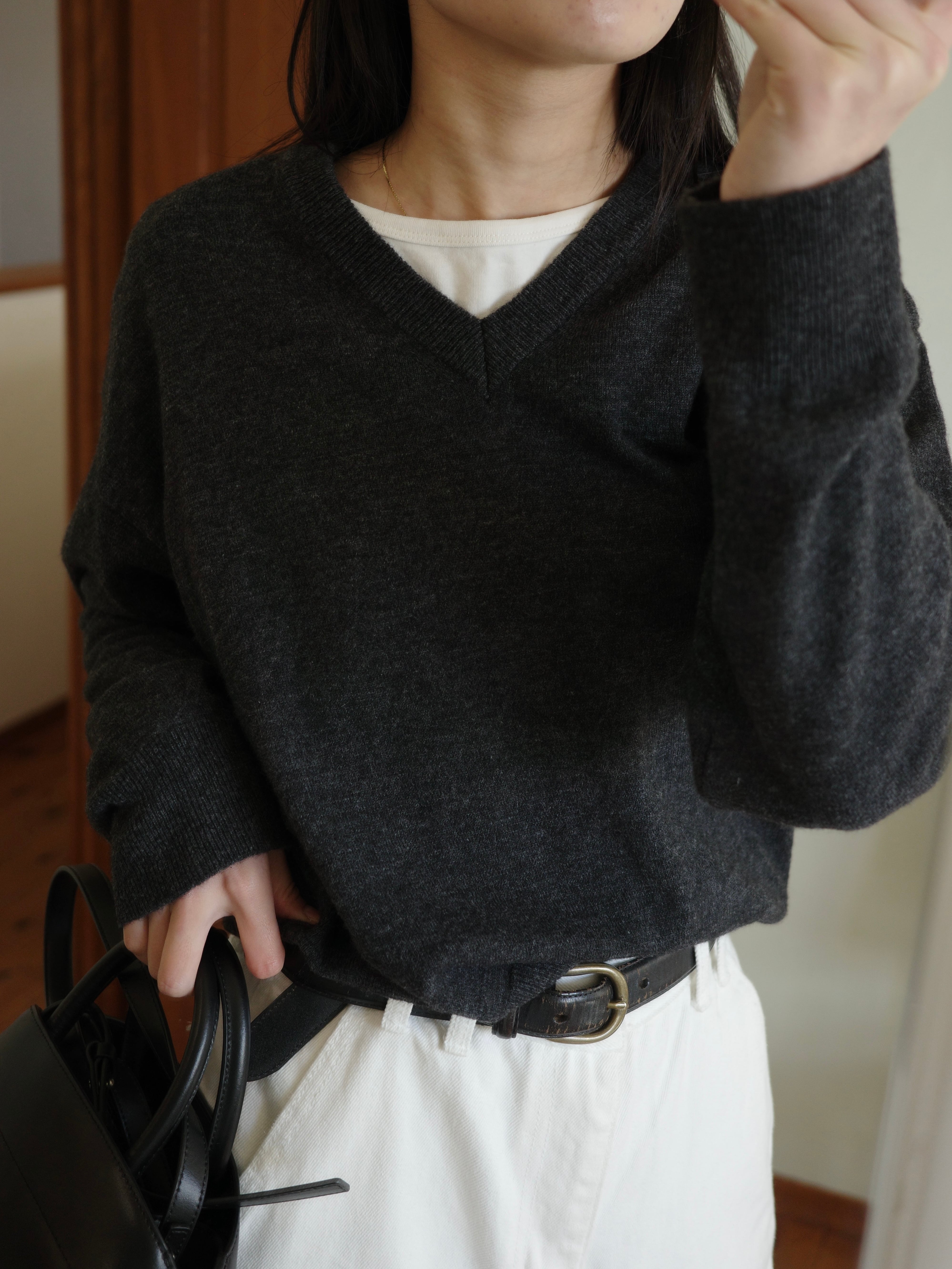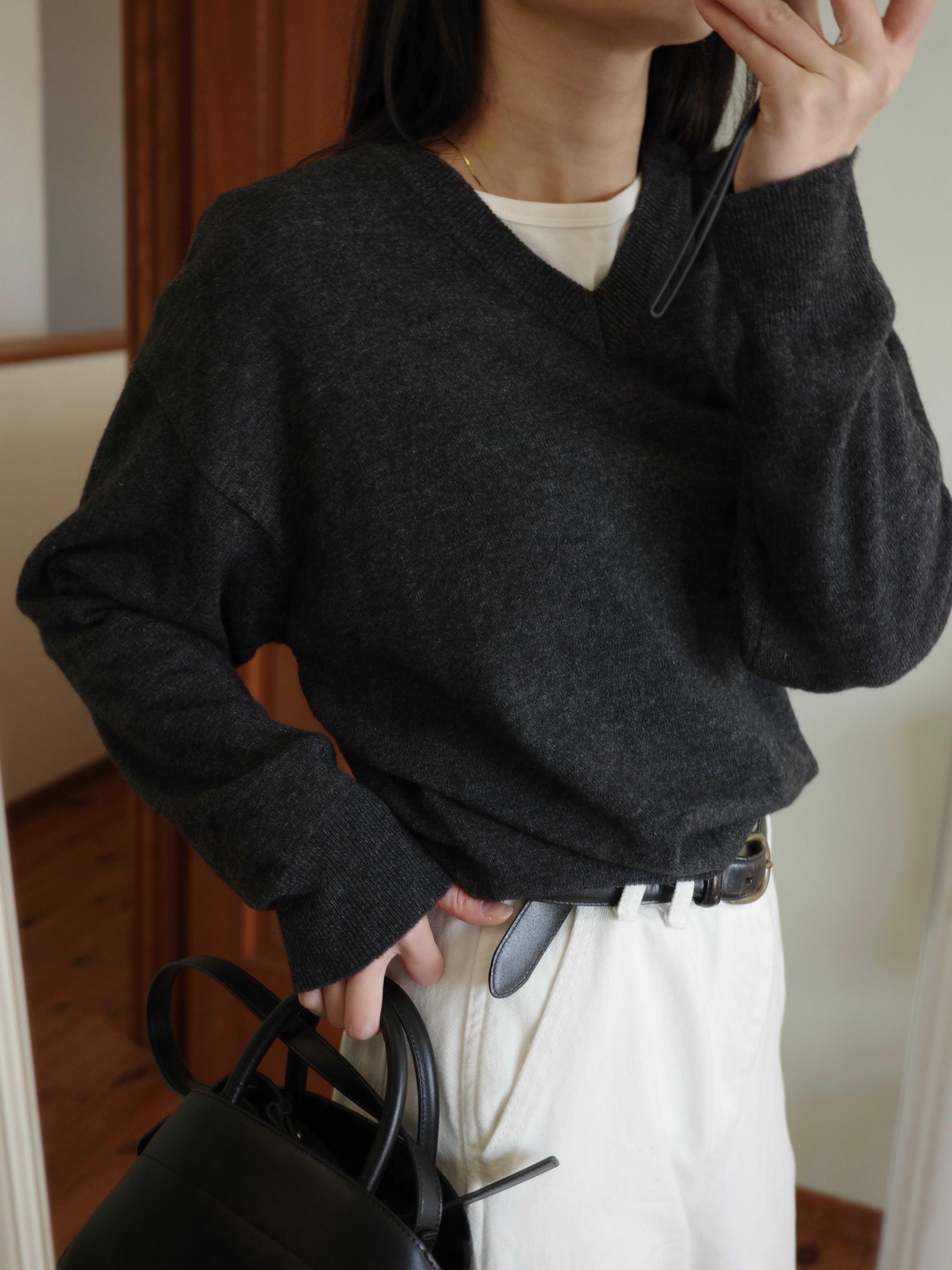 落ち感のあるドロップショルダーと自然に体を包み込むボーイフィットシルエットで、リラックス感がありながらも上品な印象に。