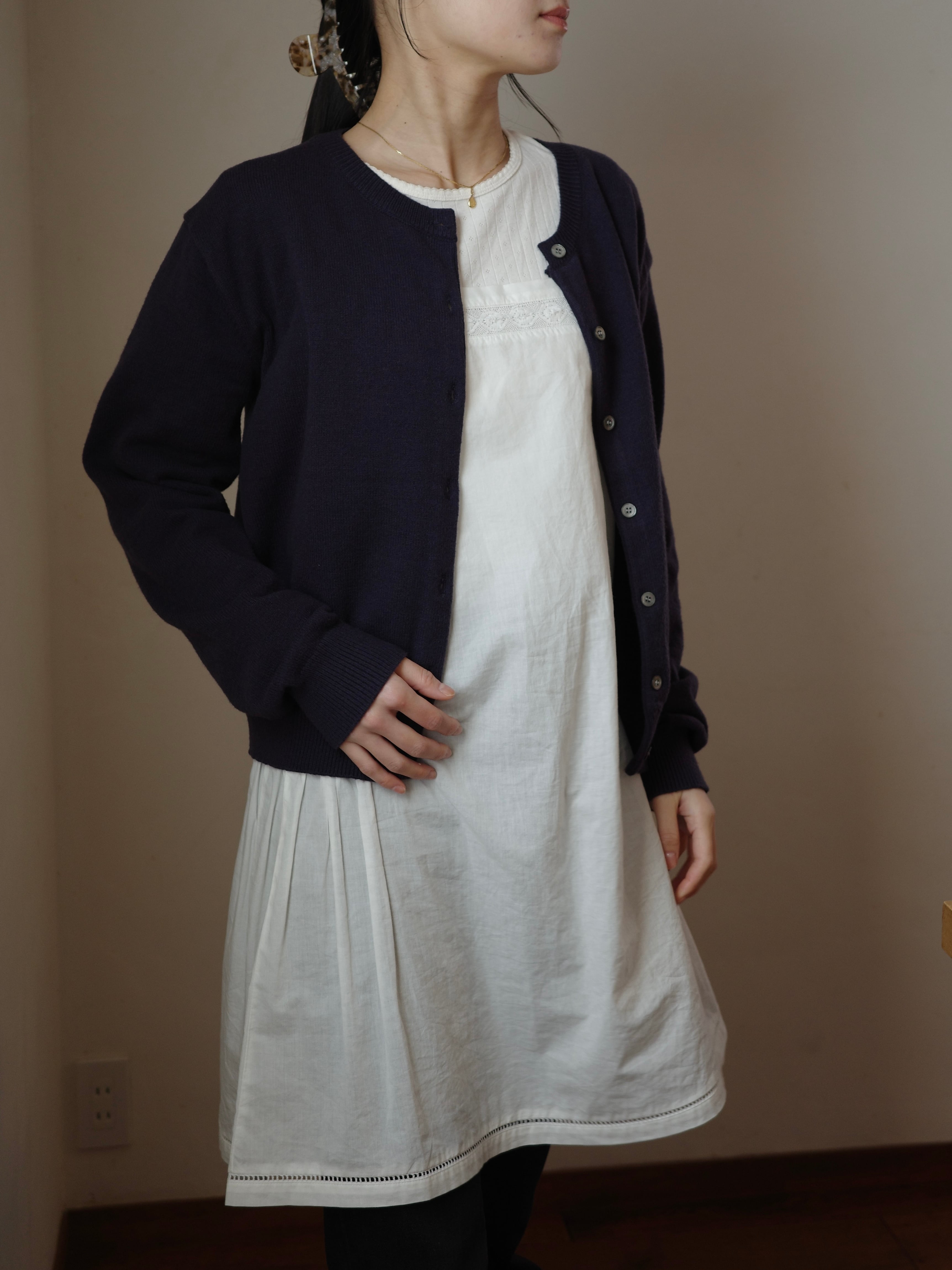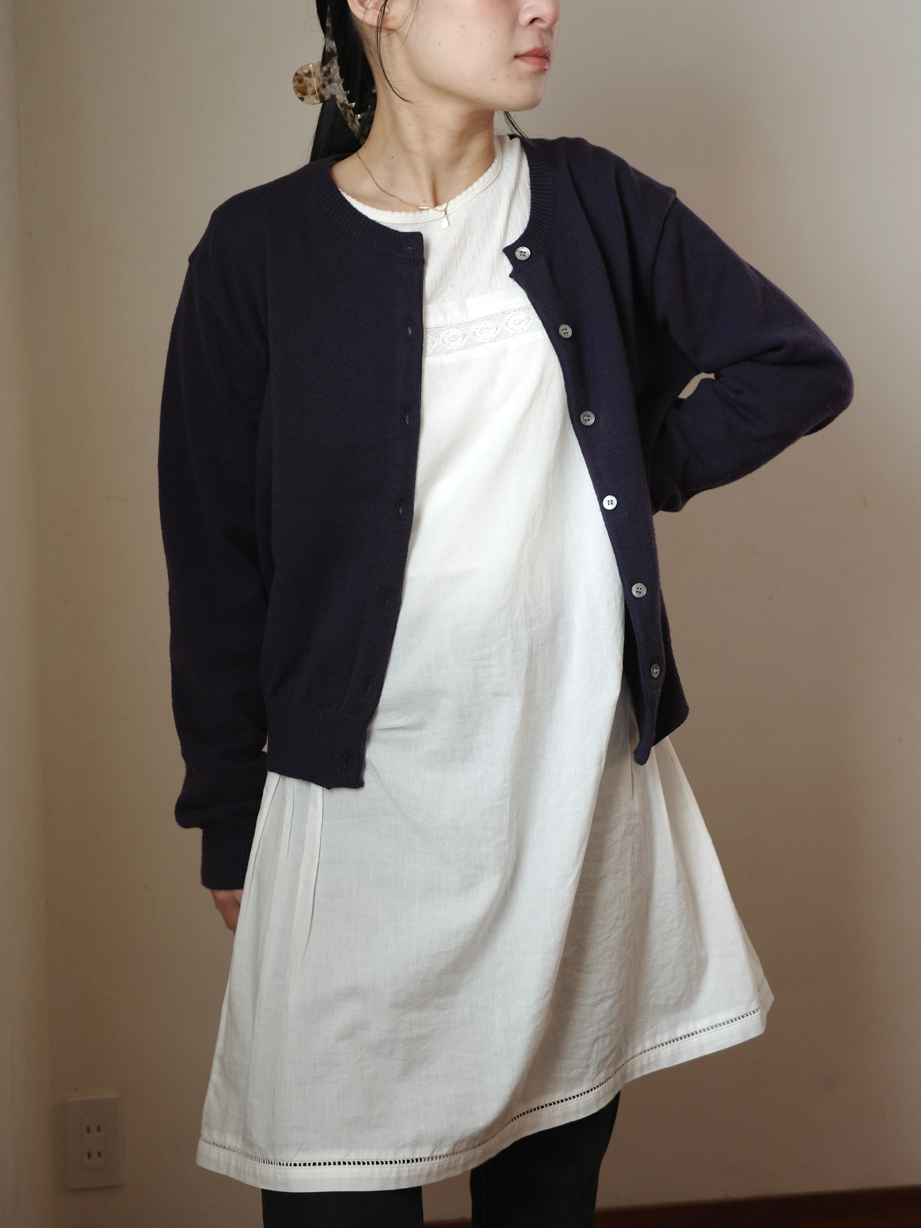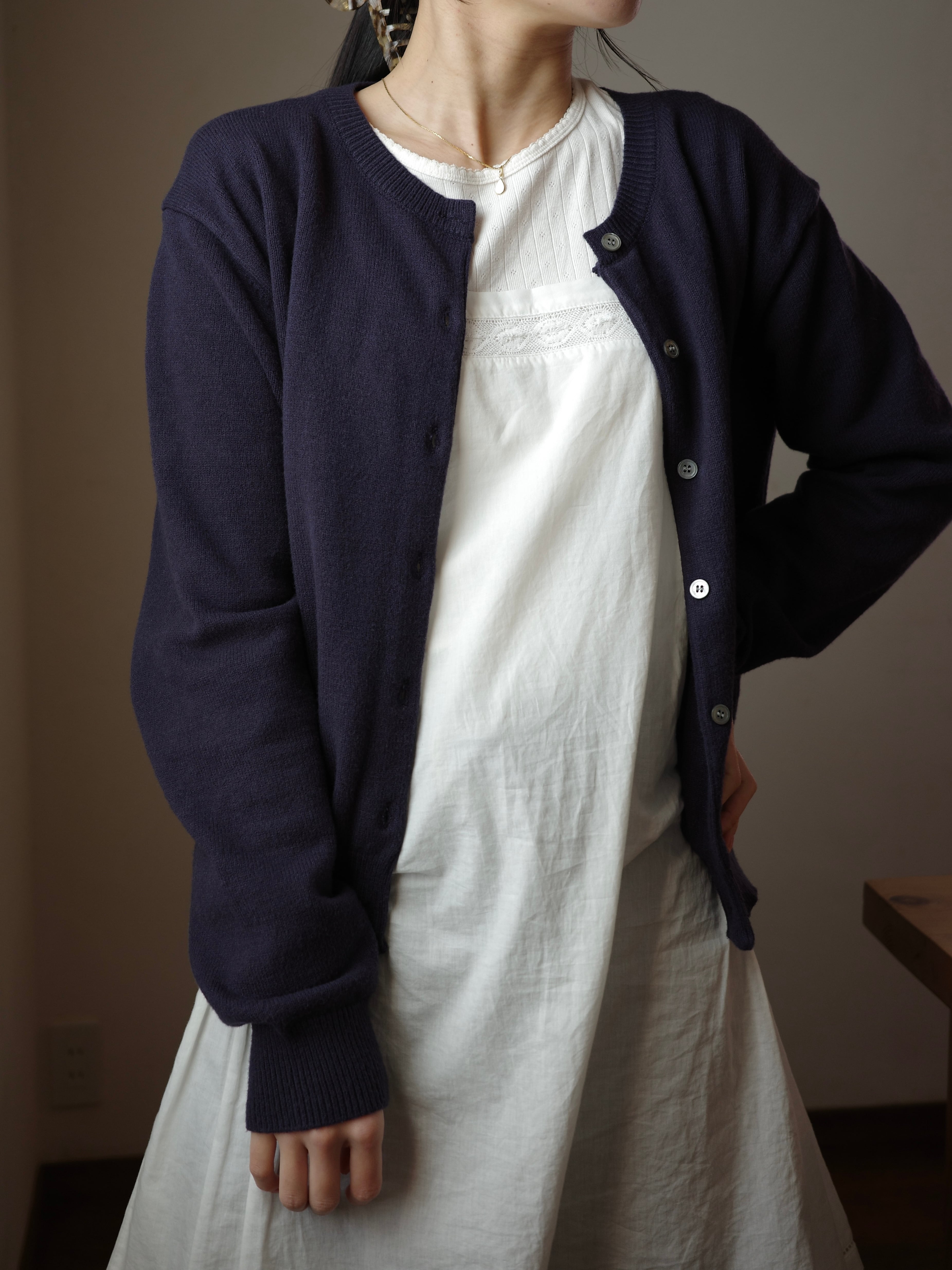 ベーシックなウール素材のカーディガン。