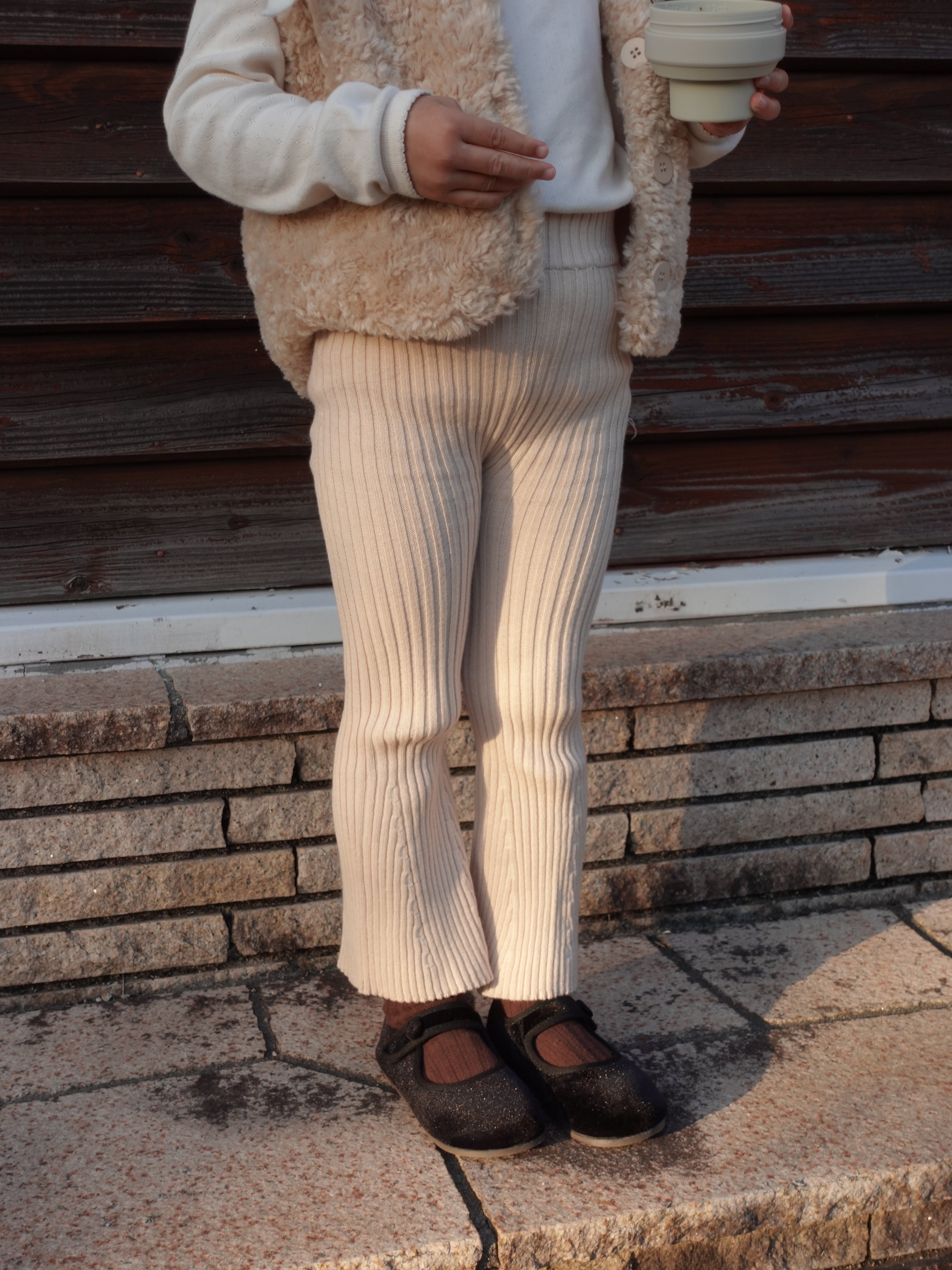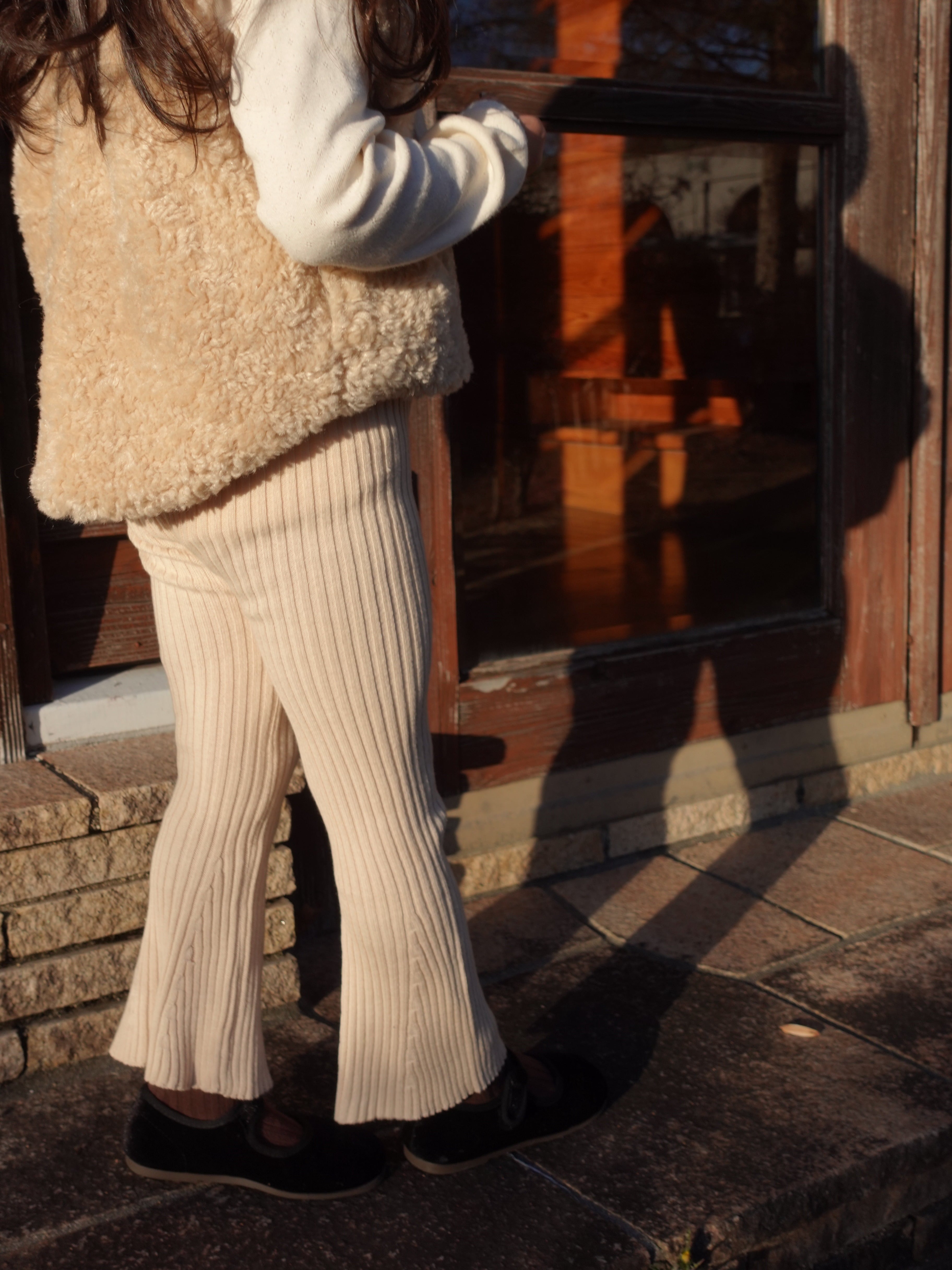 柔らかなリブ編みが心地よい、フレアシルエットのニットパンツ。
