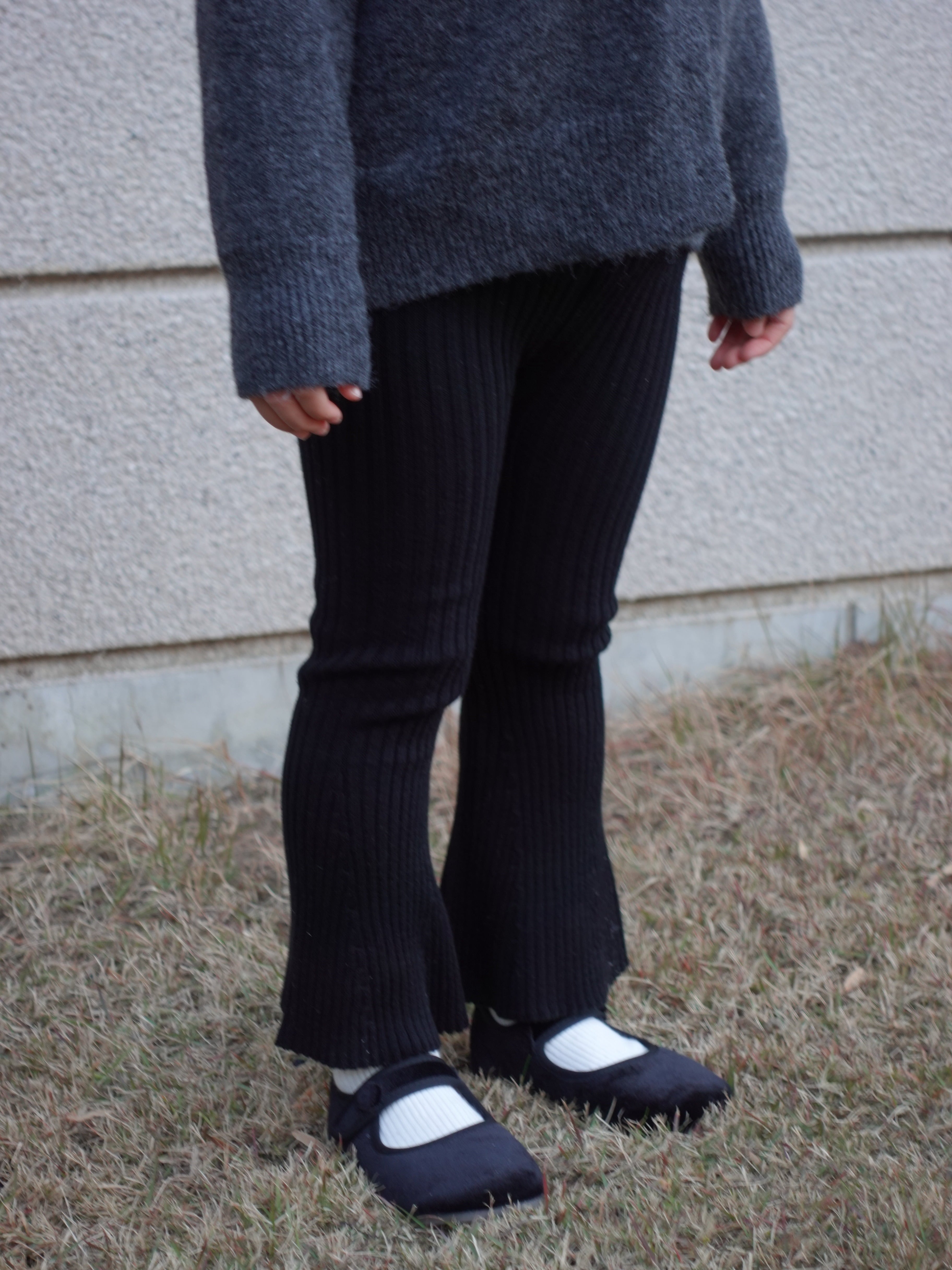 柔らかなリブ編みが心地よい、フレアシルエットのニットパンツ。