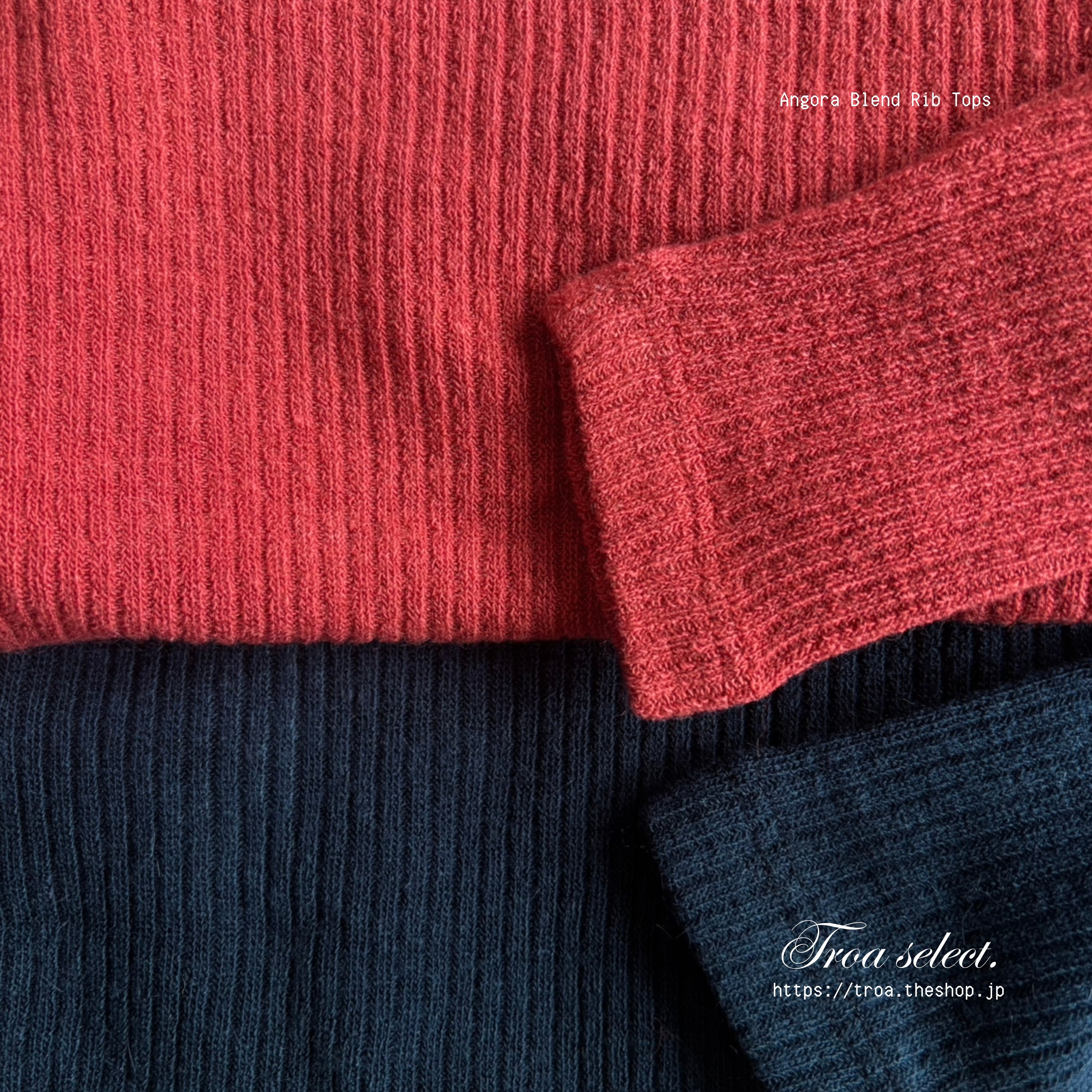 アンゴラ混ならではの、ふんわりと柔らかな風合いが魅力のリブトップス。