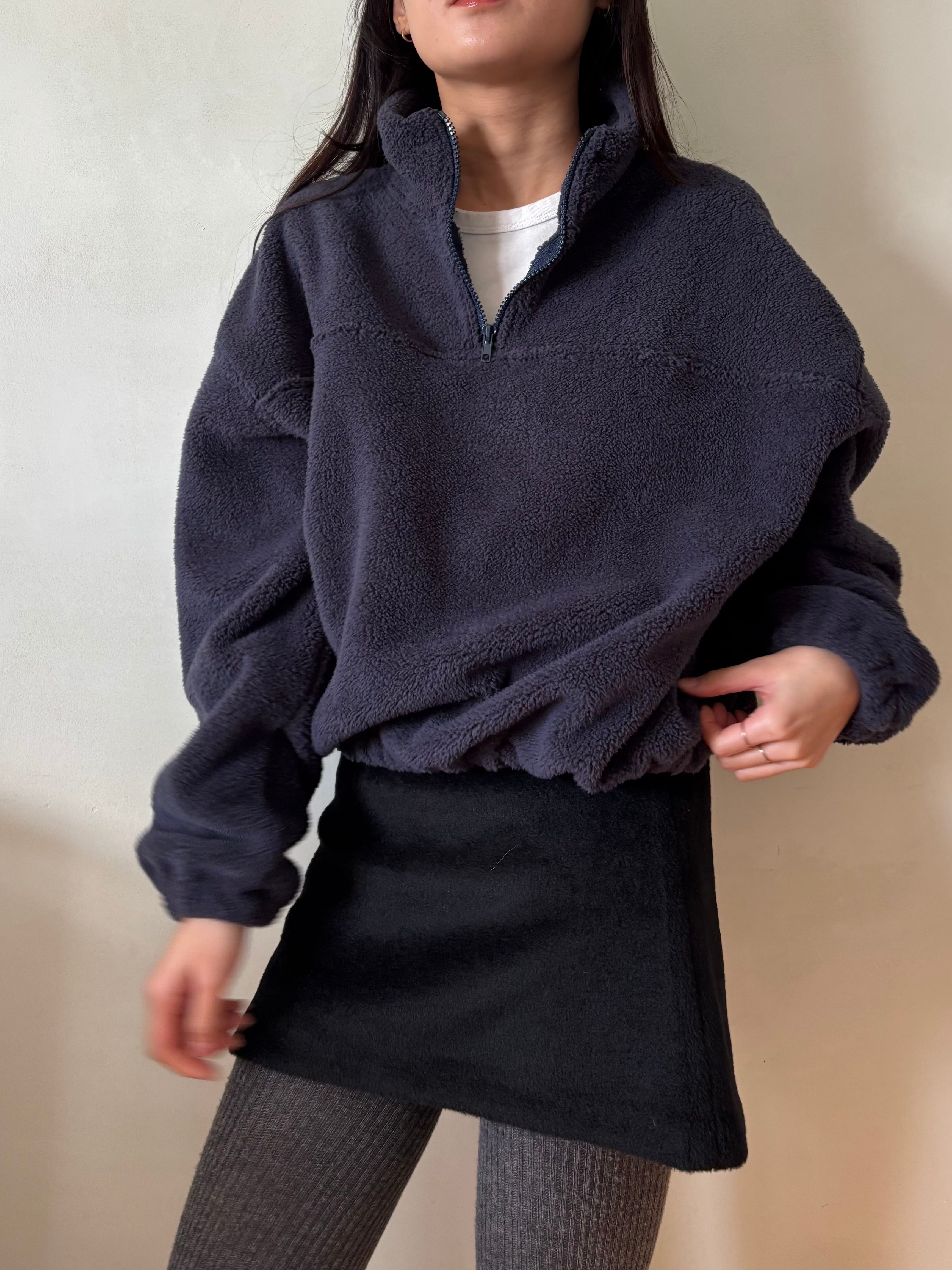 もこもこの質感が可愛いテディフリースのハーフジップトップス。