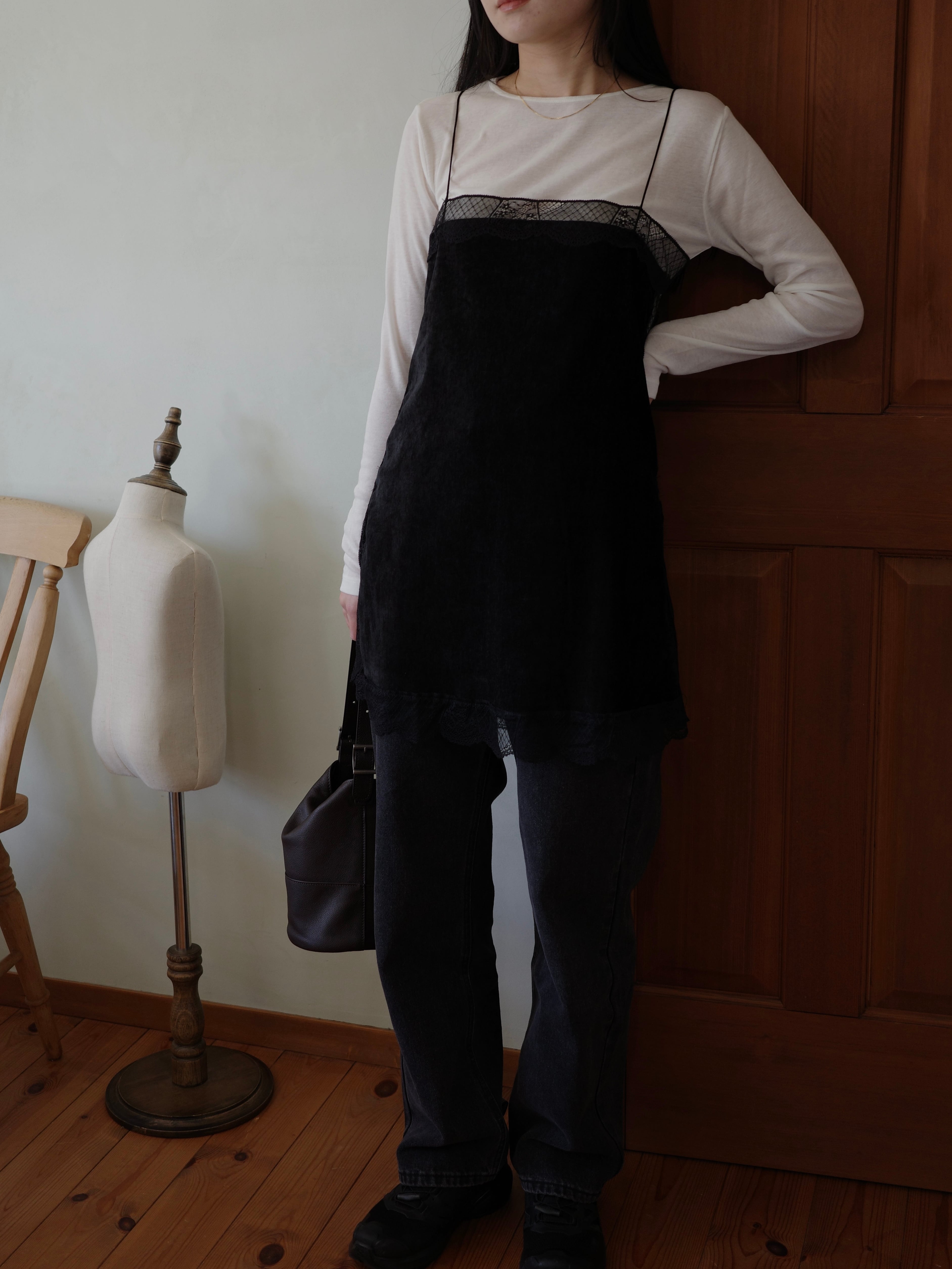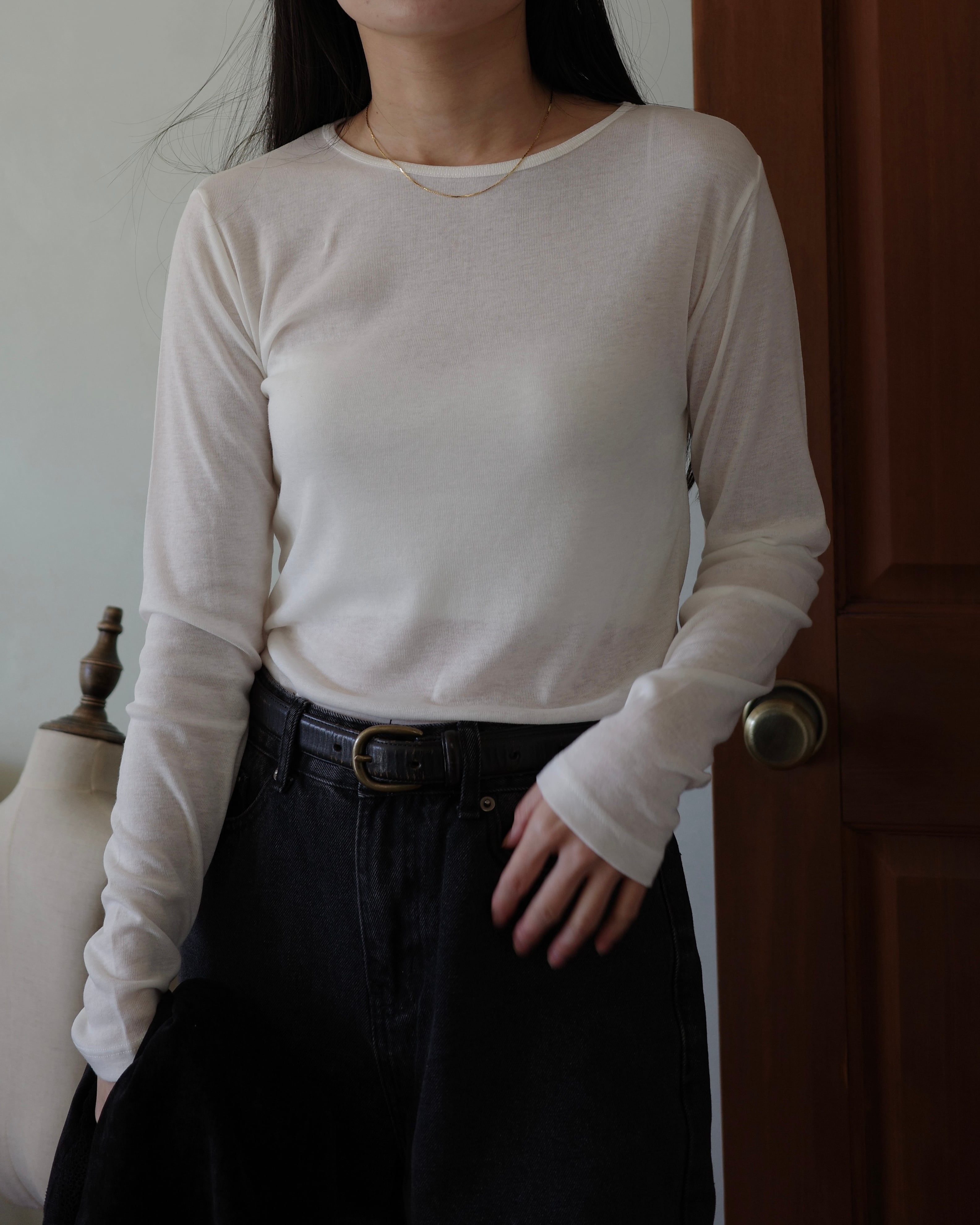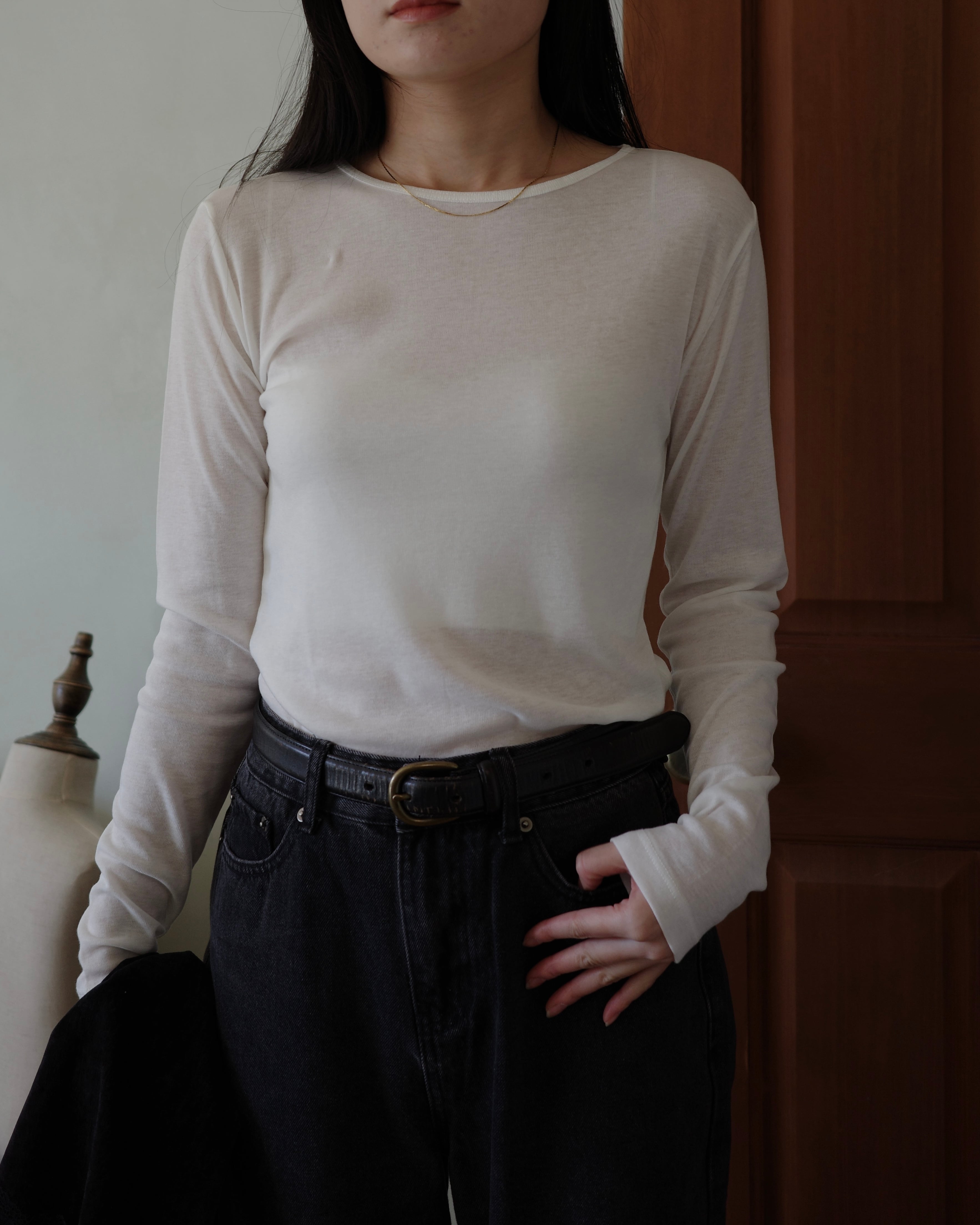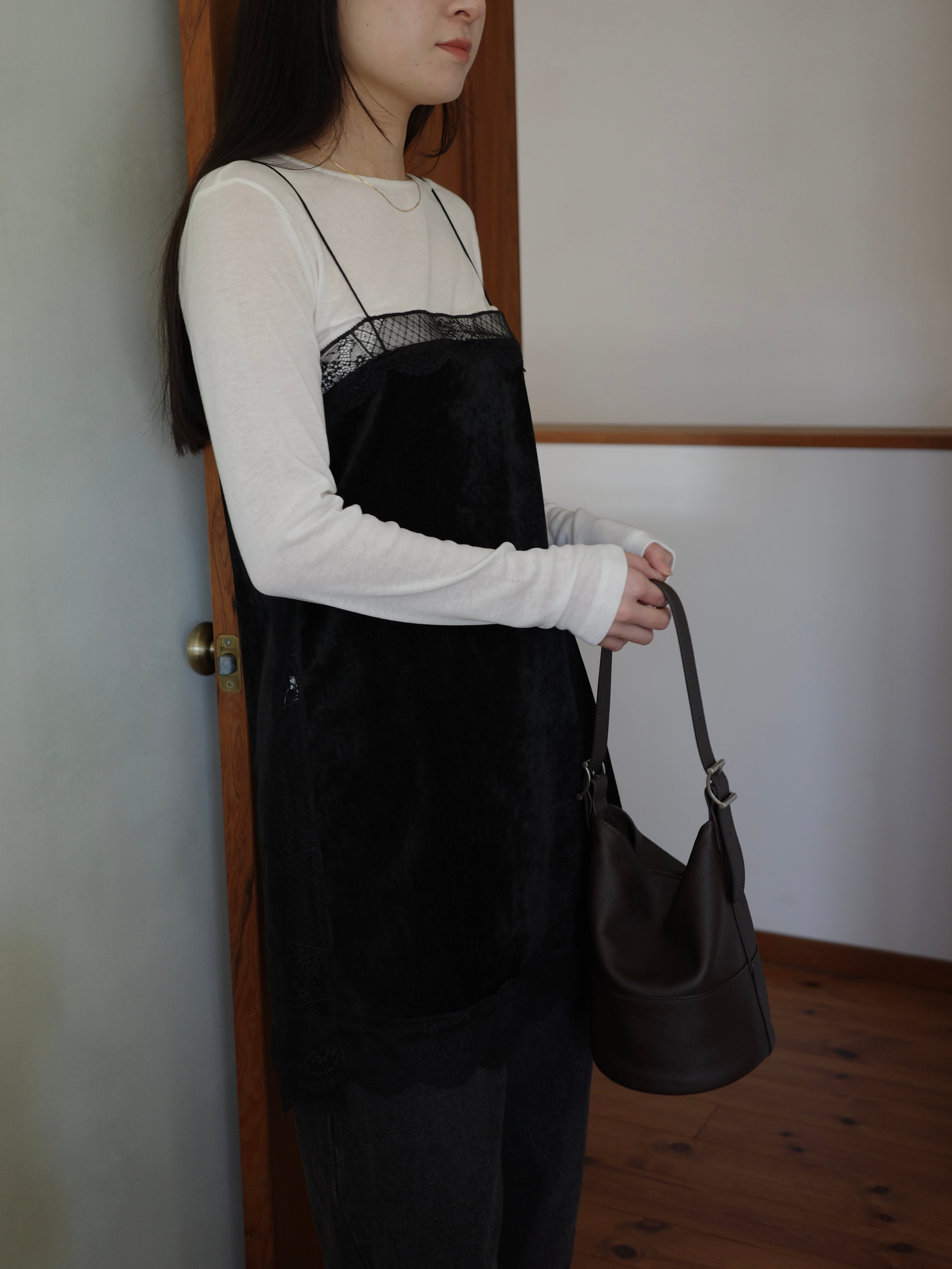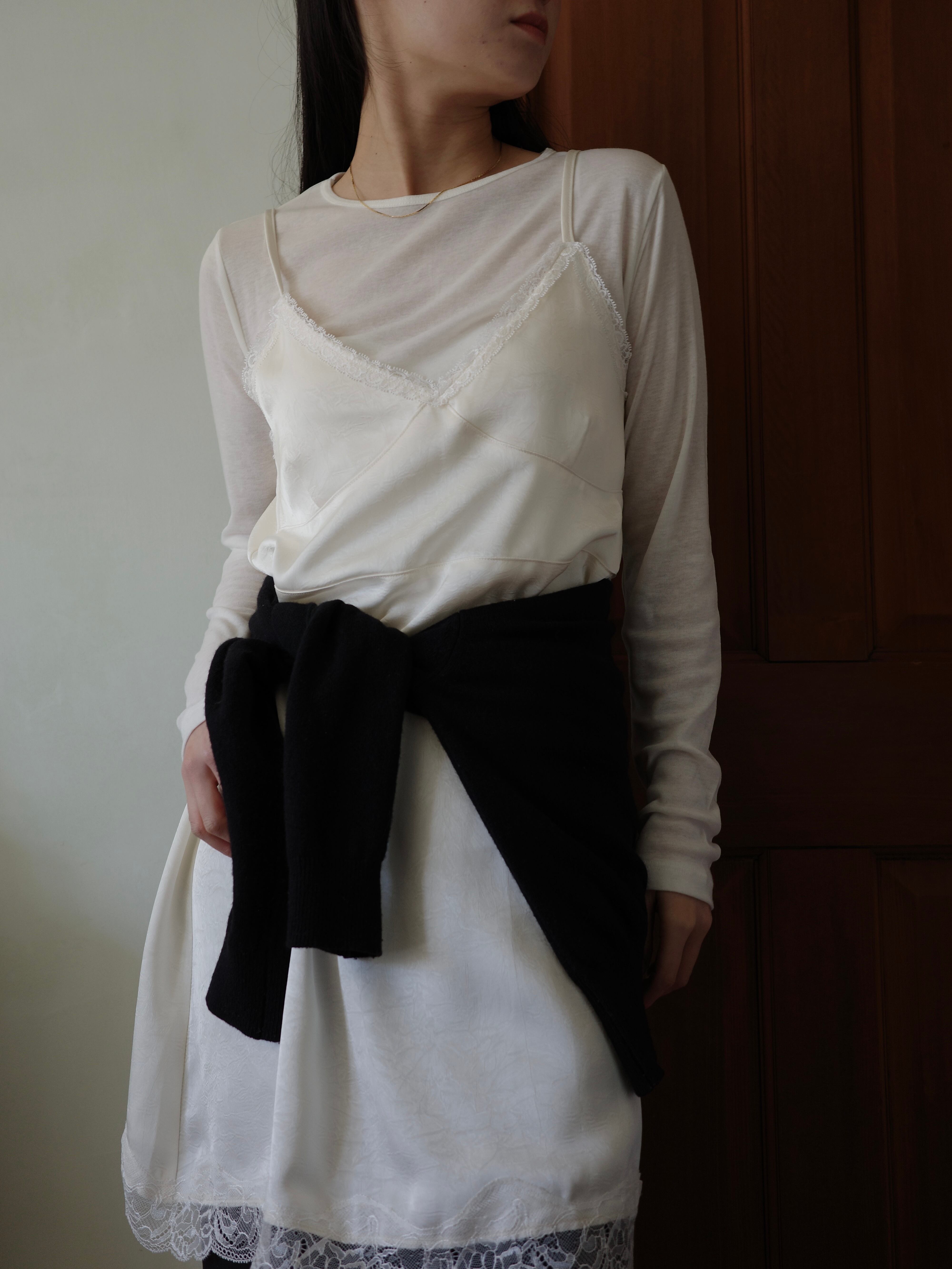 ニットやカーディガンの下に、レイヤードスタイルに万能に使えて、ベーシックなTシャツより抜け感がでておすすめです。