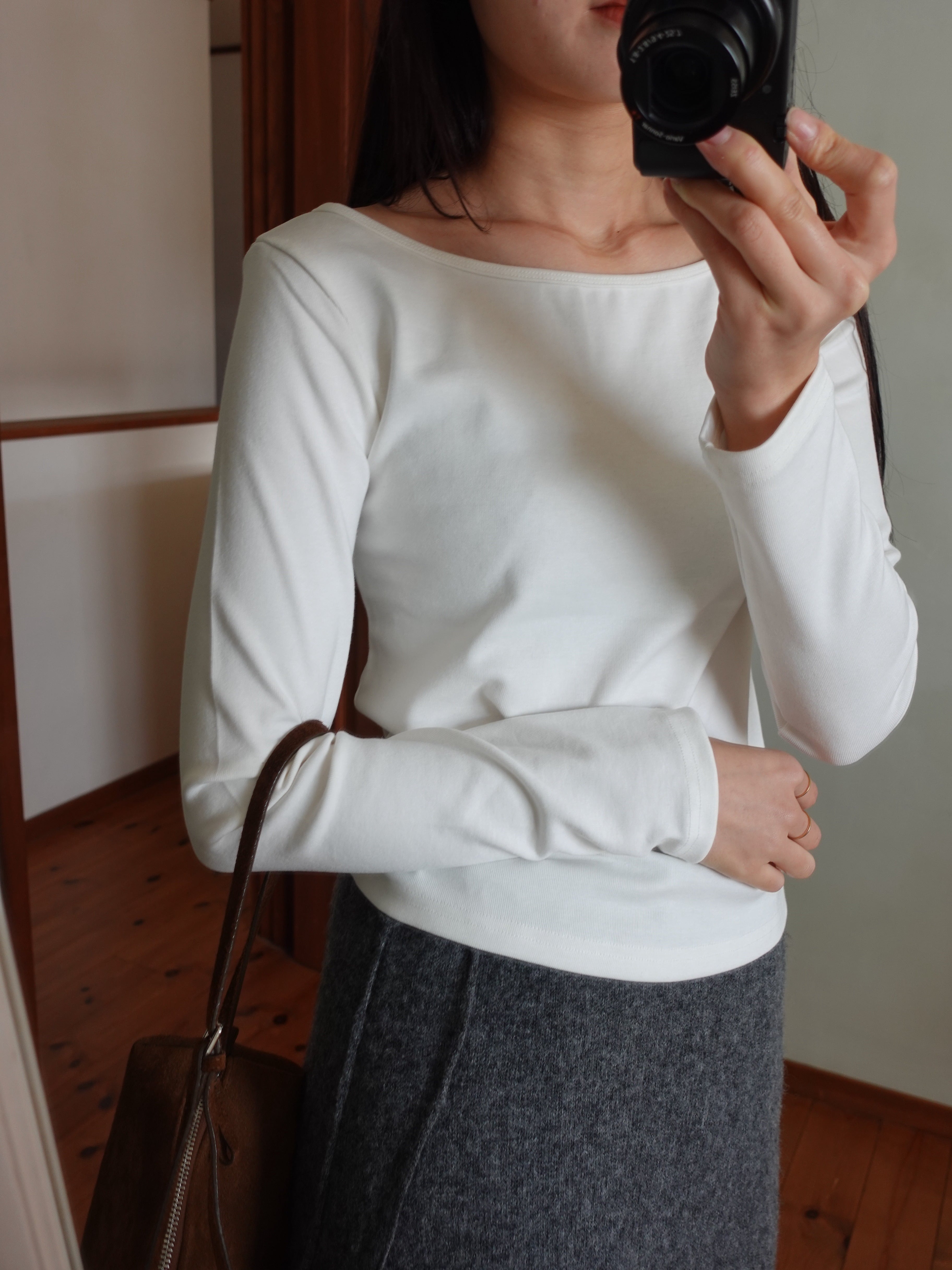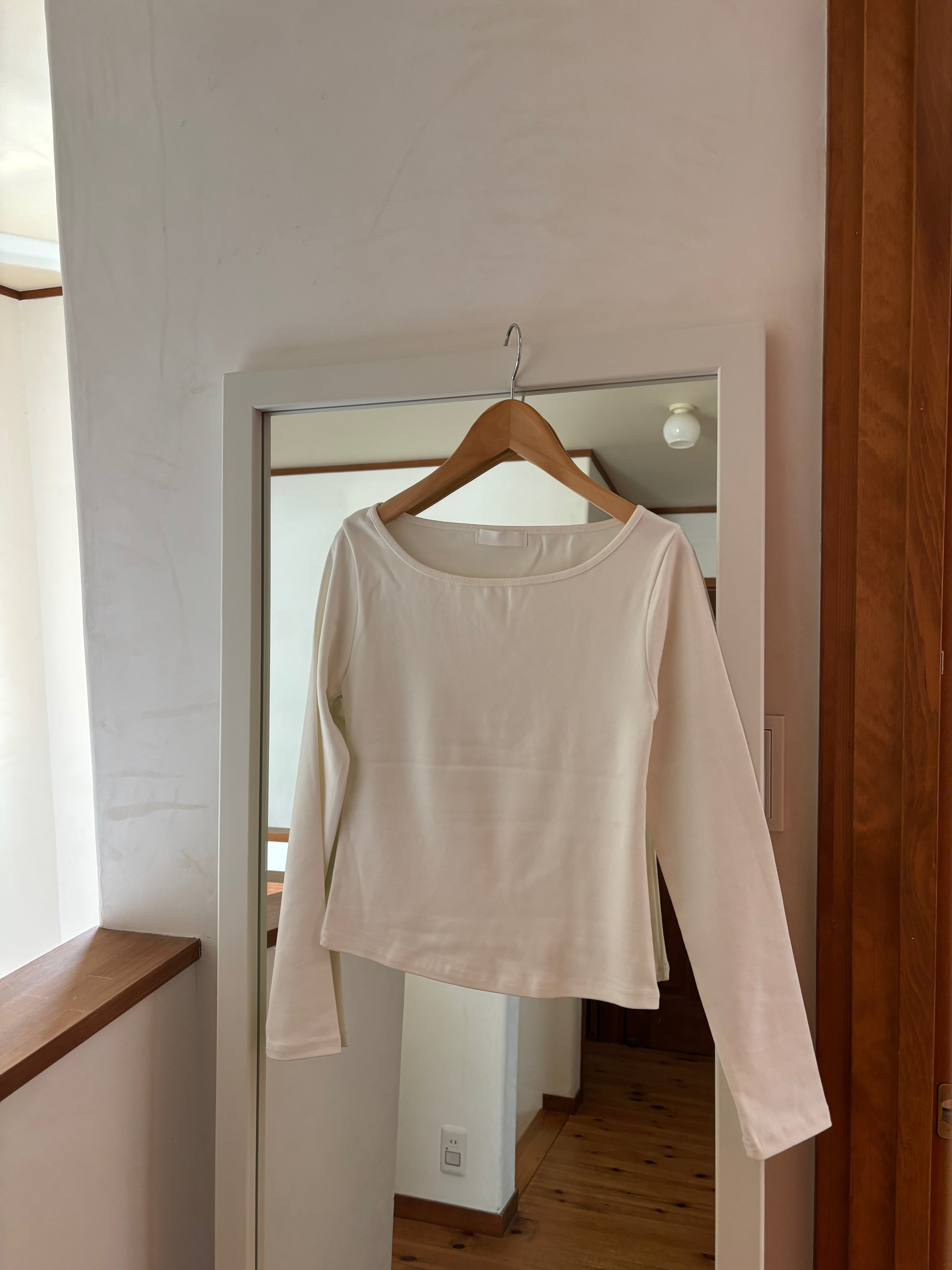 デコルテを綺麗に見せてくれる、上品なラインのボートネックT。
