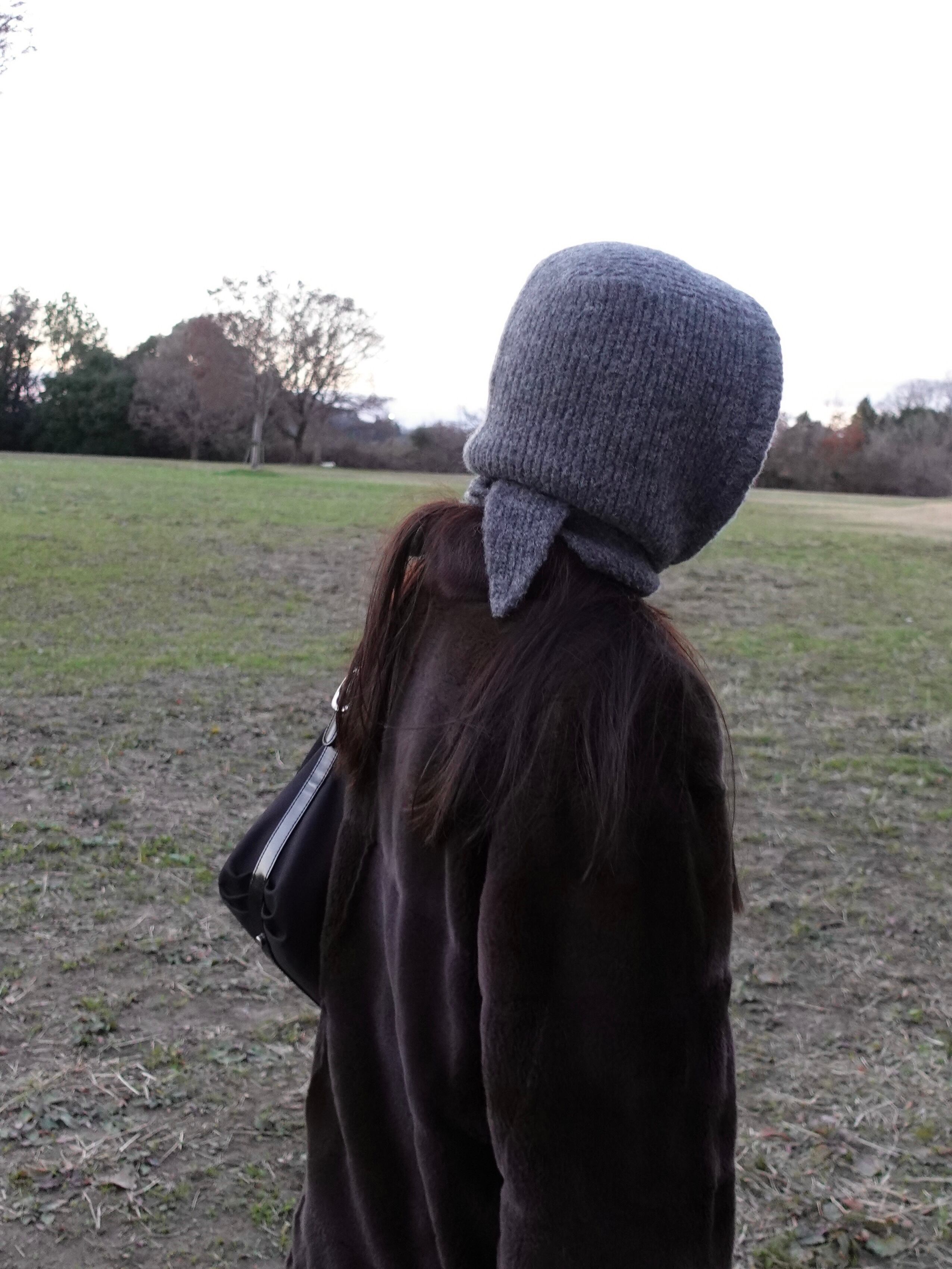 頭から首元までしっかり包み込む、ニット素材のフードバラクラバ。