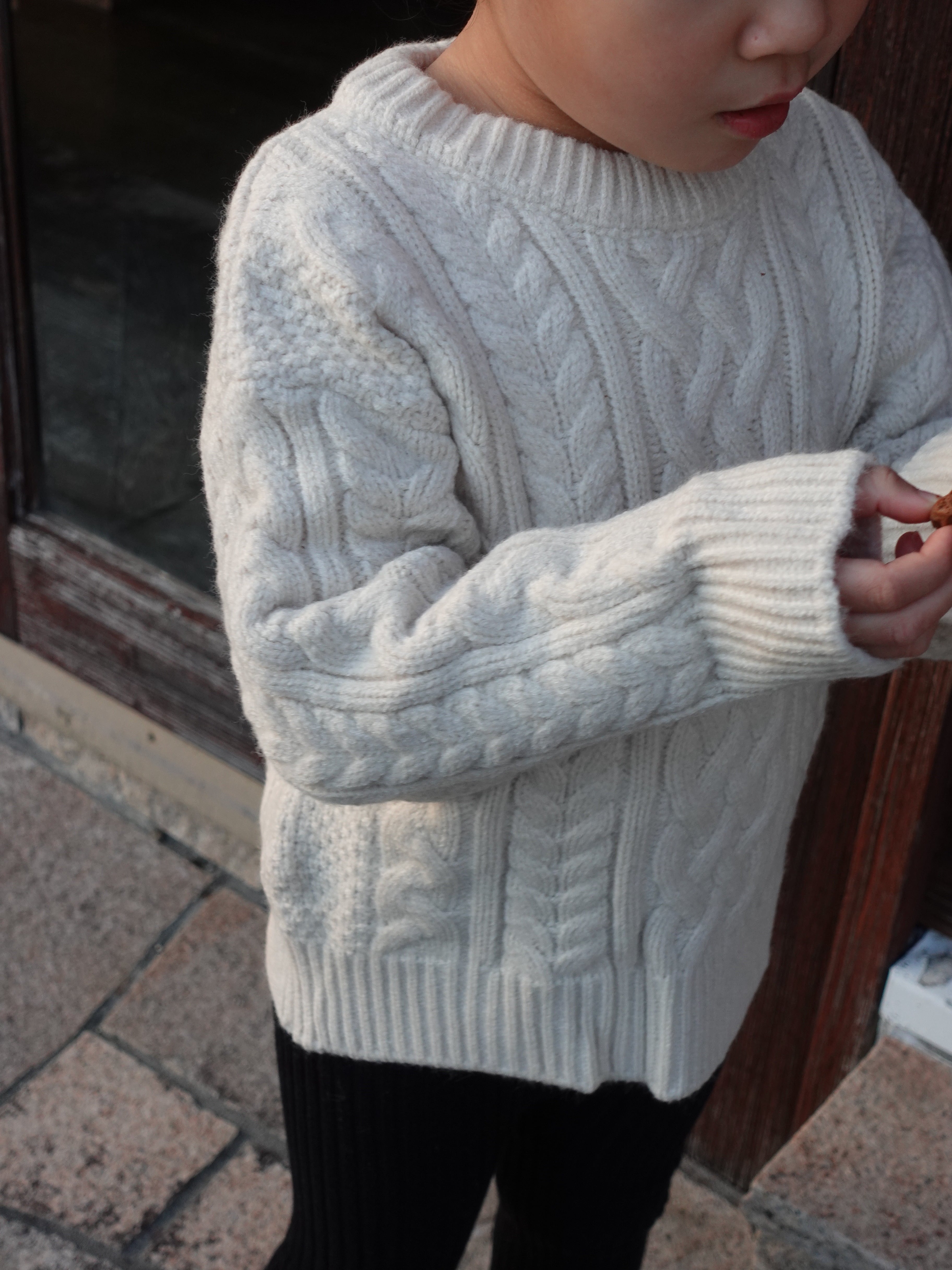 立体感のあるケーブル編みが目を惹く、オーバーサイズシルエットのルーズニット。