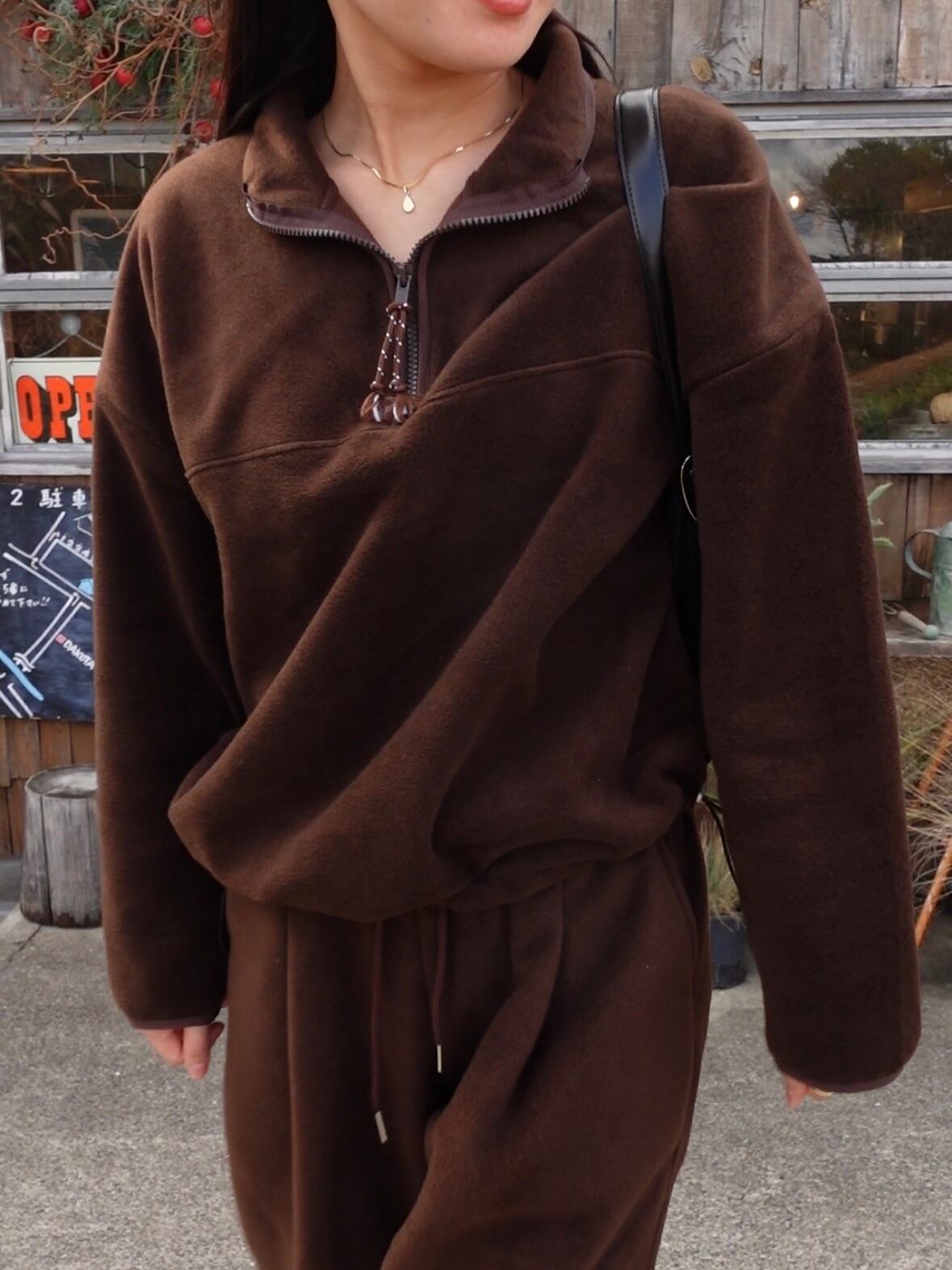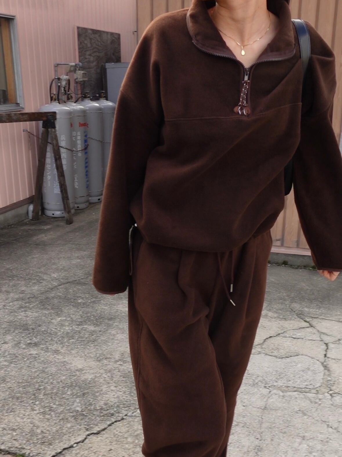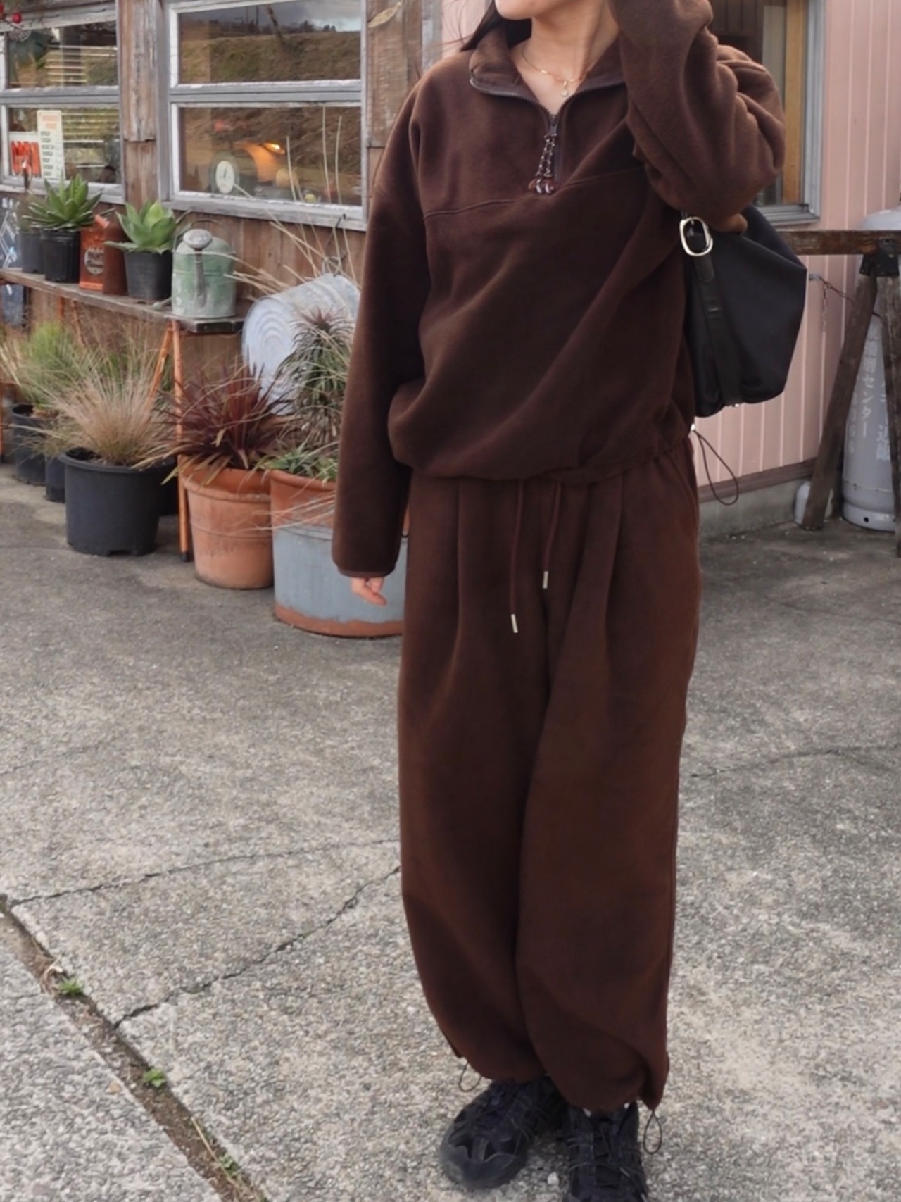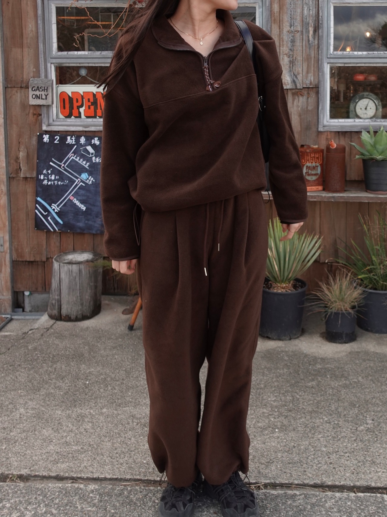 軽量で暖かいフリース素材のプルオーバーとボトム。上下は別売りで、セットアップとしてはもちろん、それぞれ単品でも着回しやすく、デイリーに活躍します。