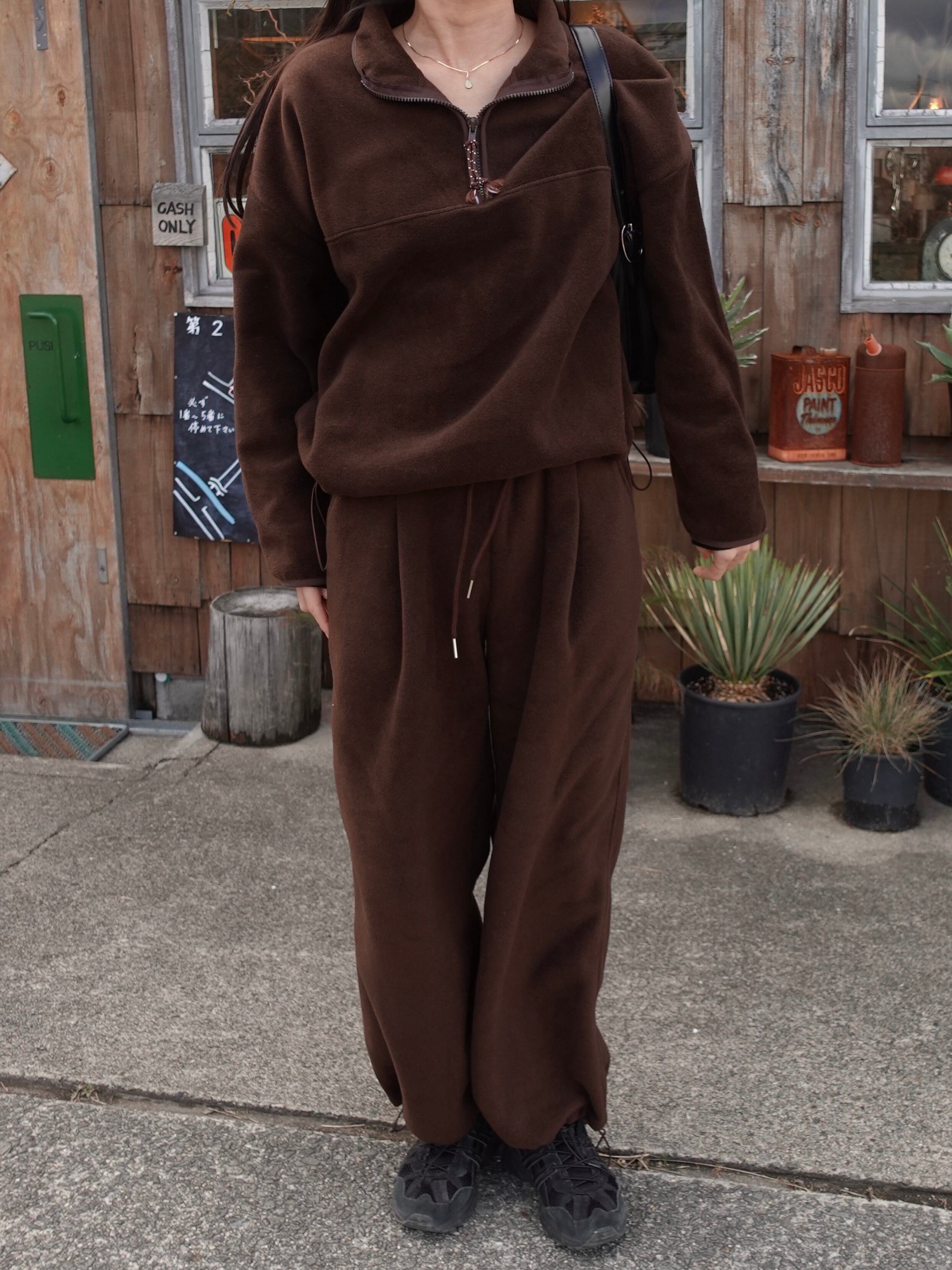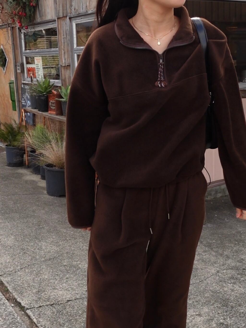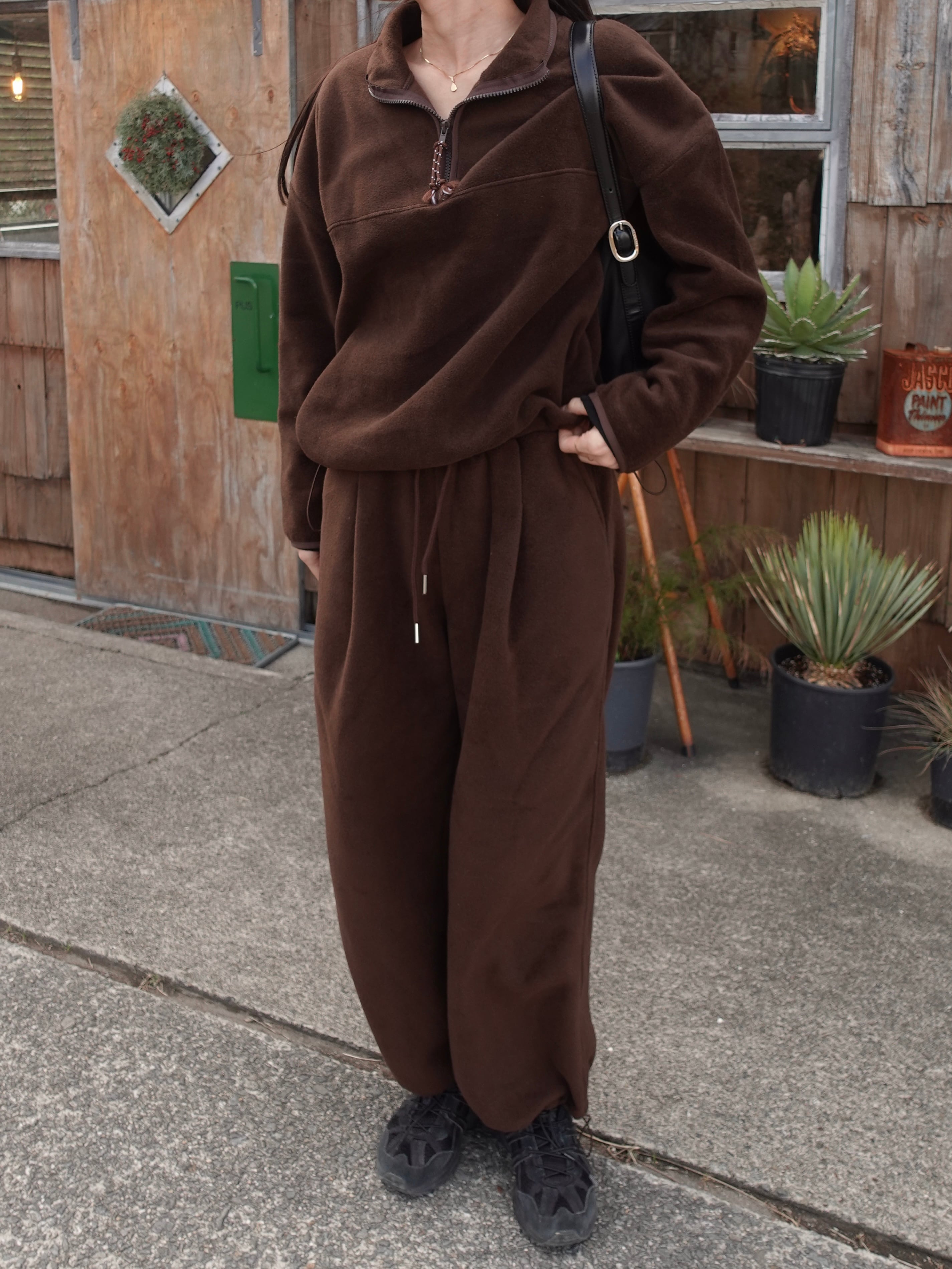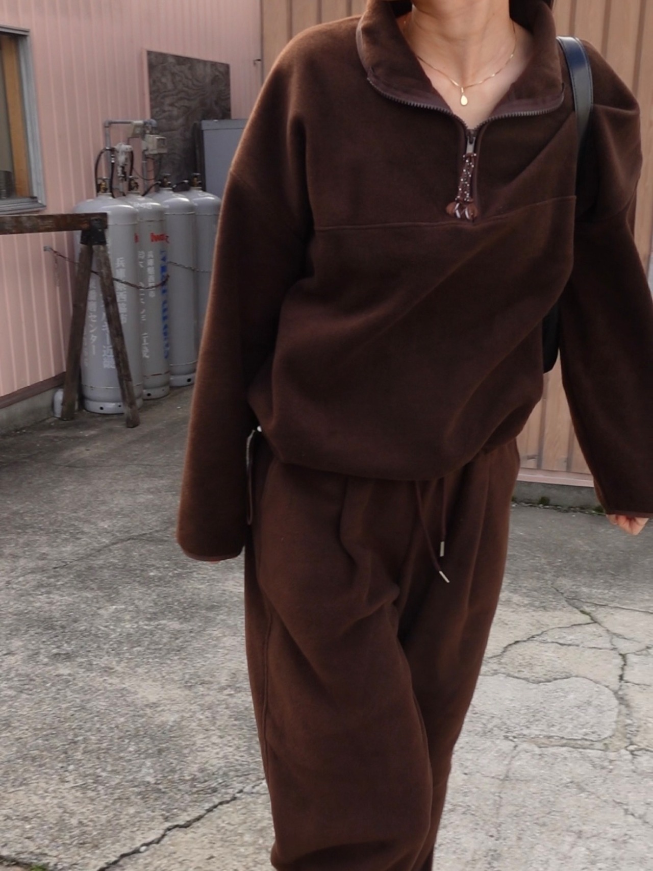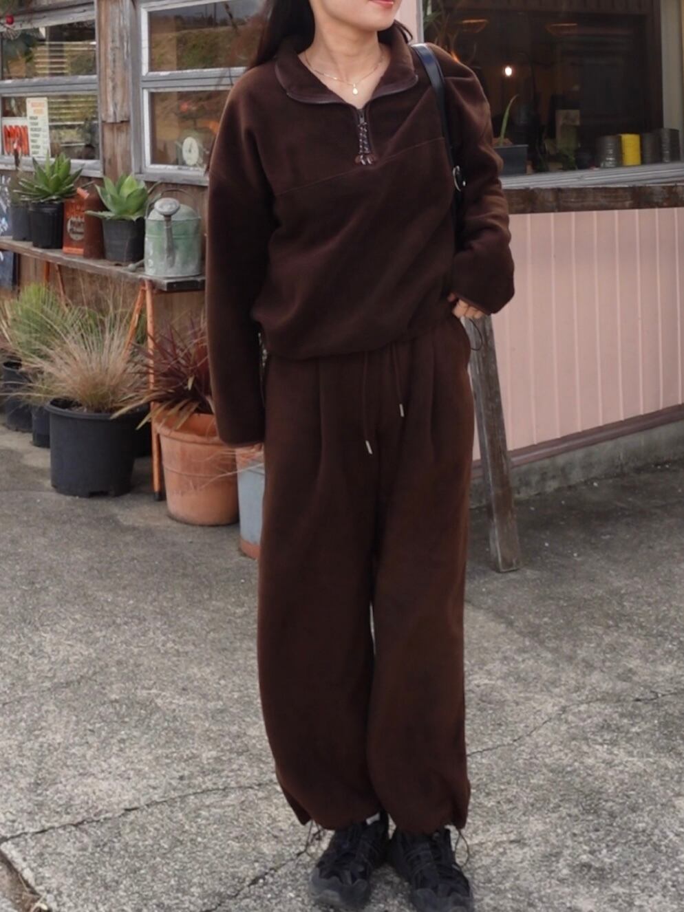 軽量で暖かいフリース素材のプルオーバーとボトム。上下は別売りで、セットアップとしてはもちろん、それぞれ単品でも着回しやすく、デイリーに活躍します。
