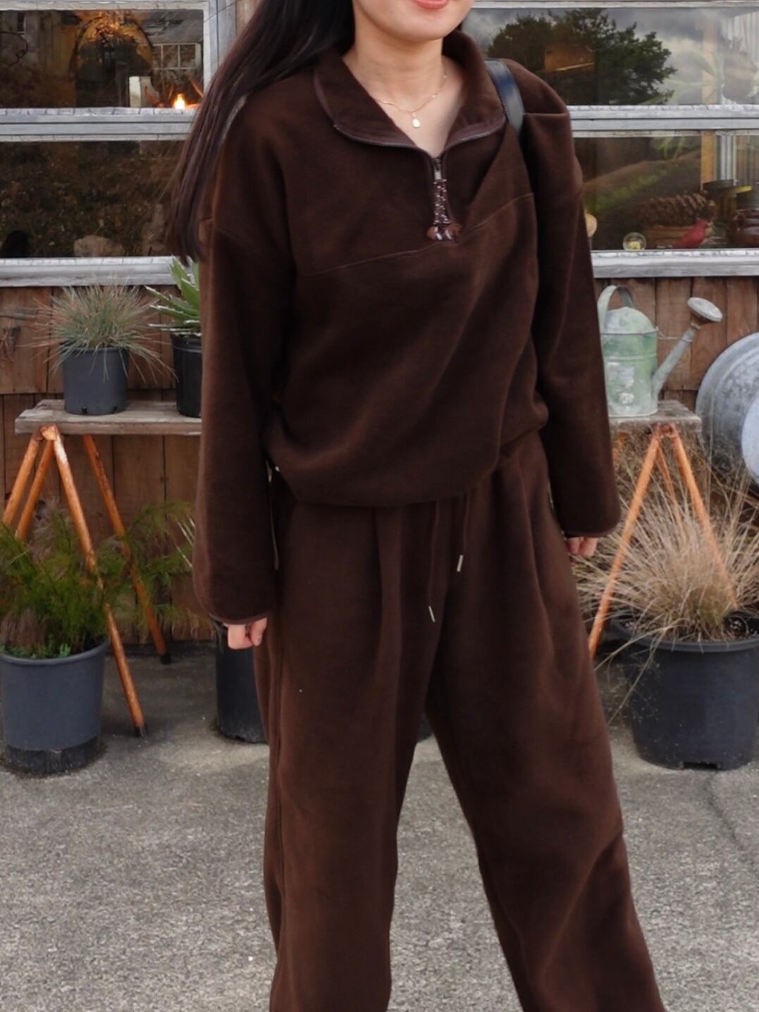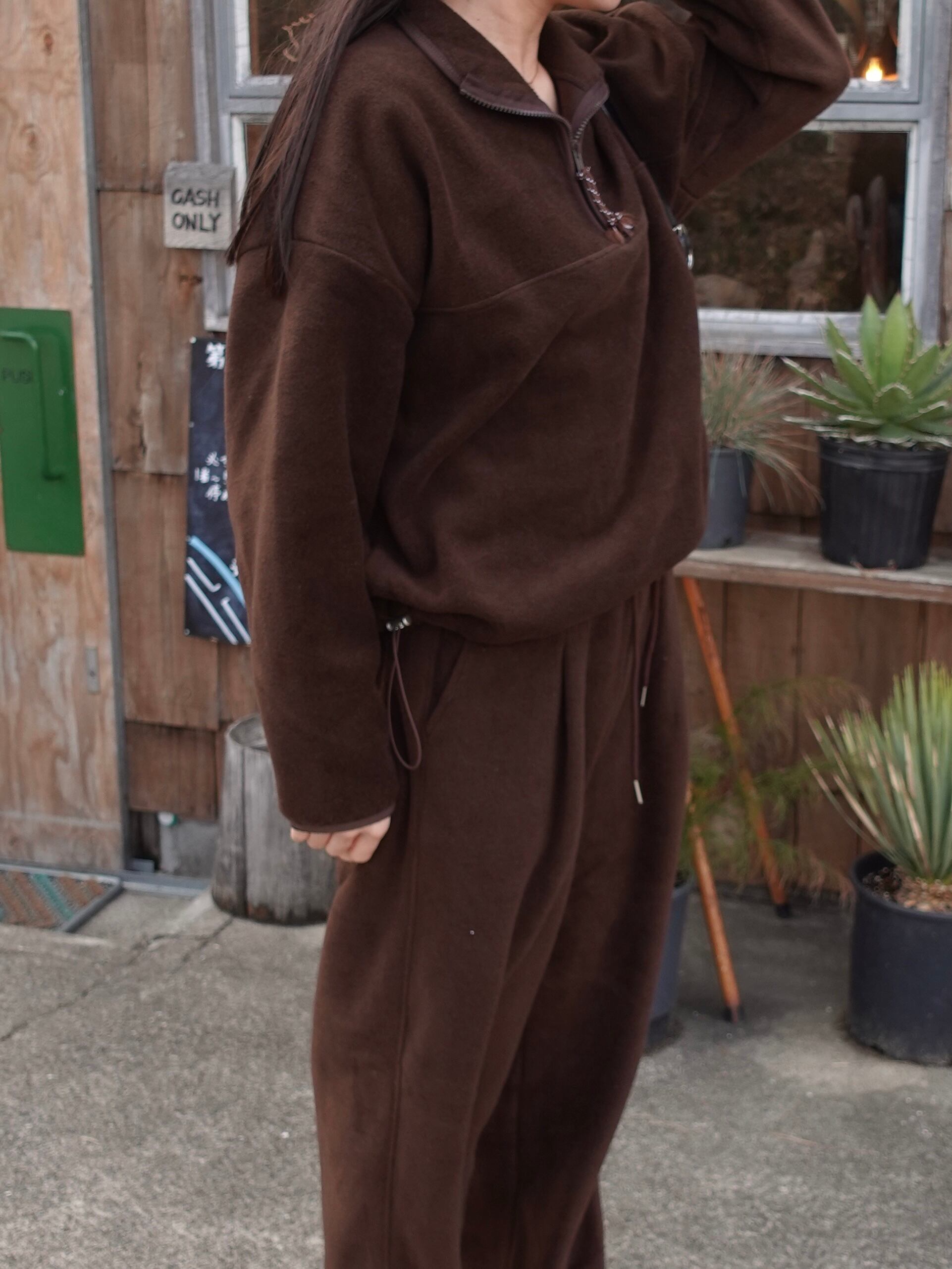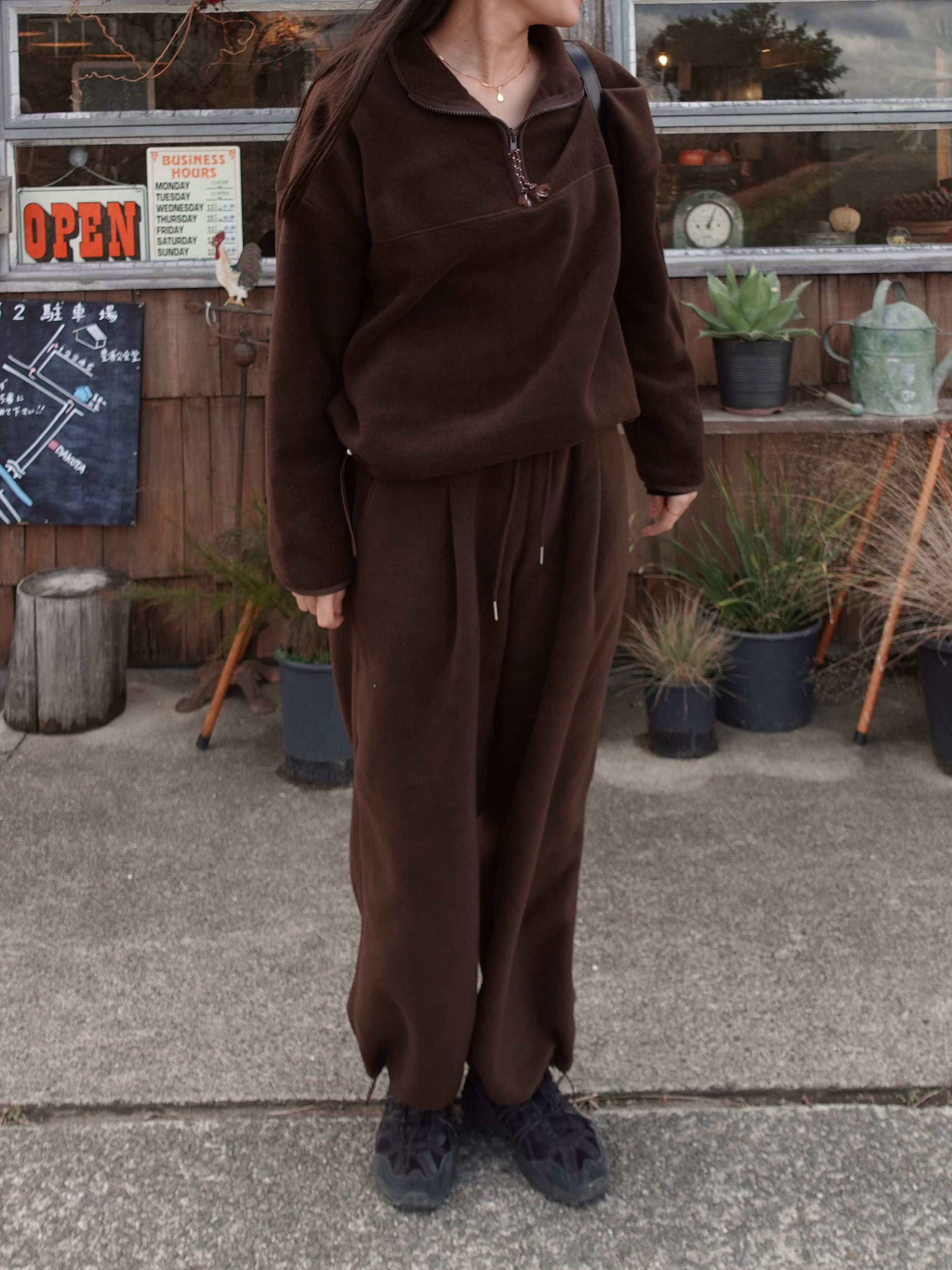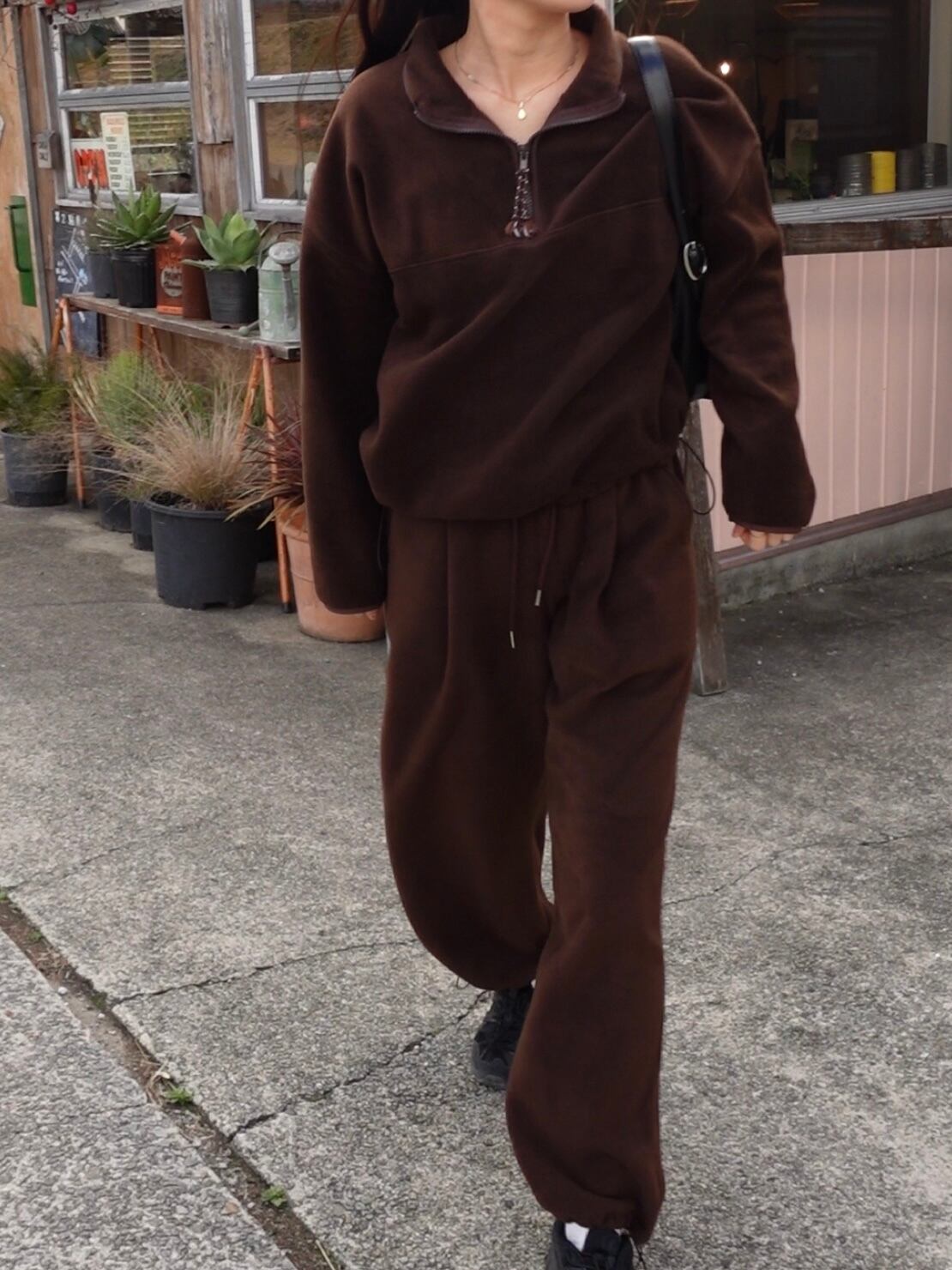 軽量で暖かいフリース素材のプルオーバーとボトム。上下は別売りで、セットアップとしてはもちろん、それぞれ単品でも着回しやすく、デイリーに活躍します。