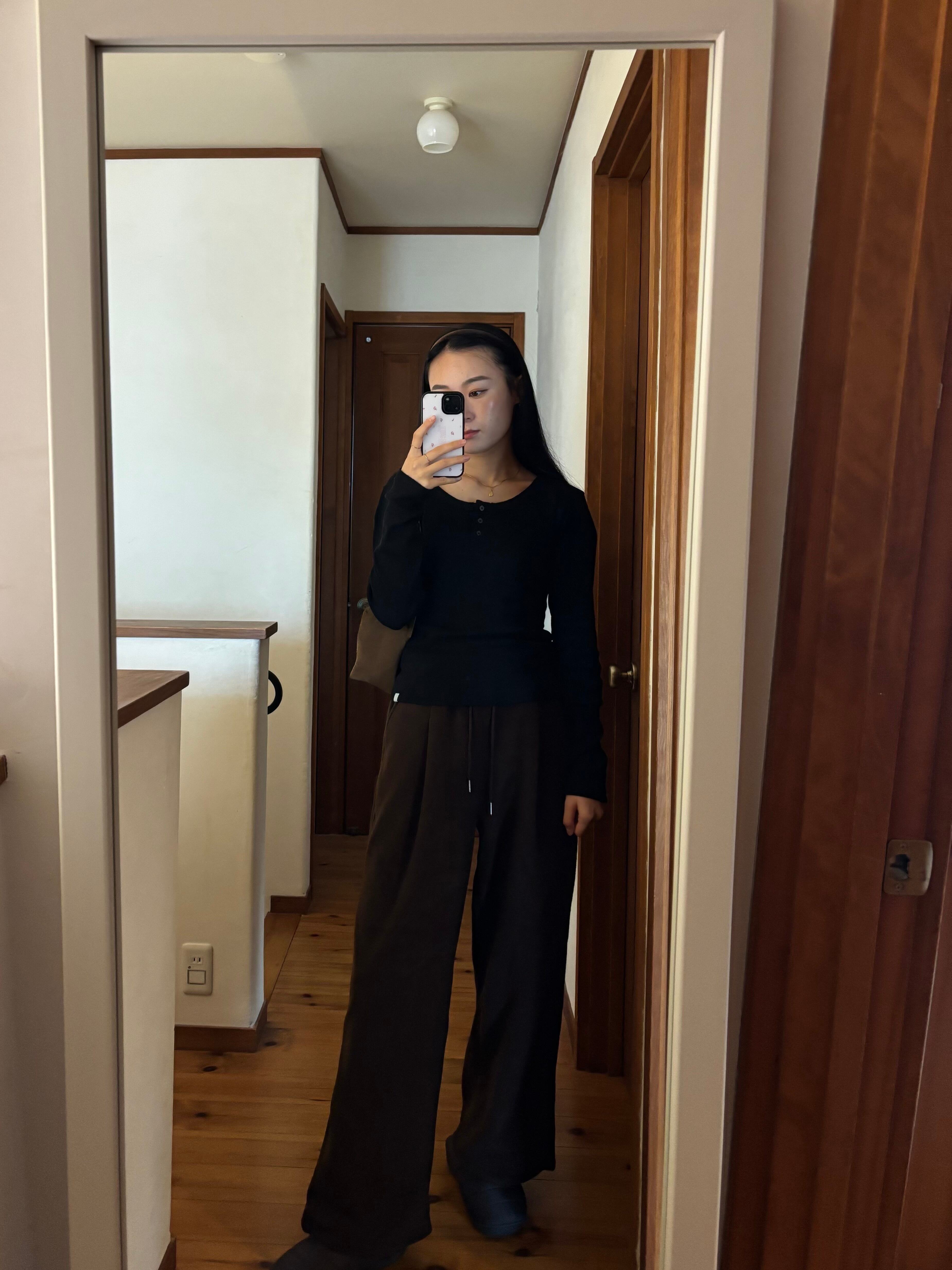 トップス・パンツともにストリング付きで、シルエットをお好みに合わせて調整できます。