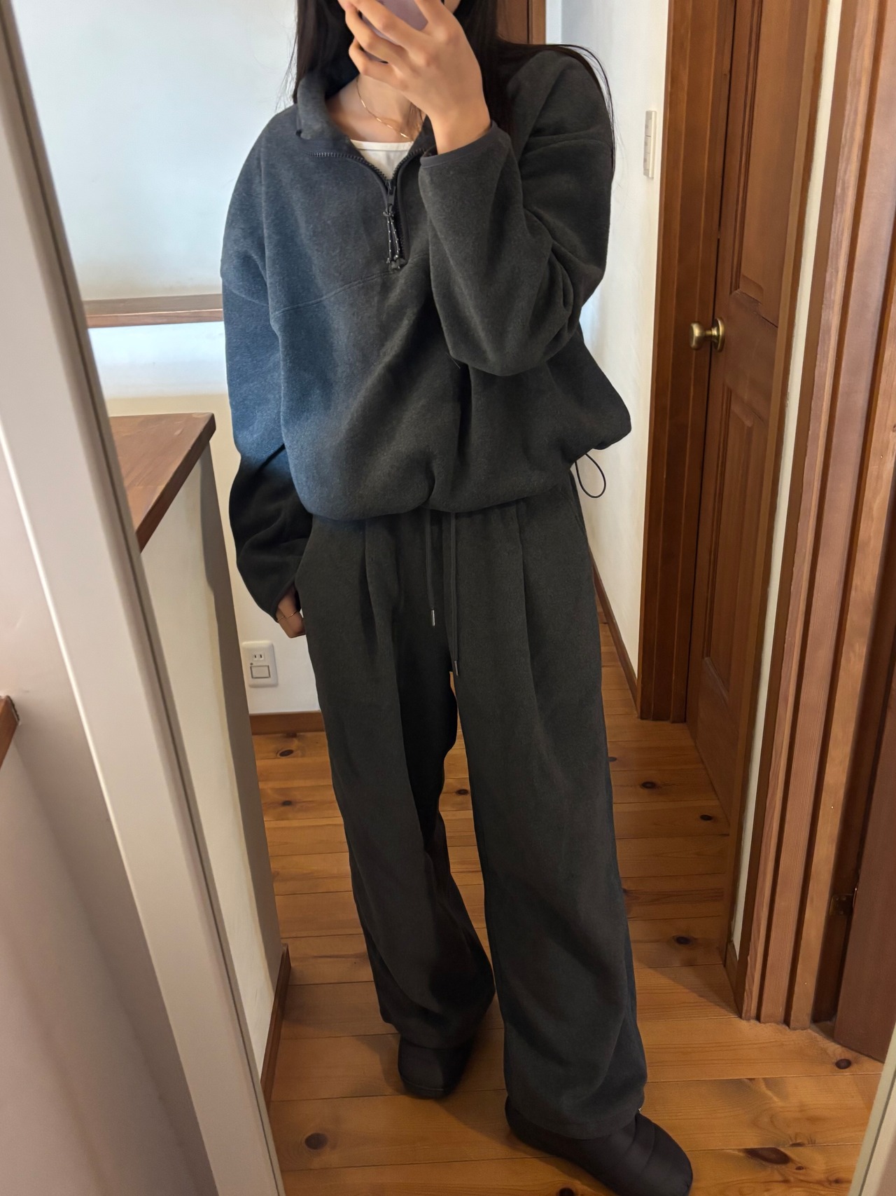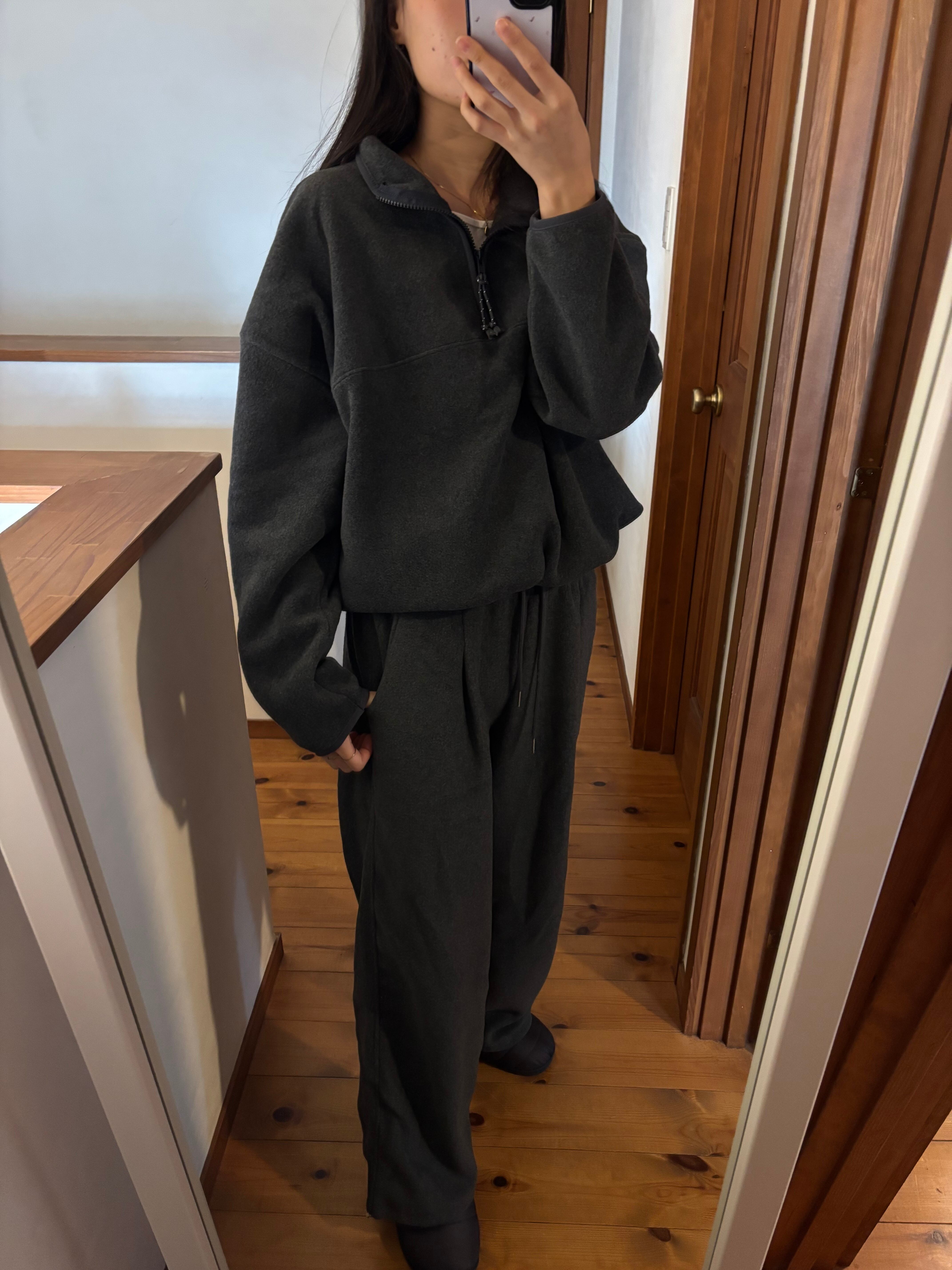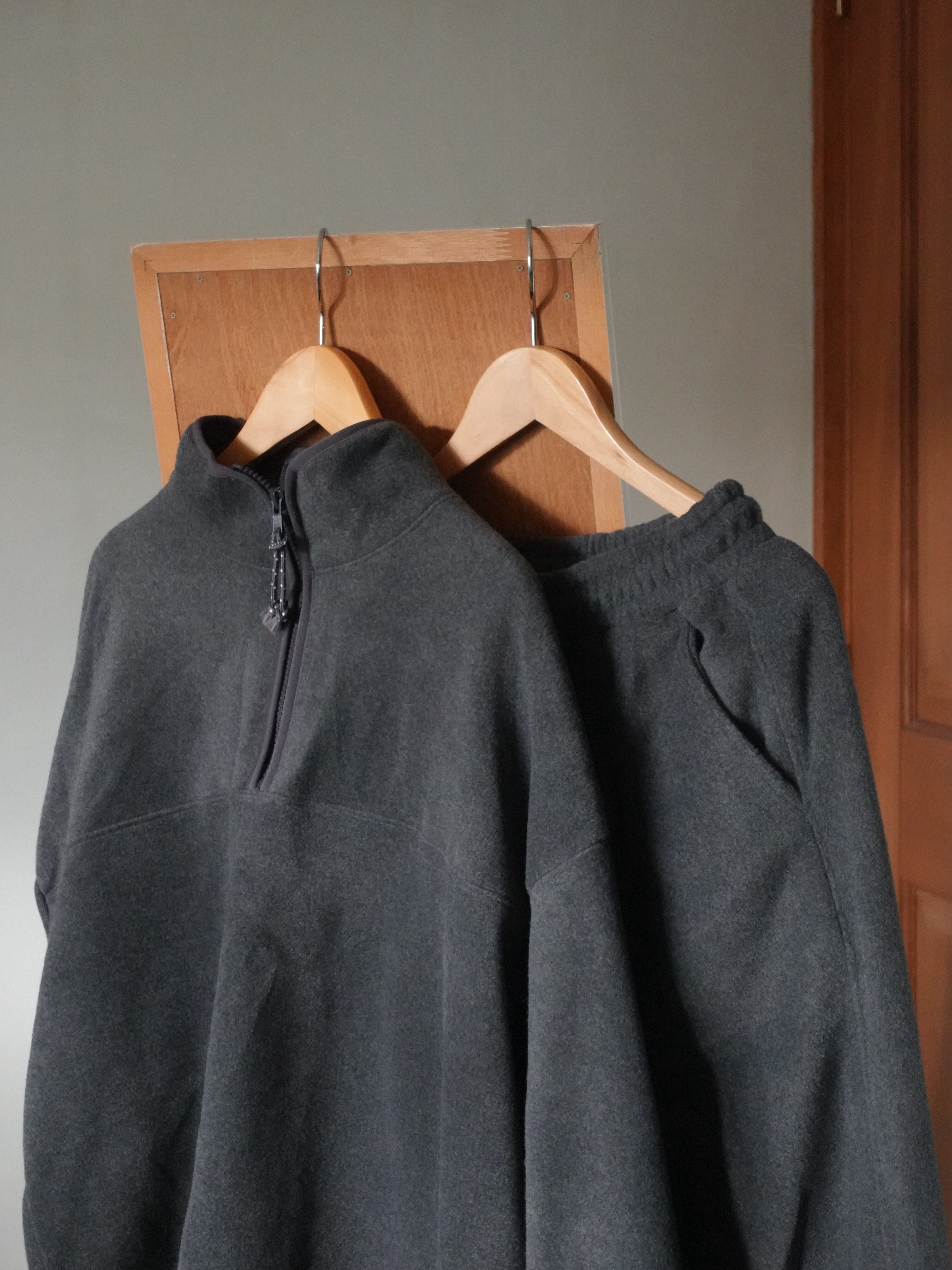 軽量で暖かいフリース素材のプルオーバーとボトム。上下は別売りで、セットアップとしてはもちろん、それぞれ単品でも着回しやすく、デイリーに活躍します。