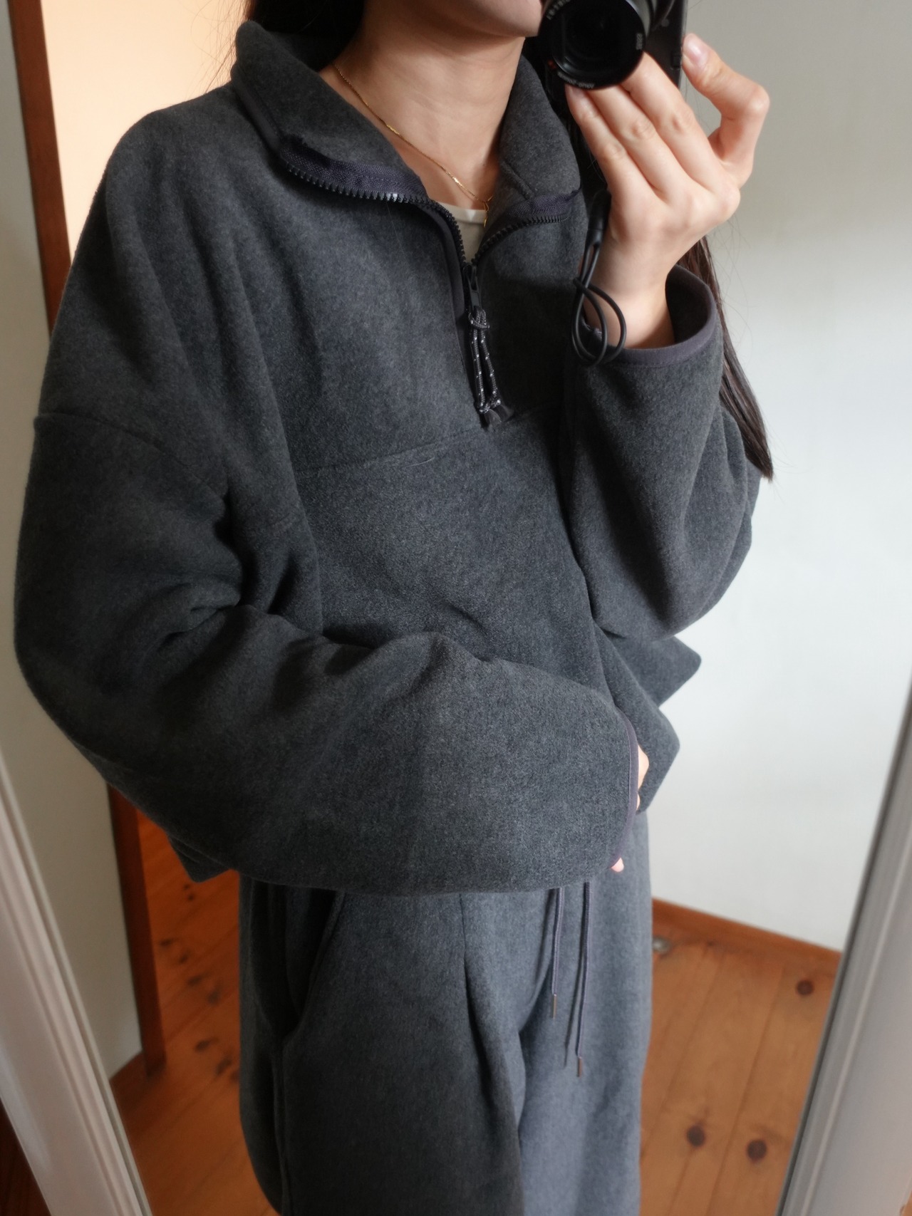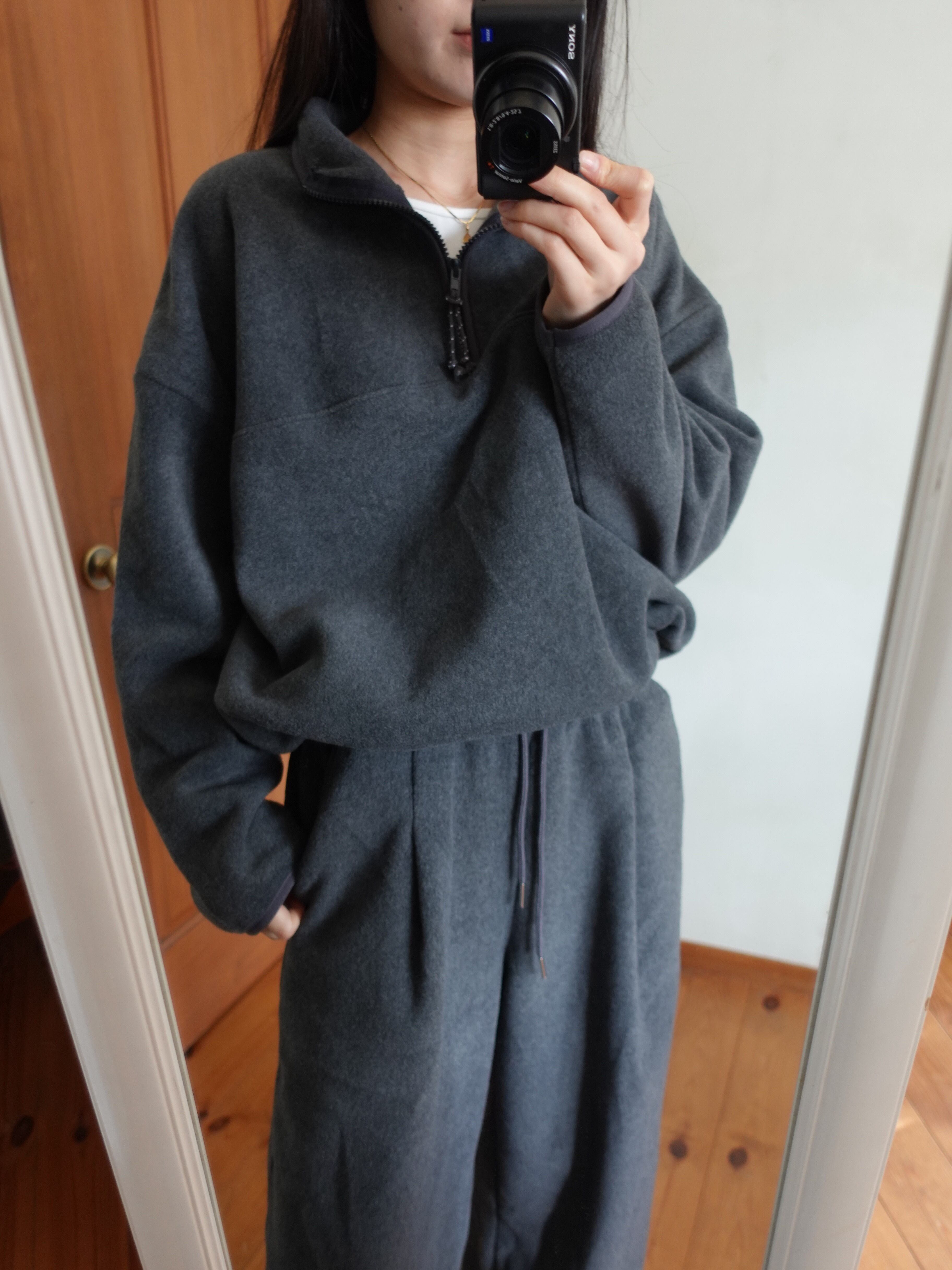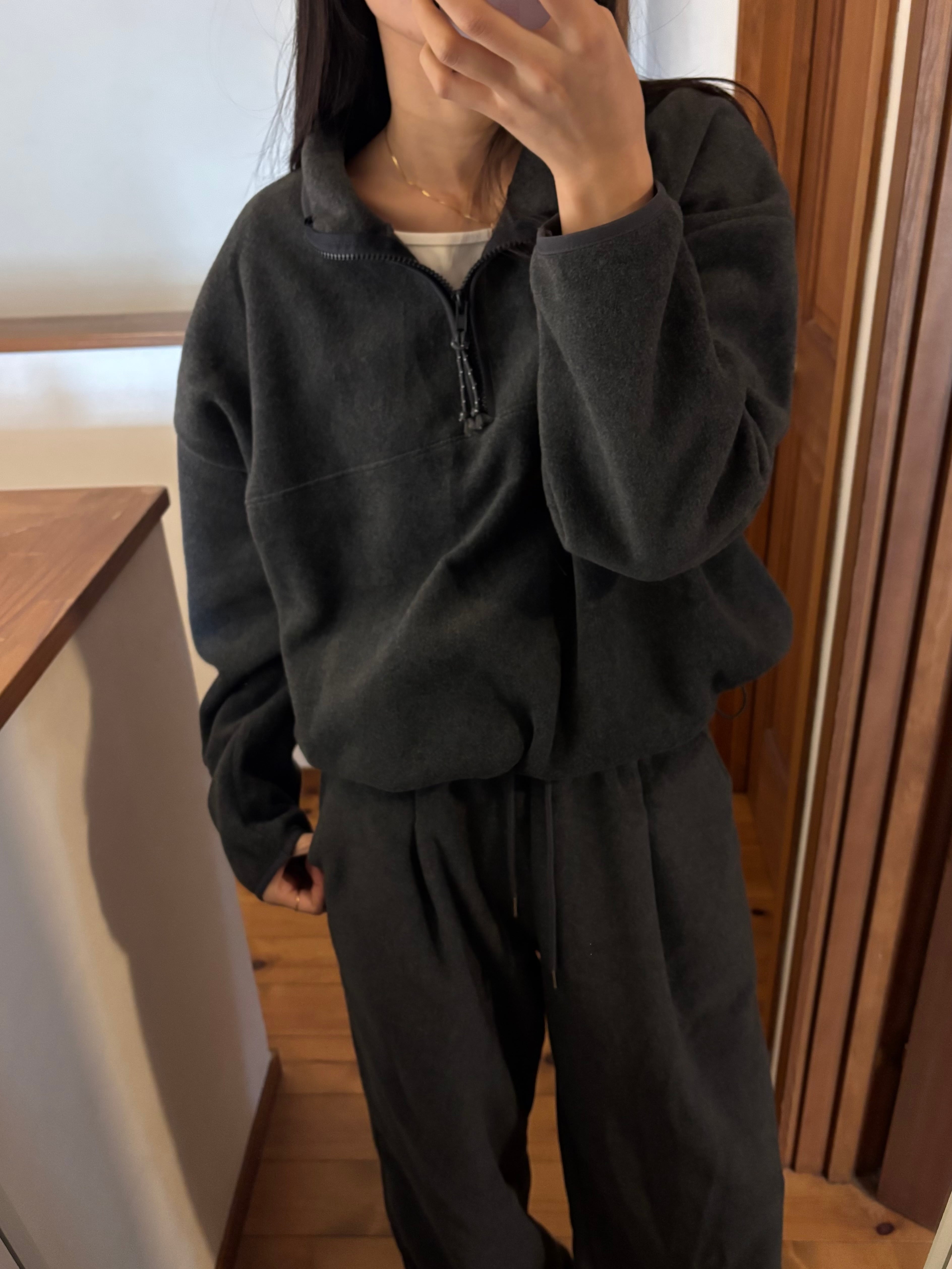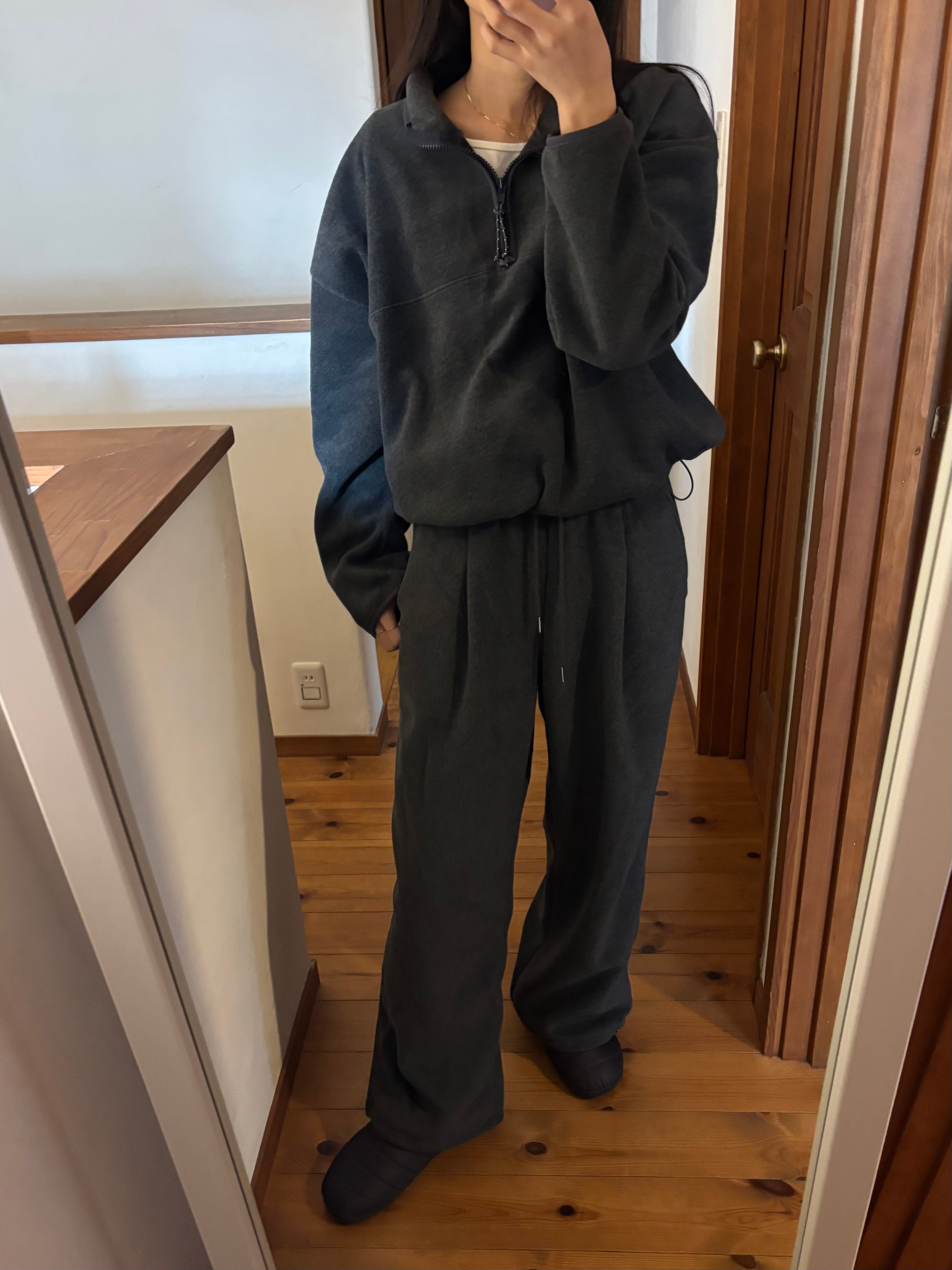 軽量で暖かいフリース素材のプルオーバーとボトム。上下は別売りで、セットアップとしてはもちろん、それぞれ単品でも着回しやすく、デイリーに活躍します。
