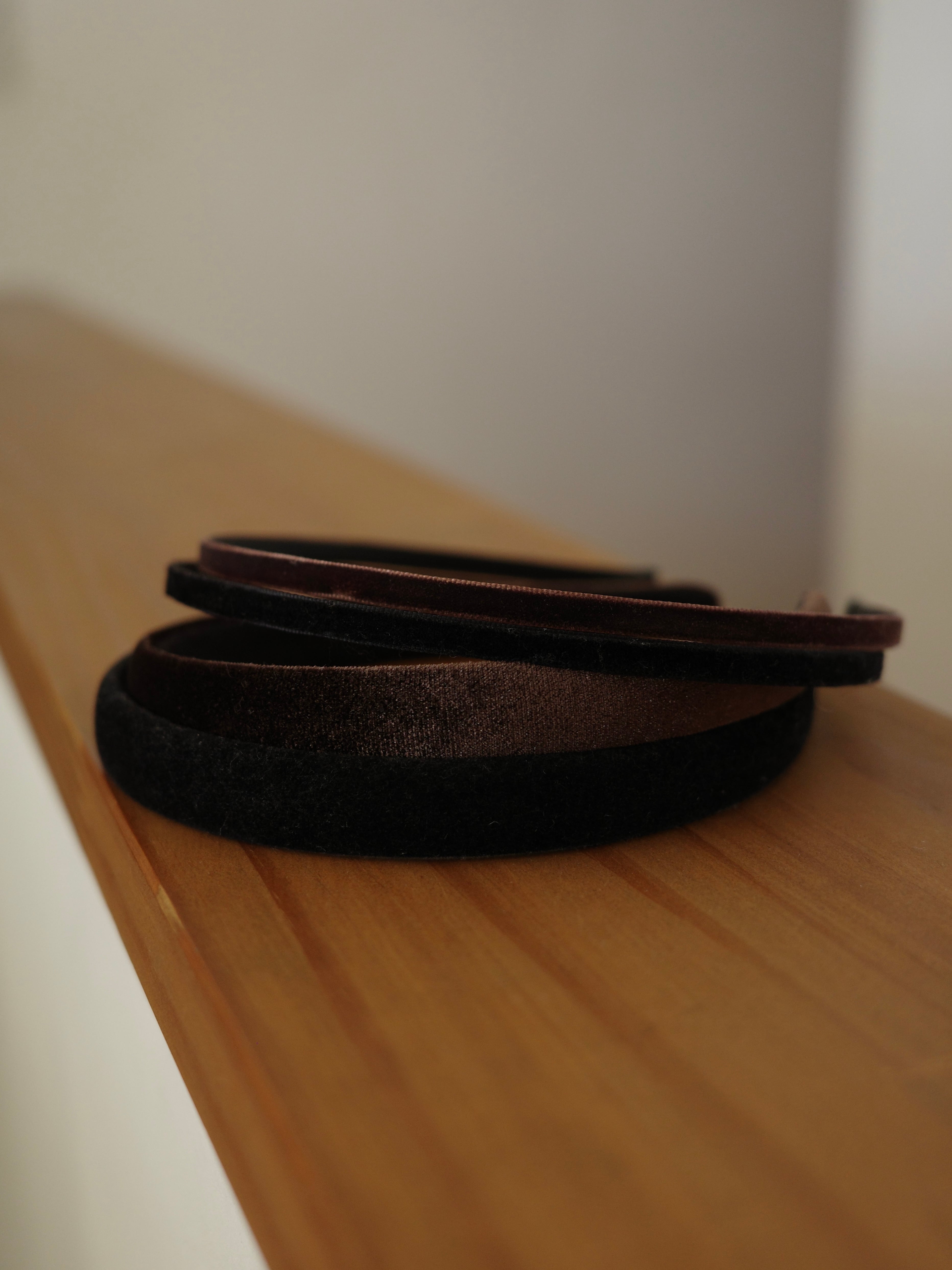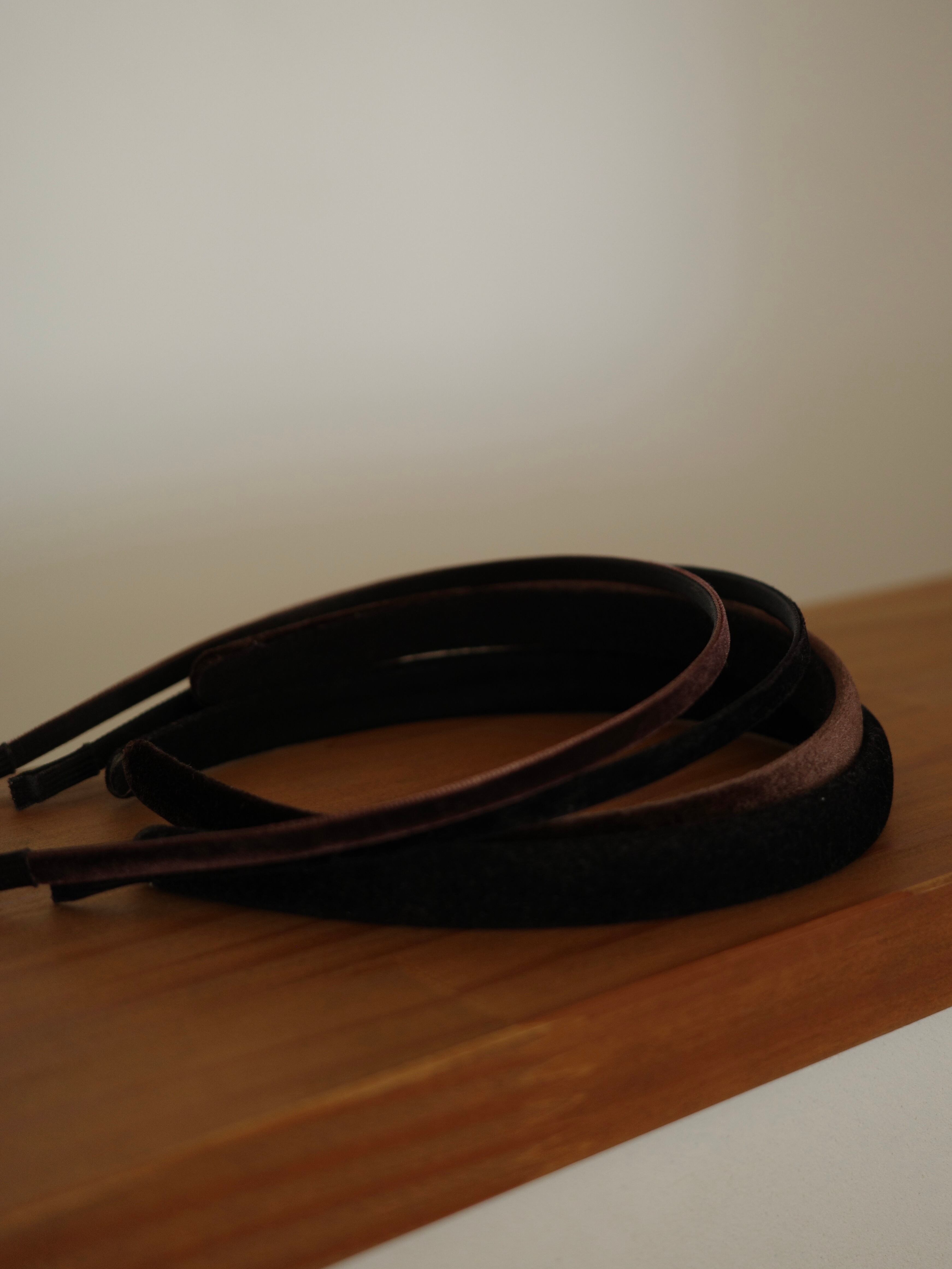 使い勝手の良い、細身のベロアカチューシャ。