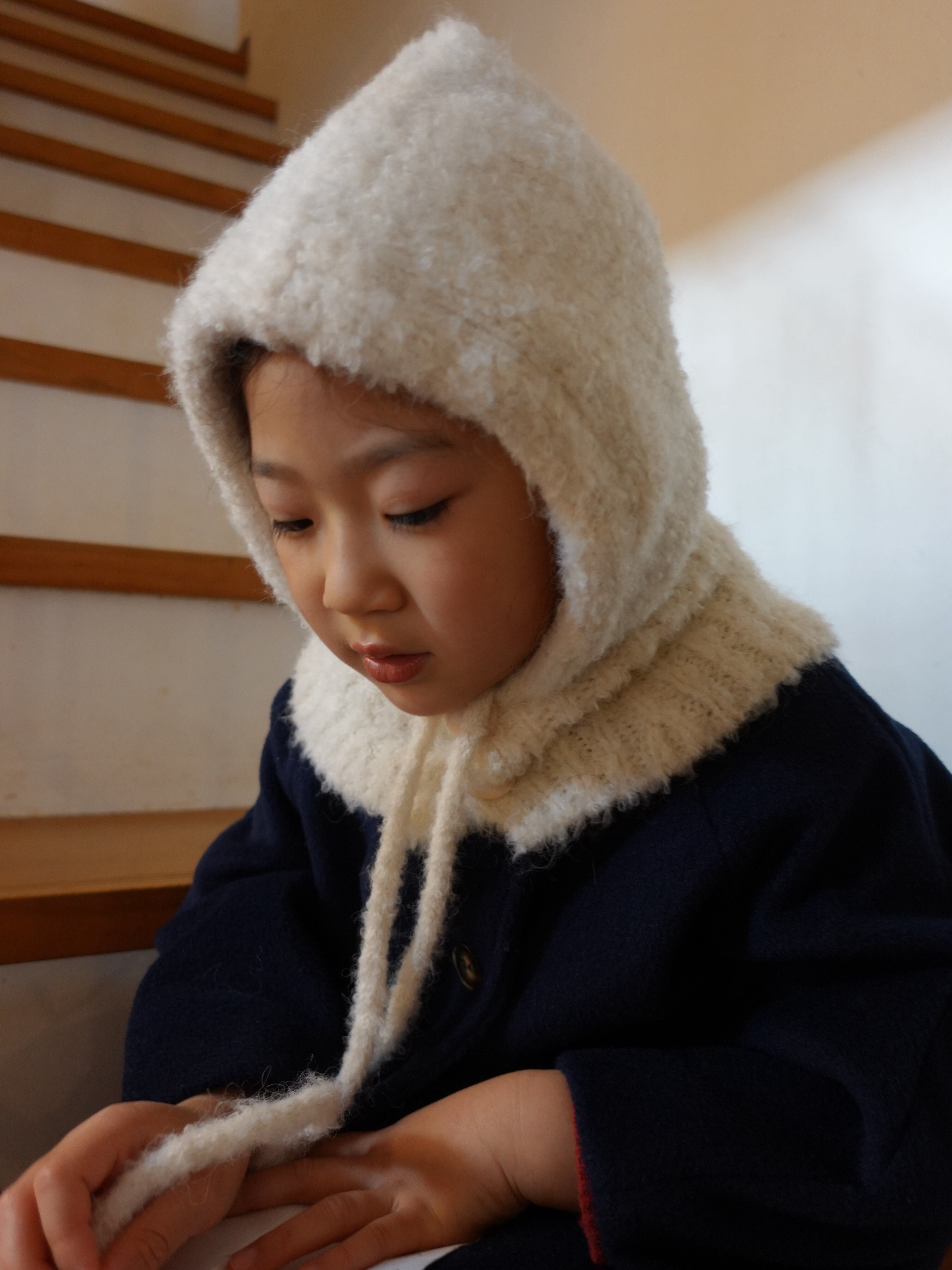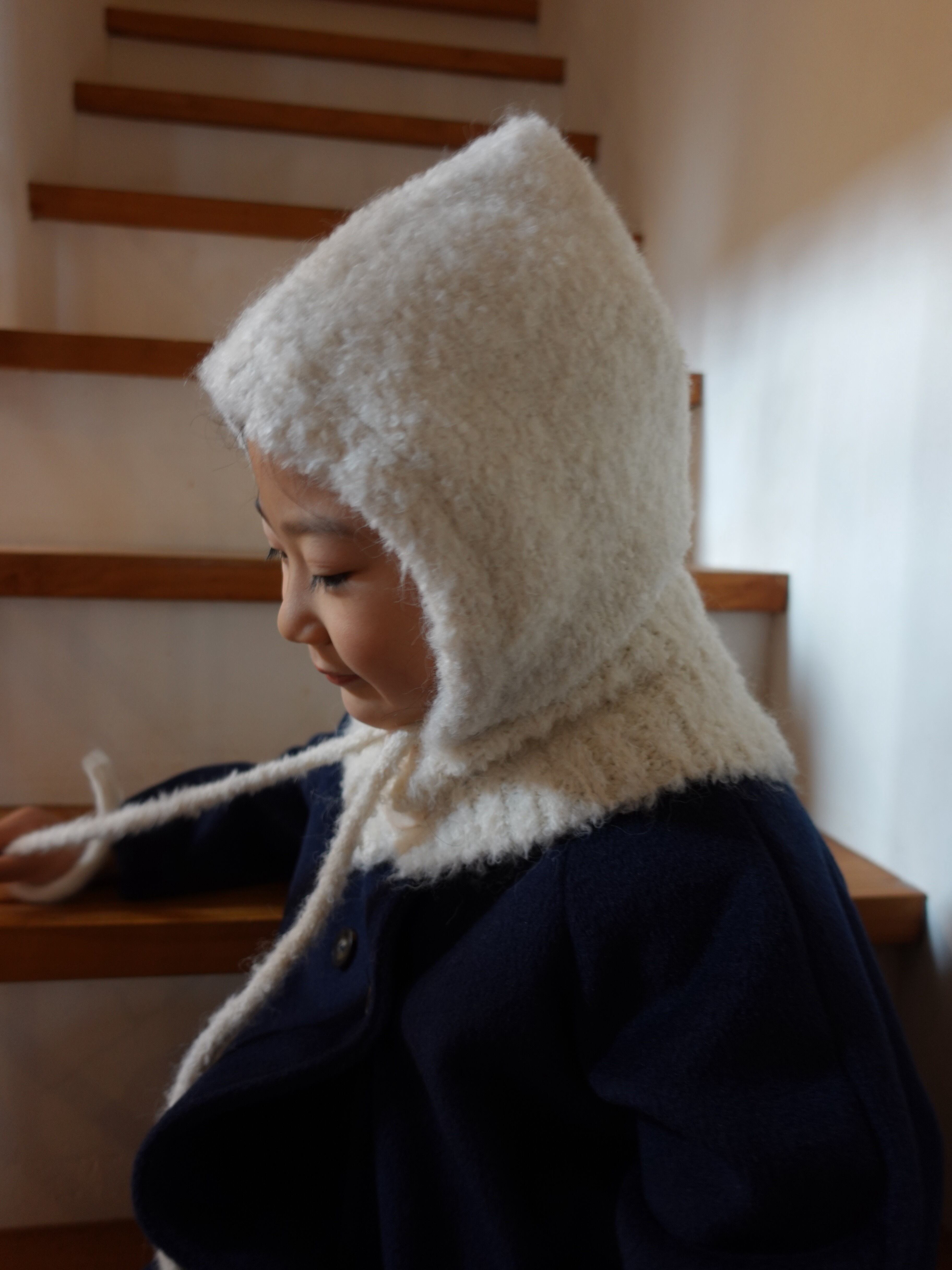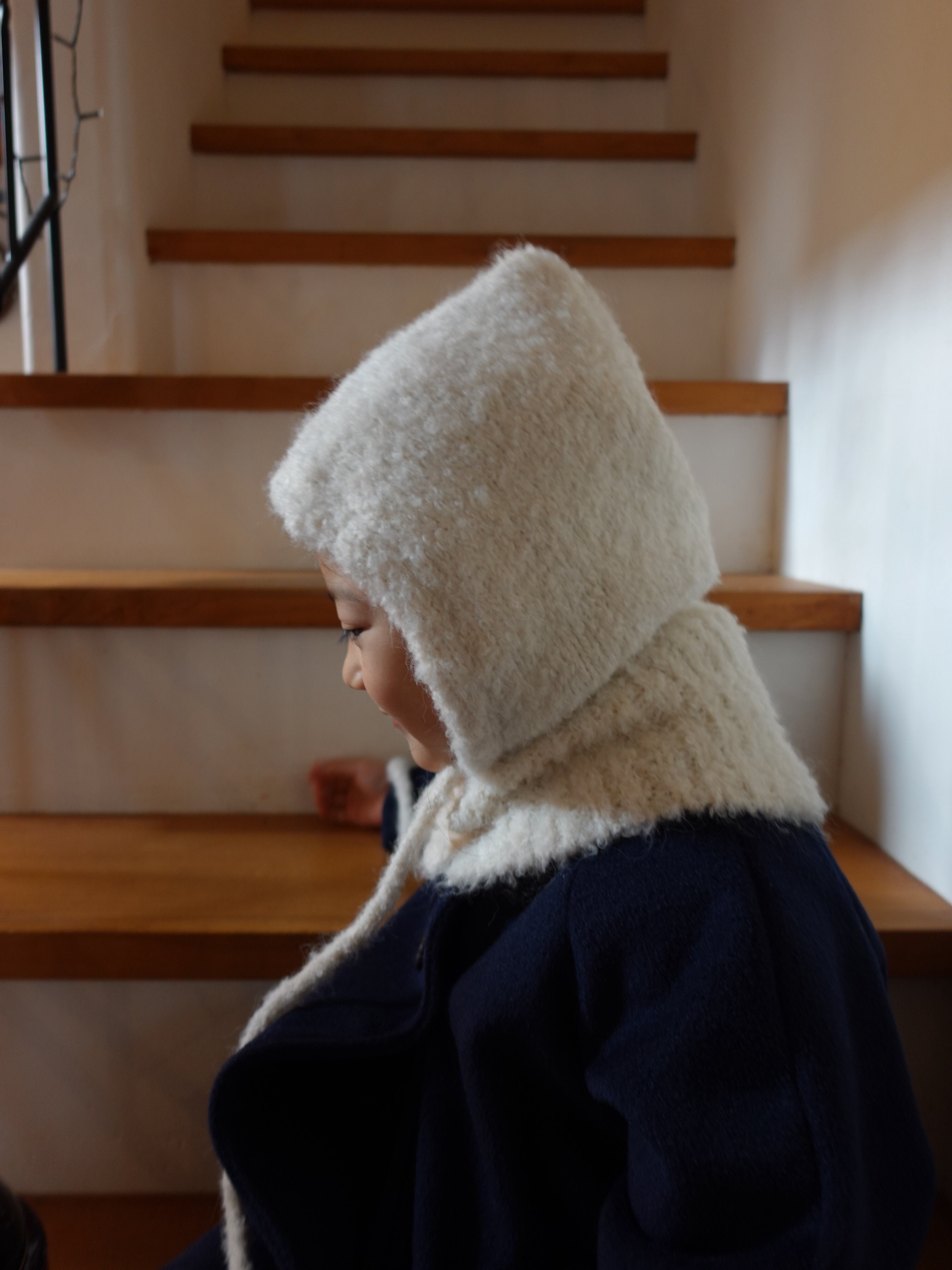 ふんわりとした起毛感が可愛い、キッズ用ニットバラクラバ。