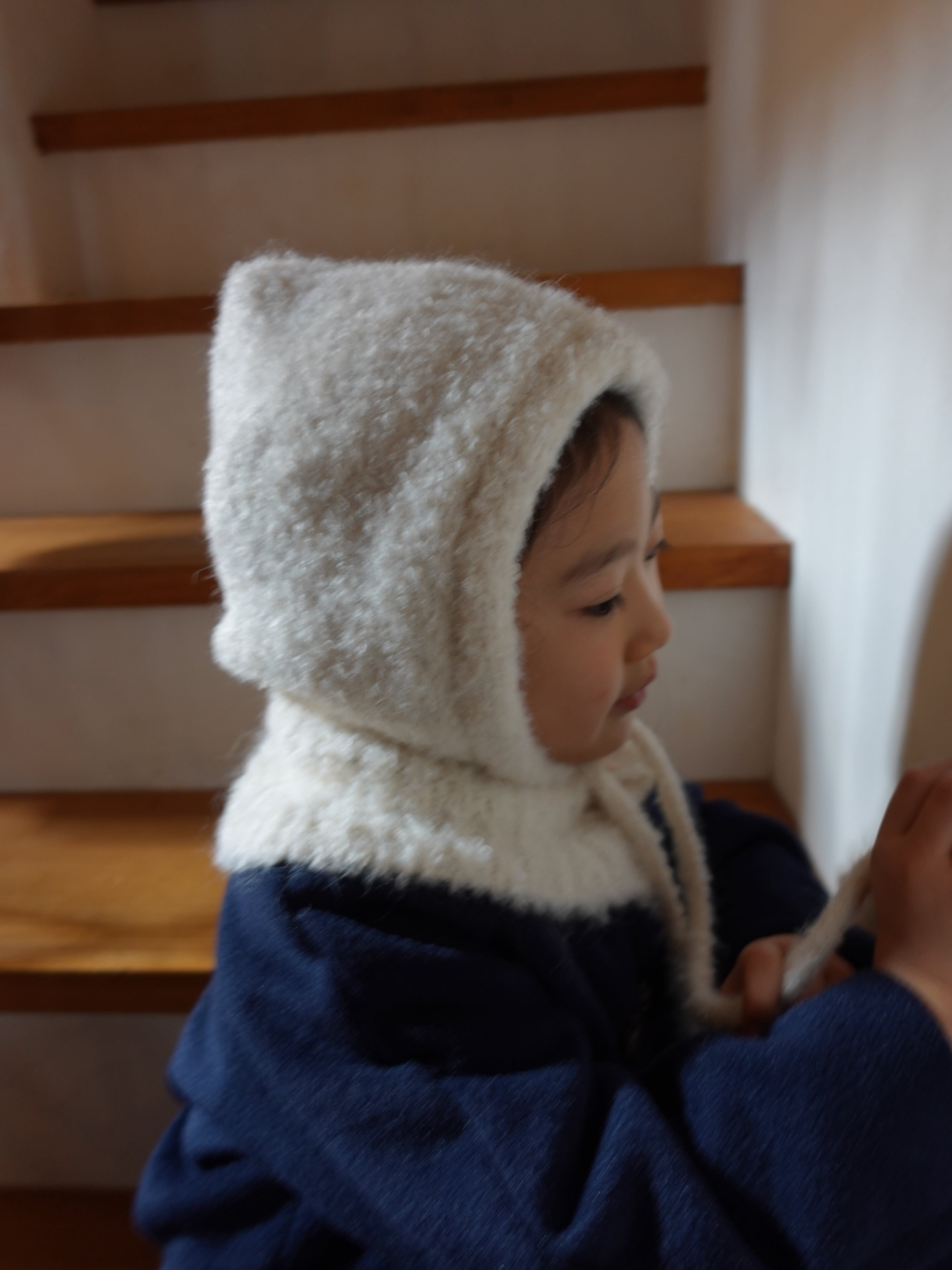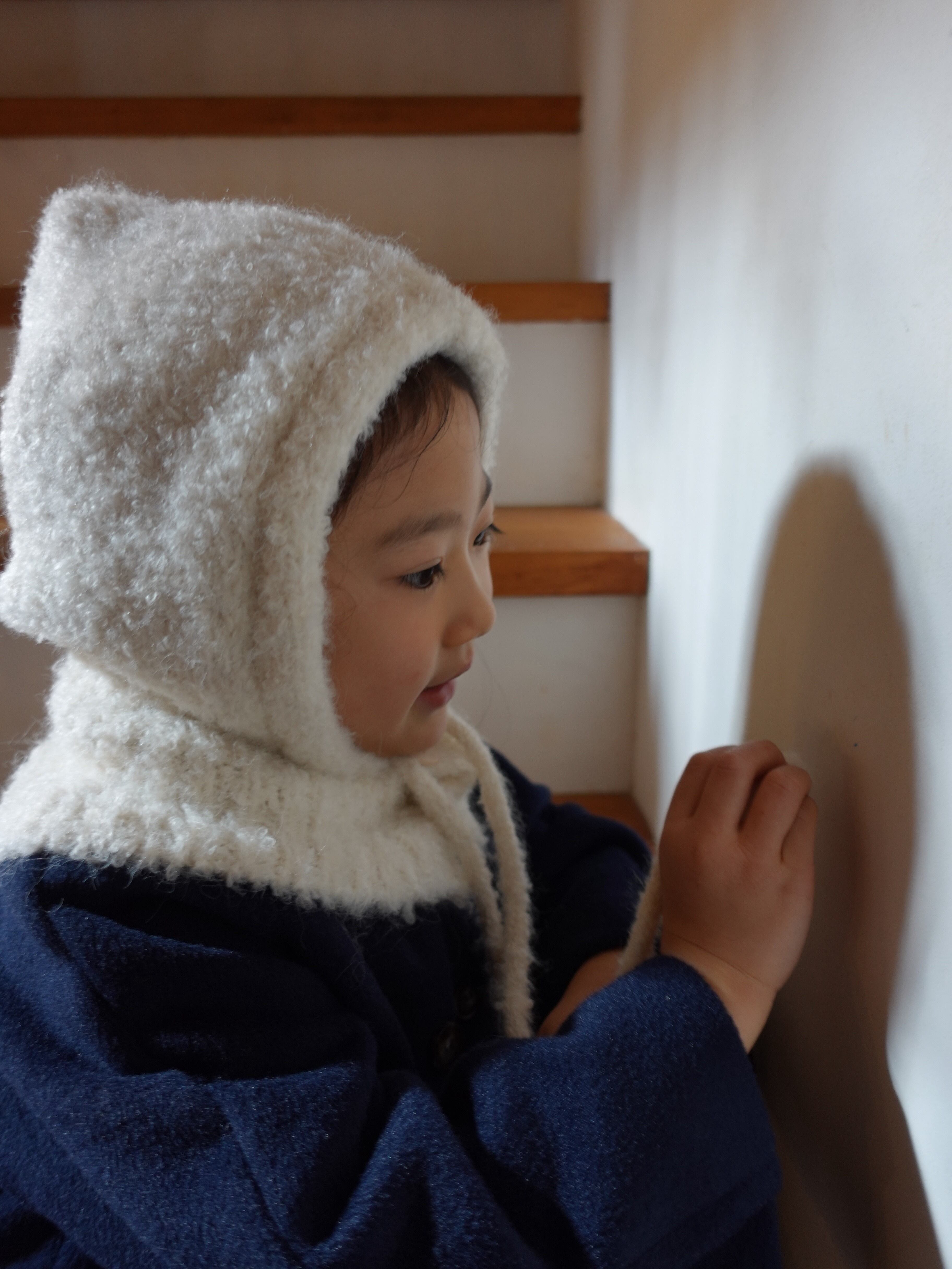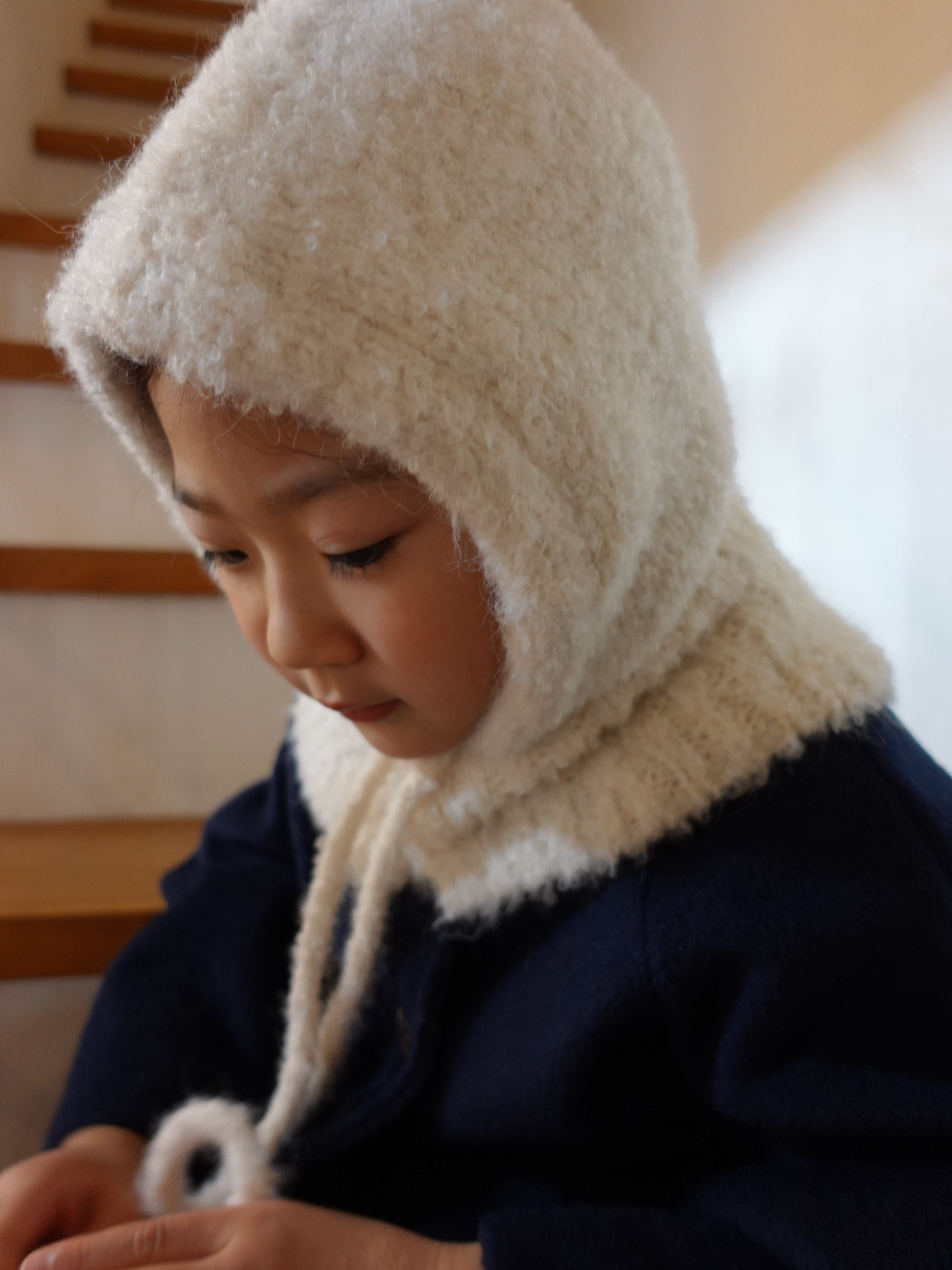 ふんわりとした起毛感が可愛い、キッズ用ニットバラクラバ。