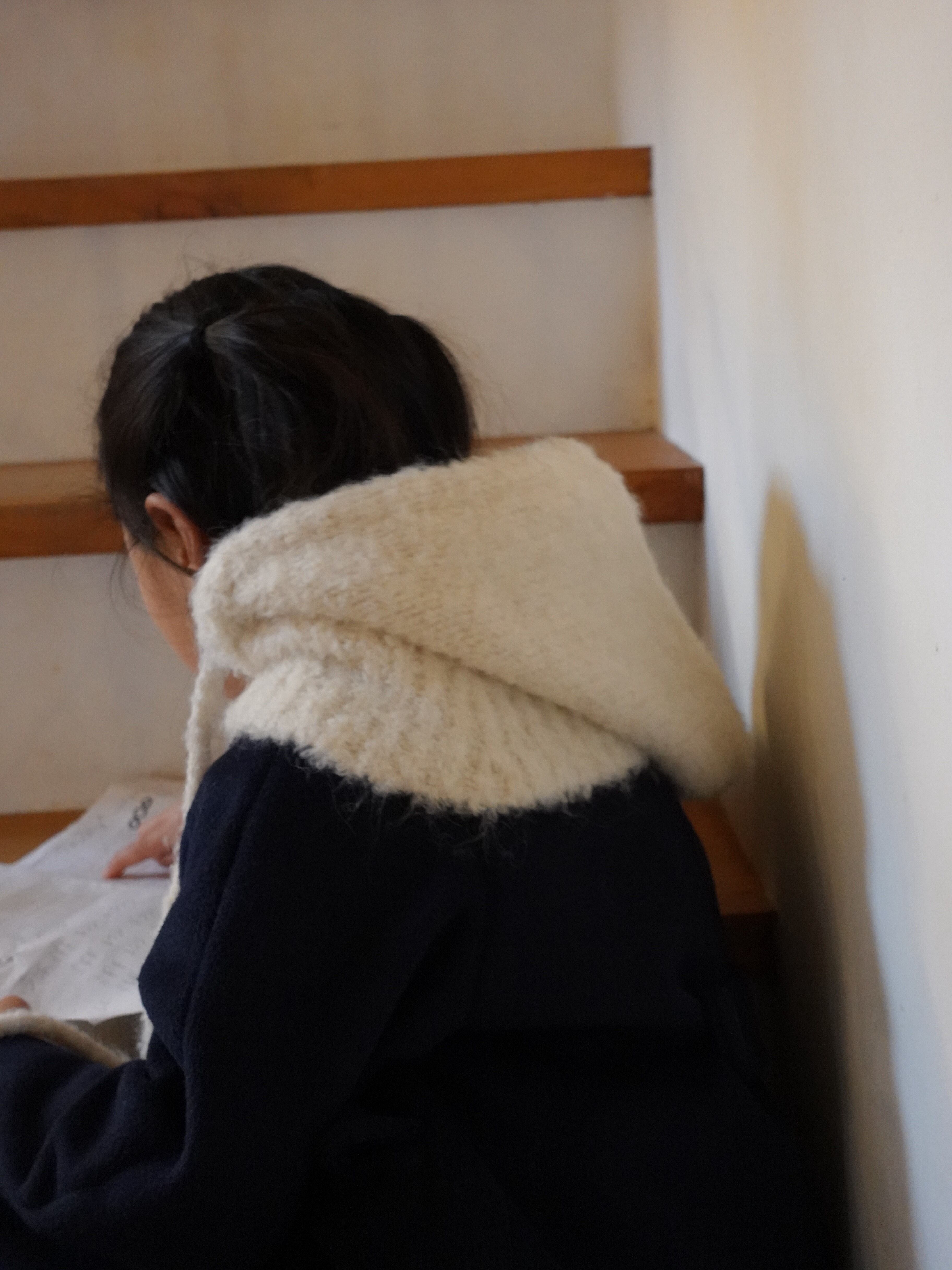 顔まわりから首元までしっかり包み込み、帽子+ネックウォーマーの役割を1枚で叶えます。