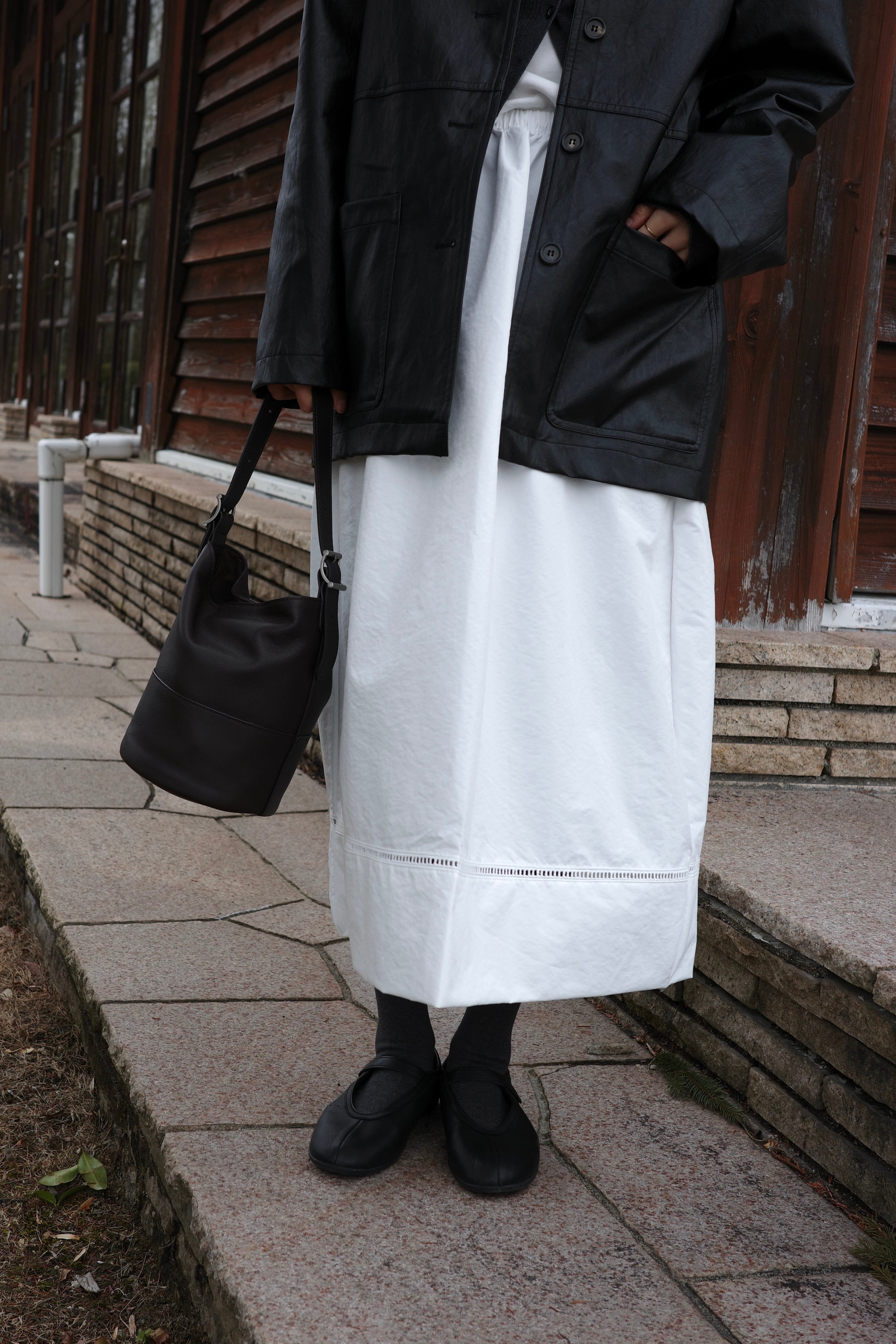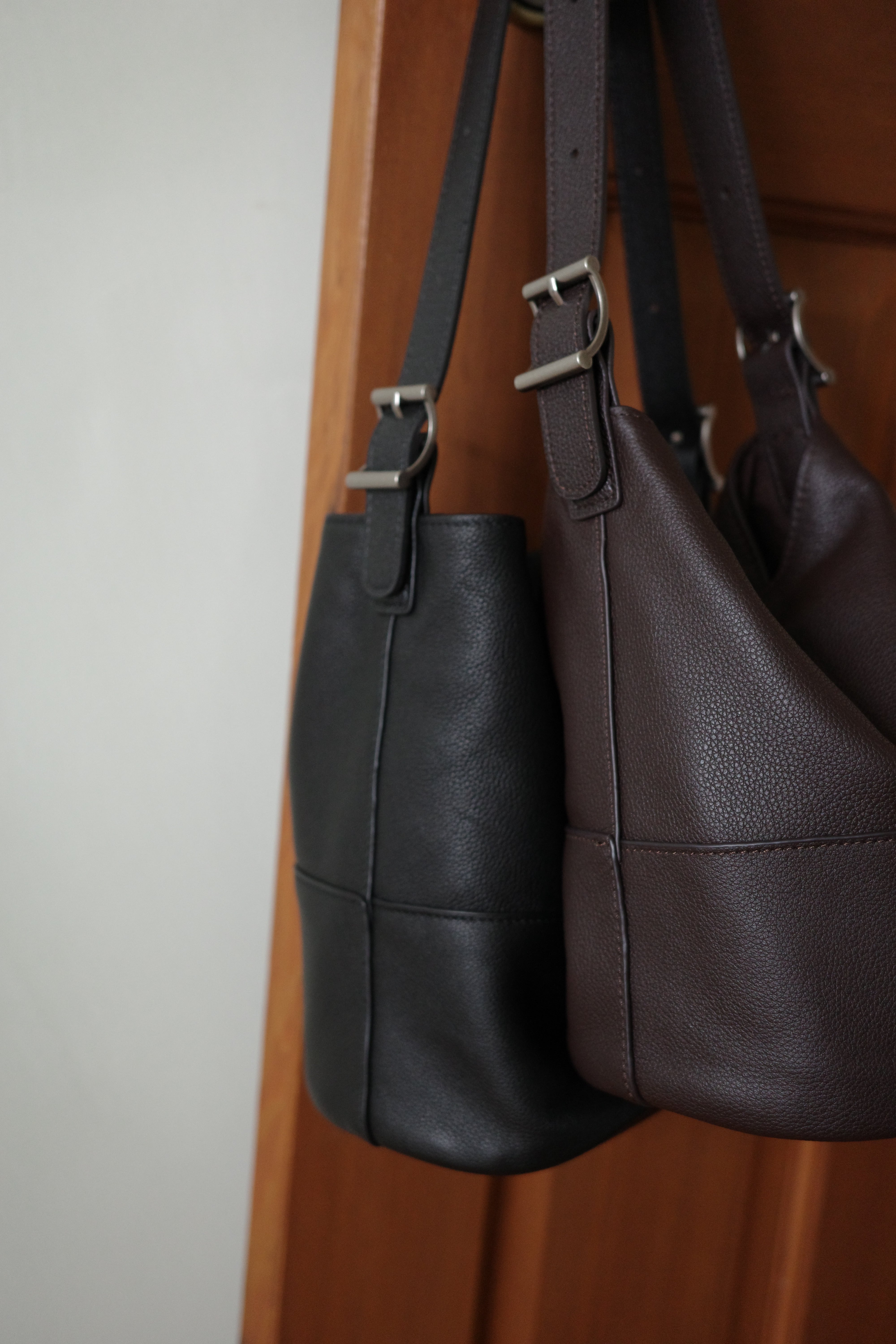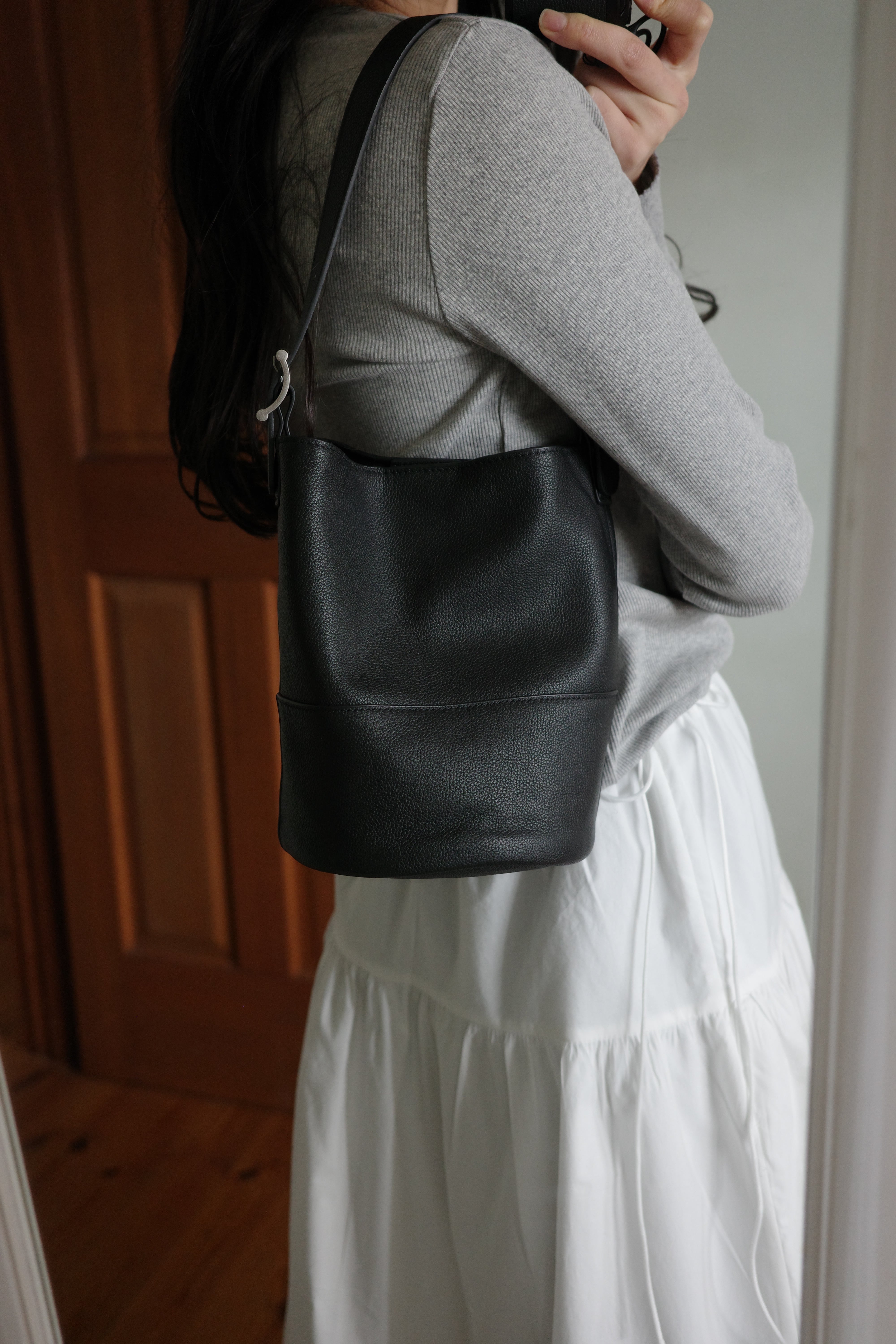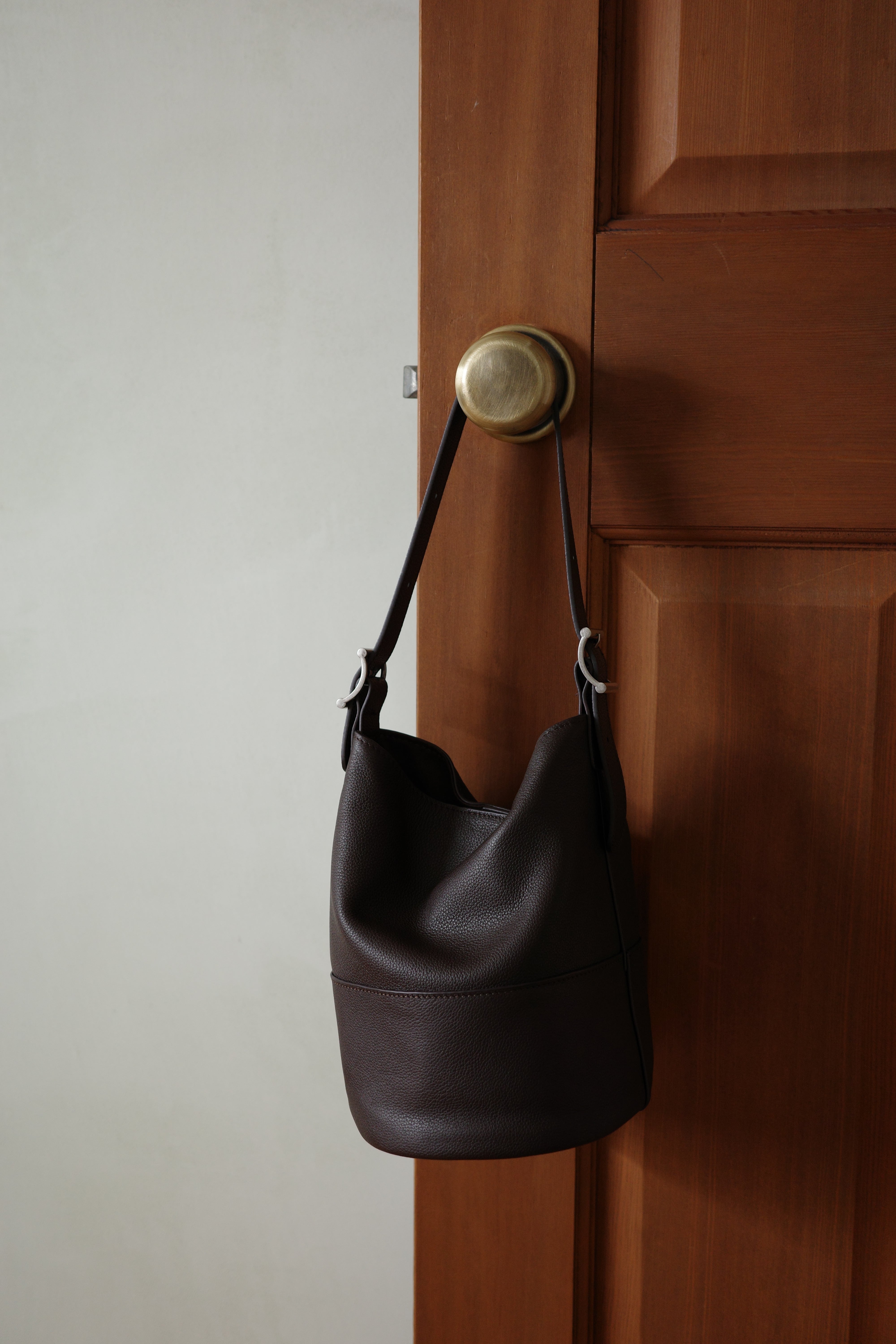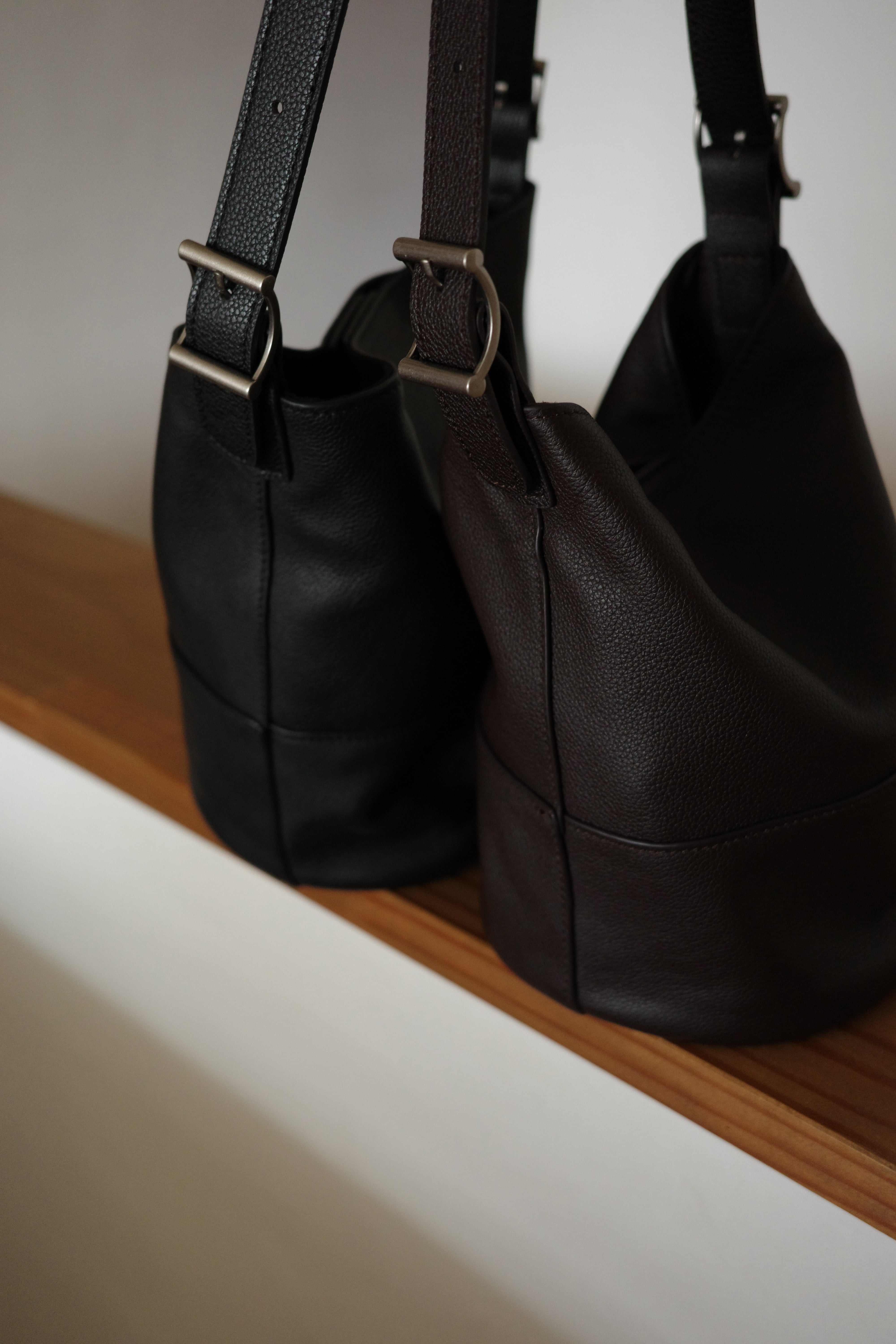 上質な牛革100%を使用した、ミニマルで洗練されたバケットバッグ。
