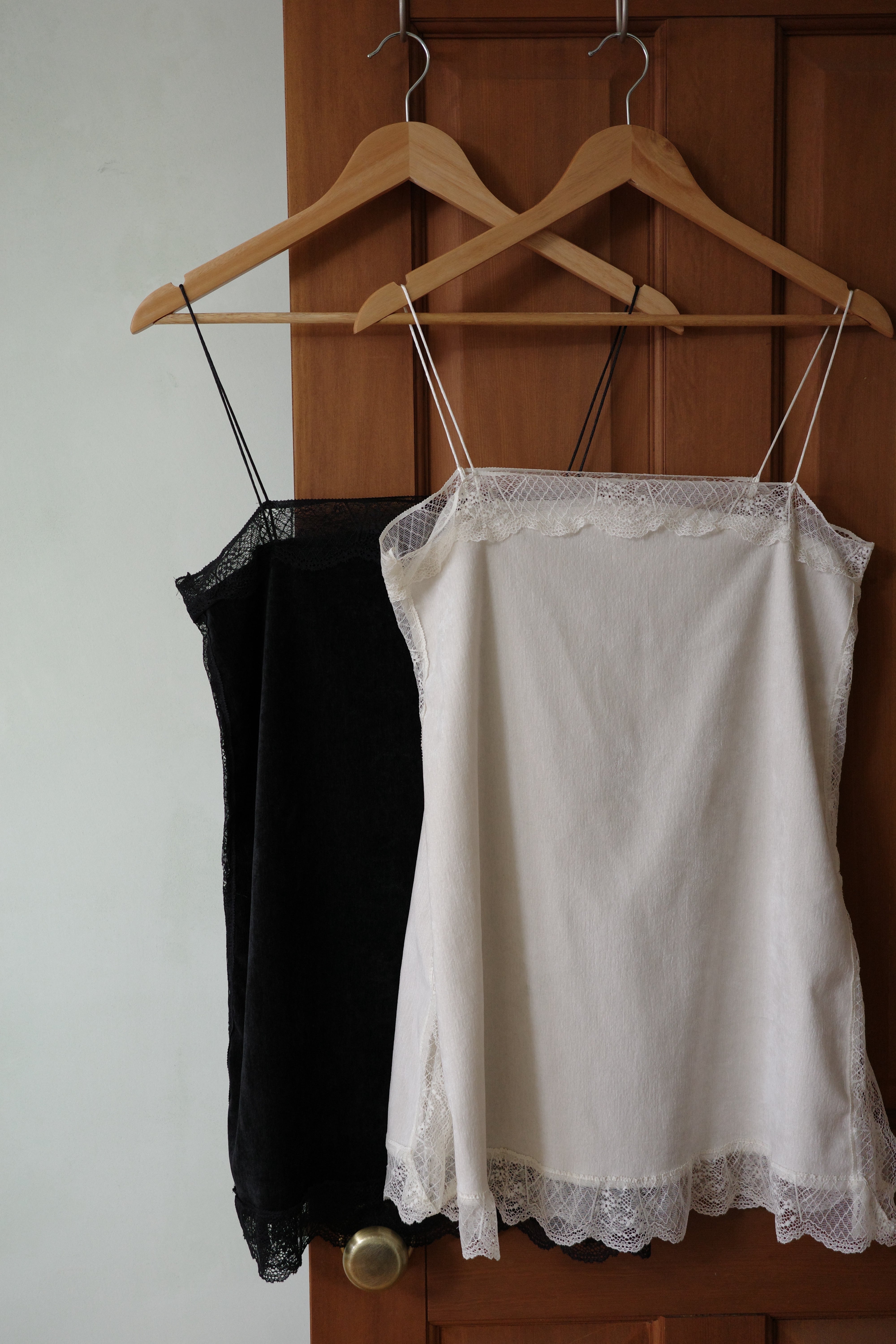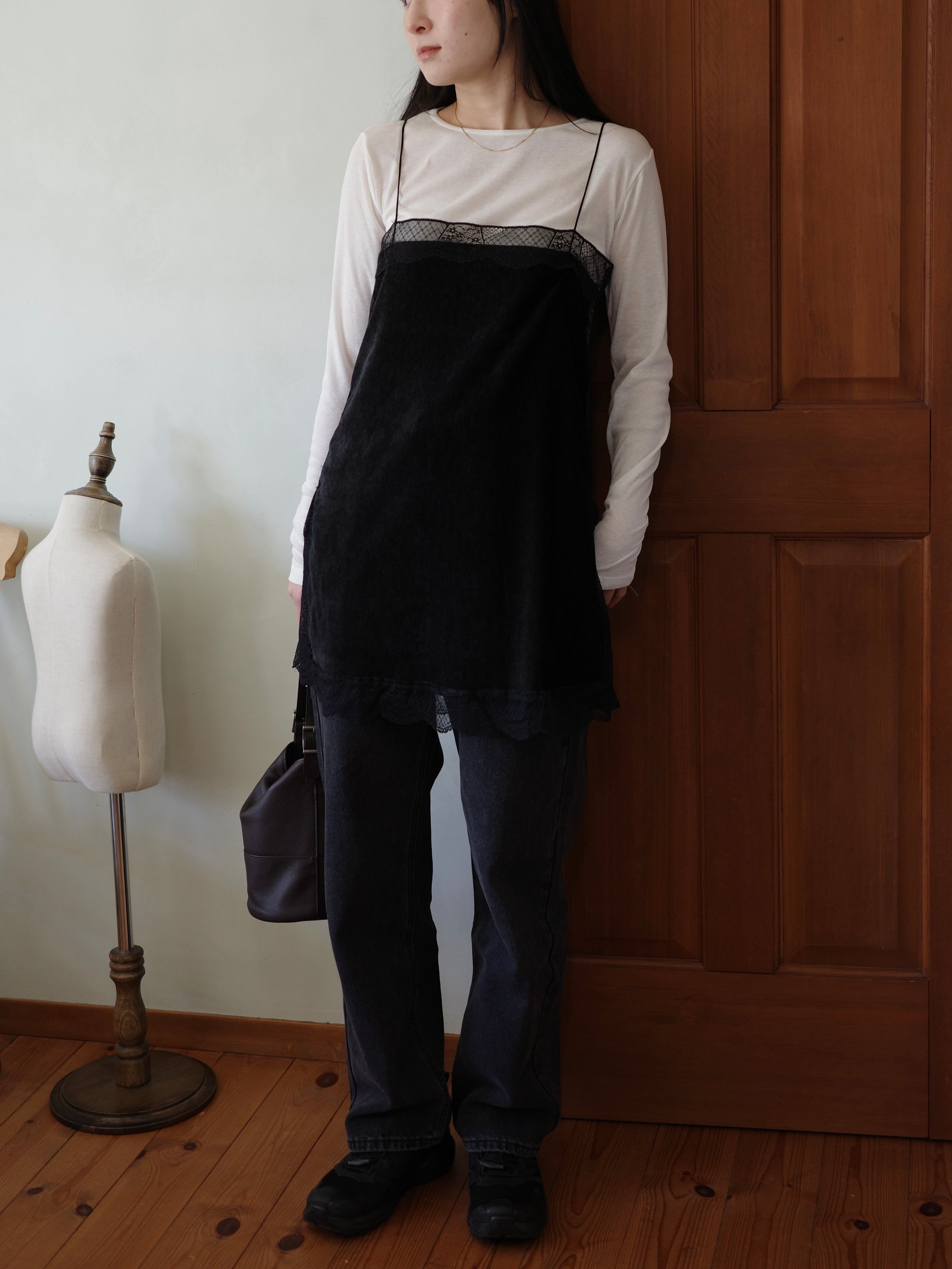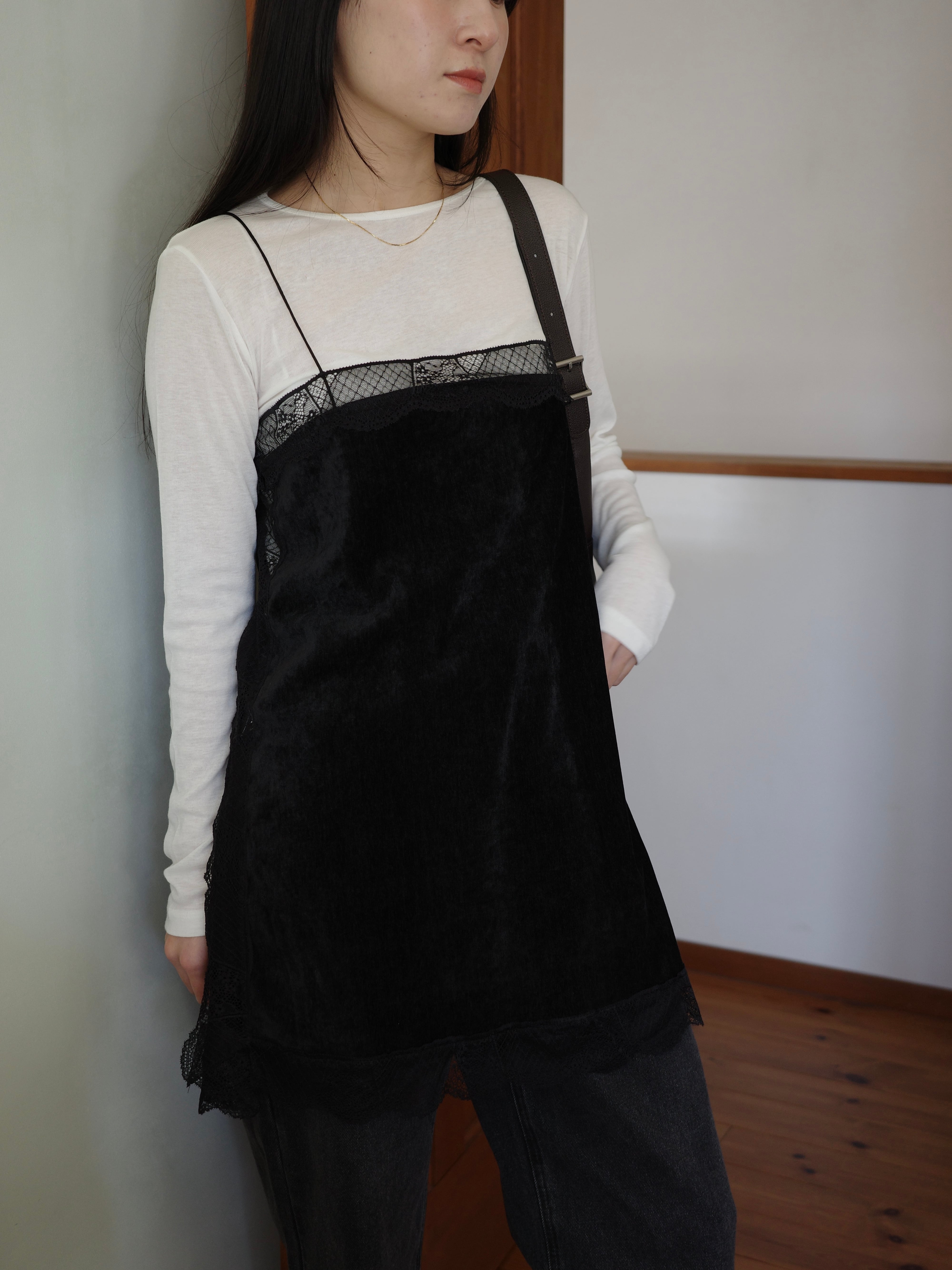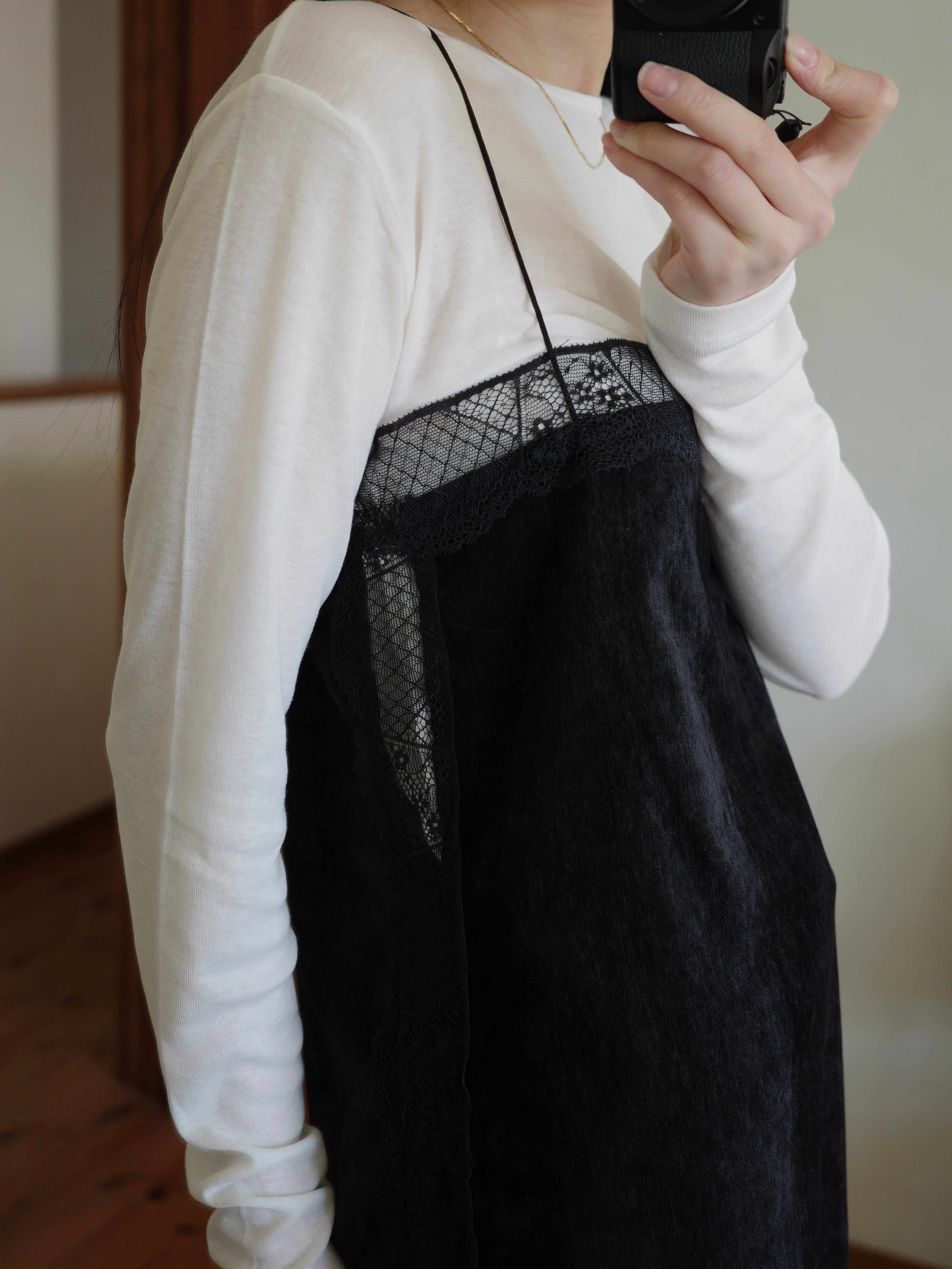 しっとりとした質感が魅力のベロア素材に、繊細なレースをあしらったスリップドレス。