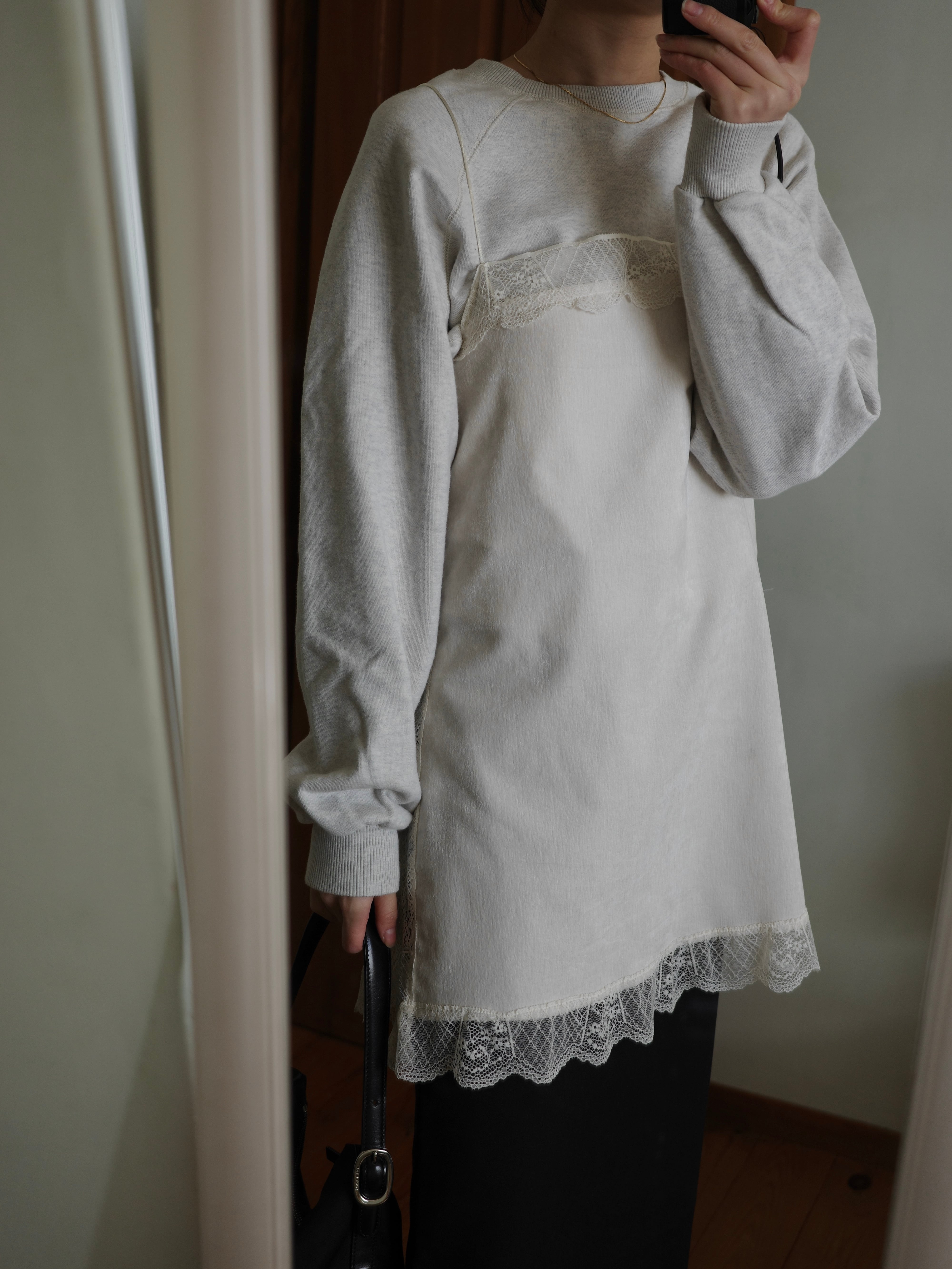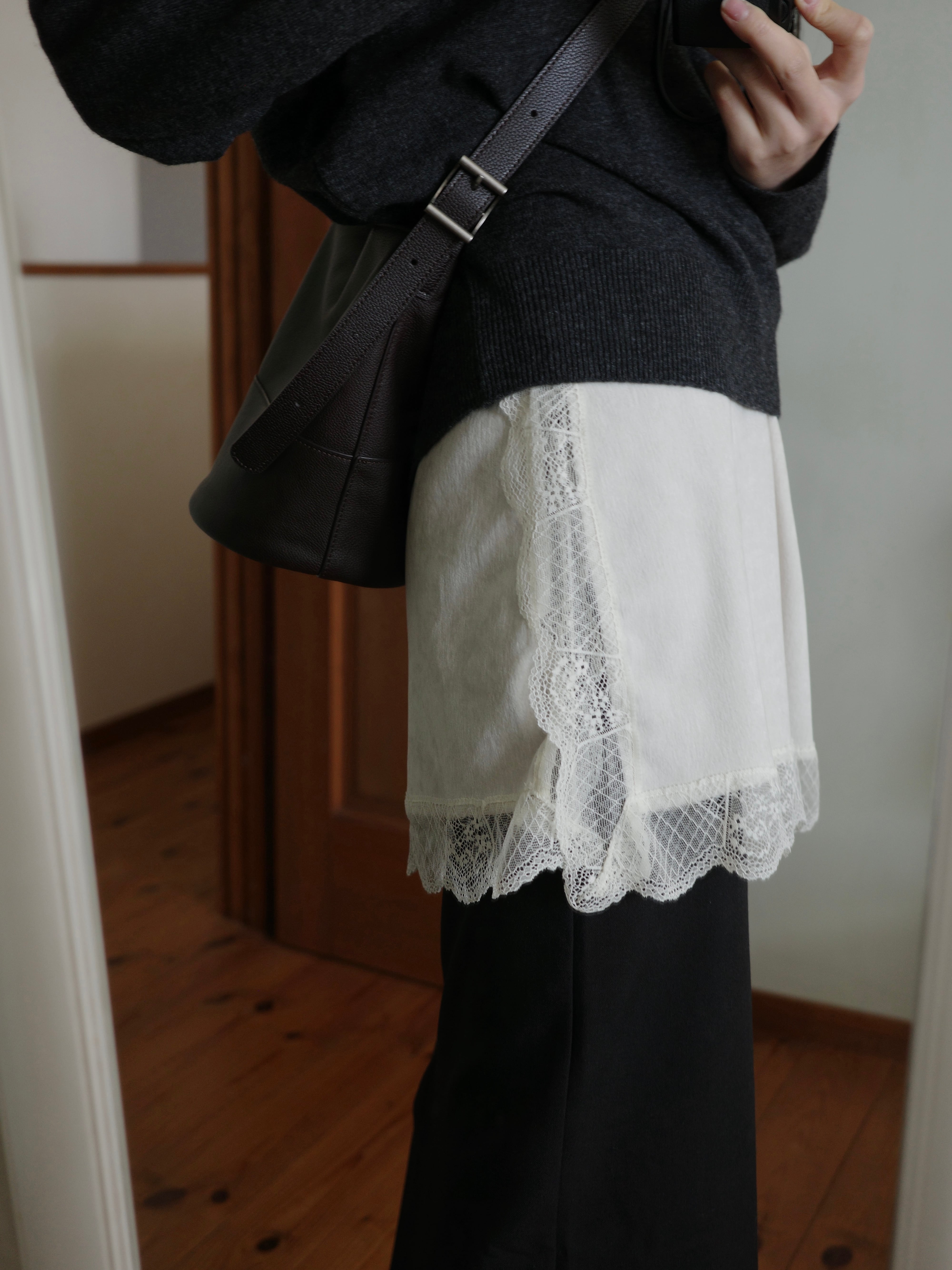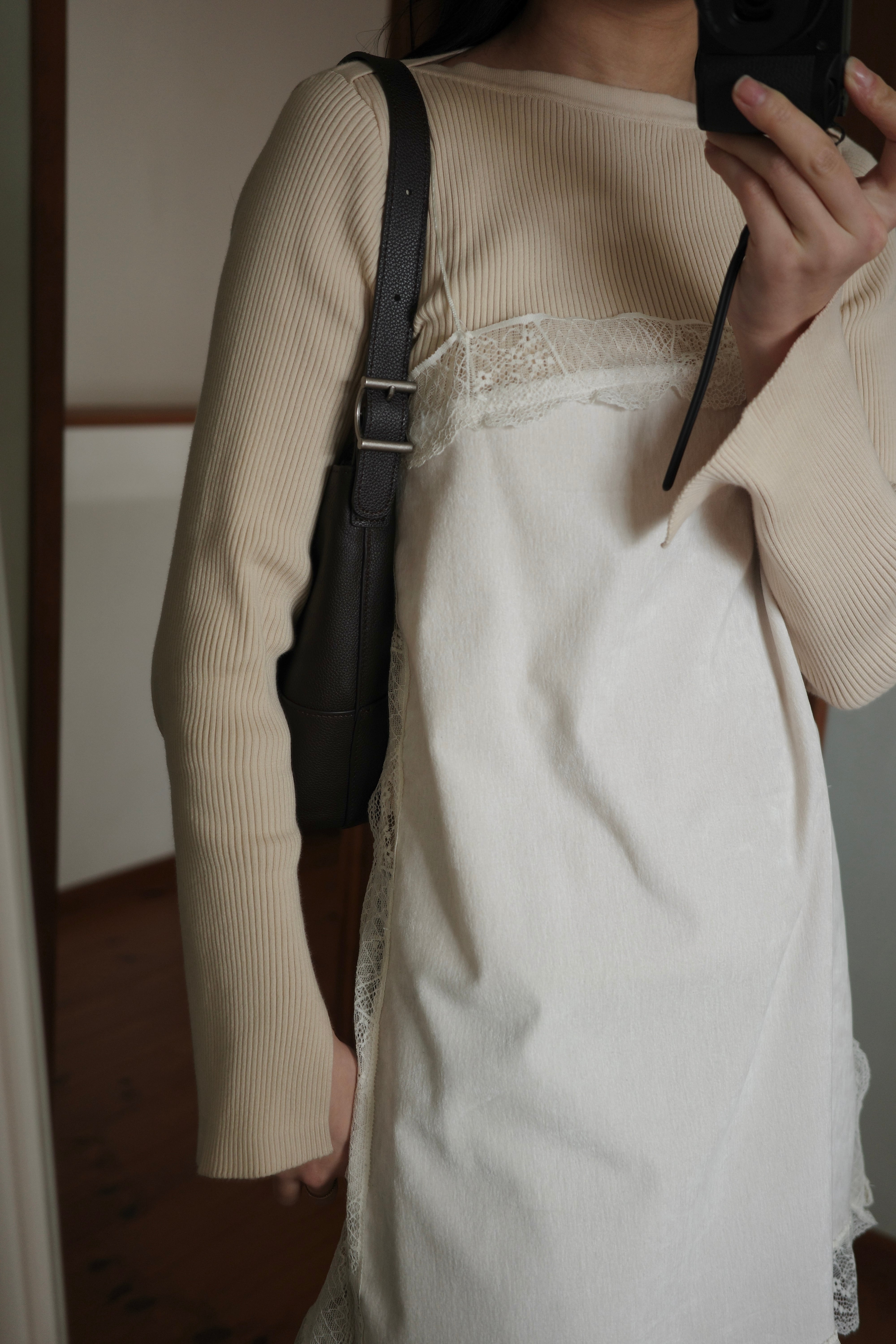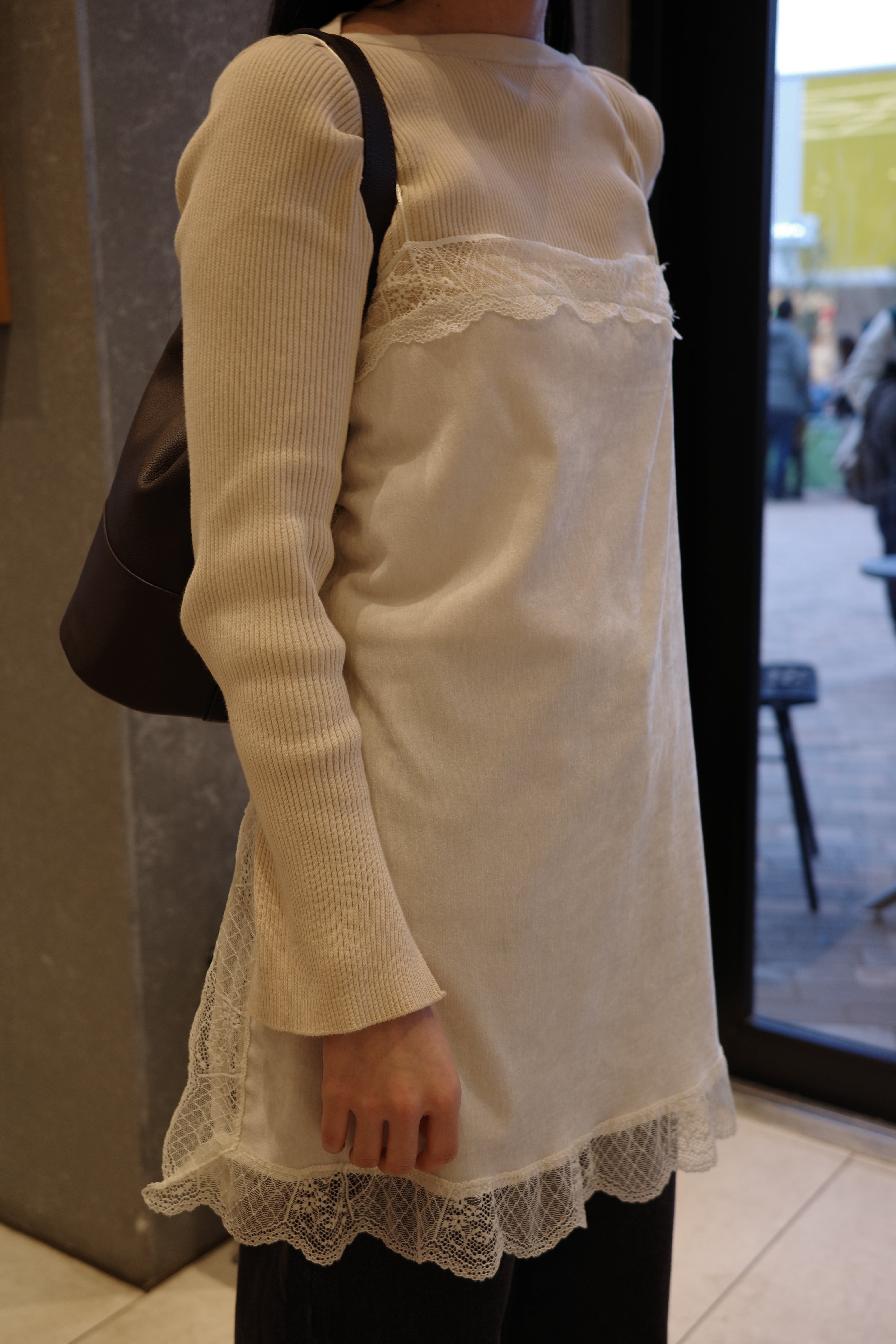 しっとりとした質感が魅力のベロア素材に、繊細なレースをあしらったスリップドレス。